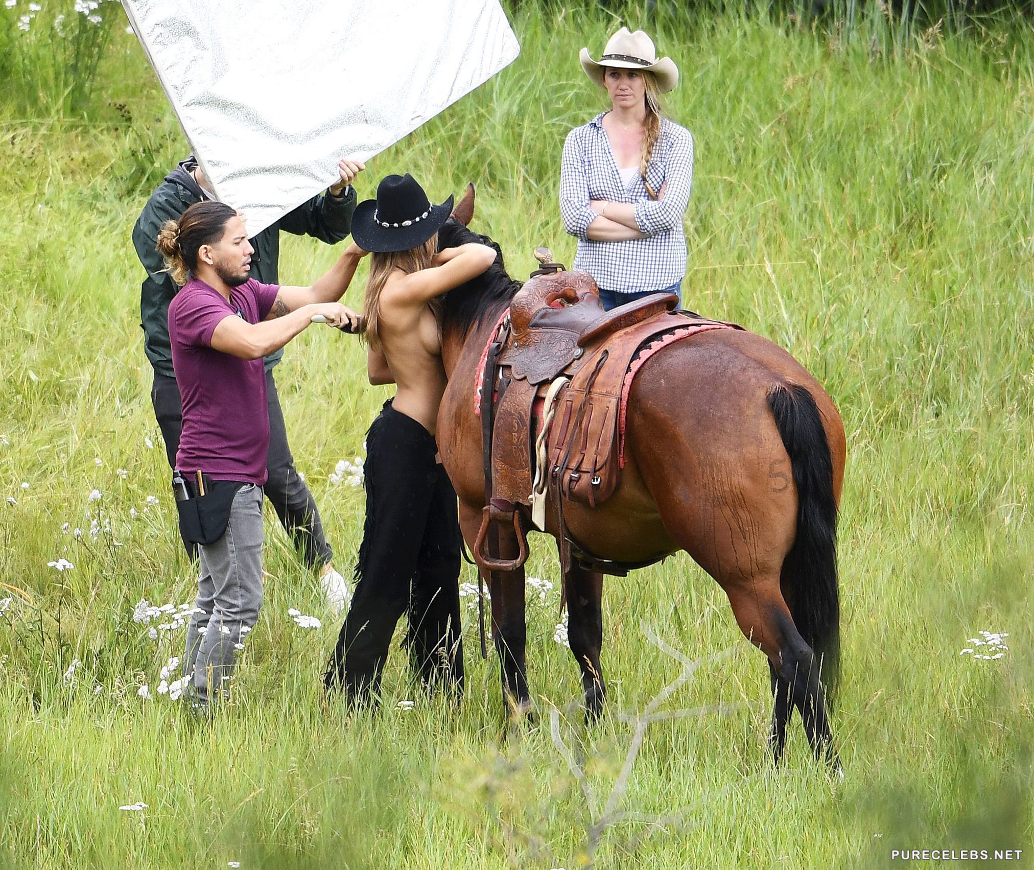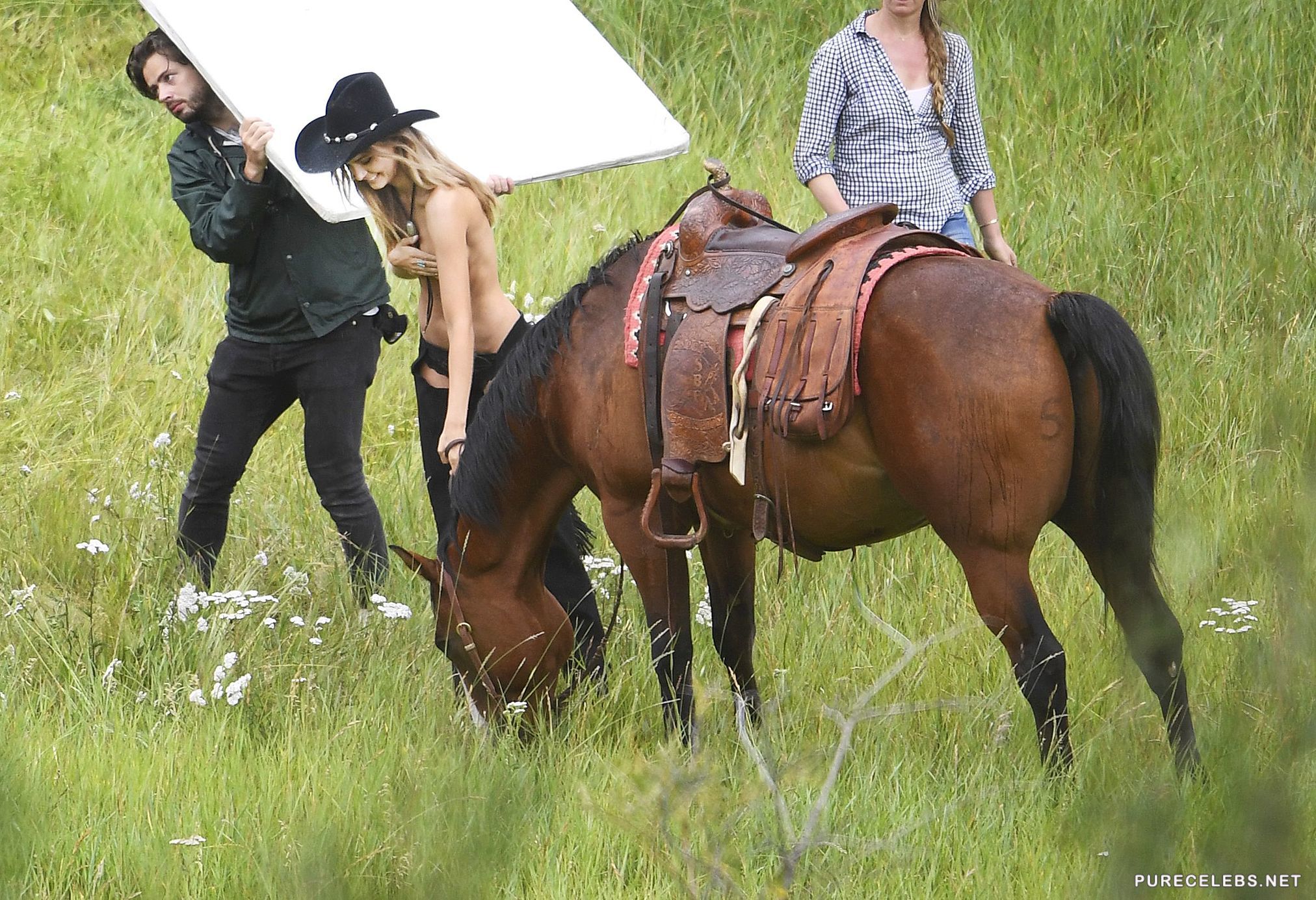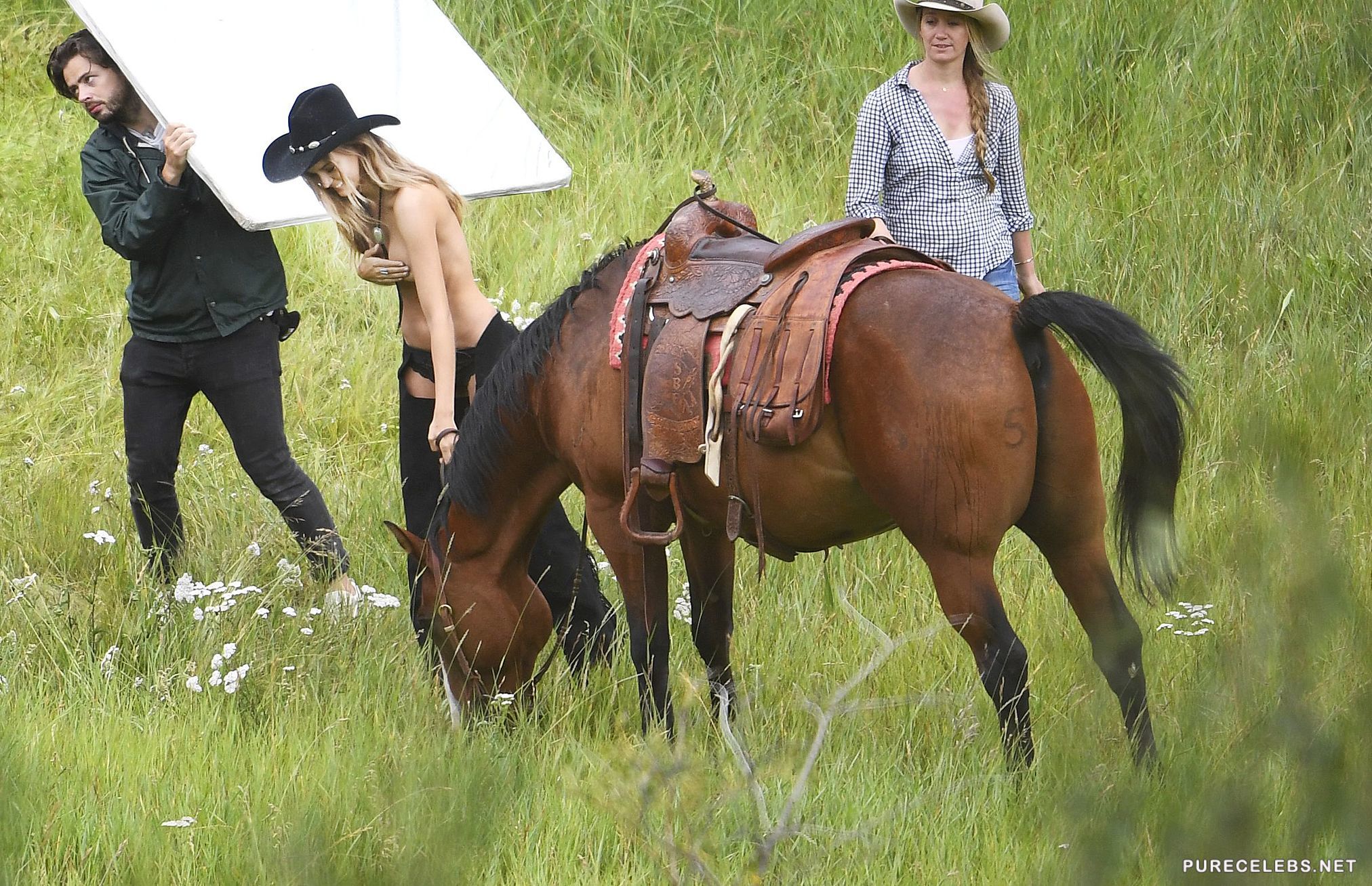 It turns out that life on the prairie ain’t that bad when you have a hot model like Josephine Skriver strutting her stuff in cowboy chaps and designer lingerie during an outdoor photo shoot. Thanks to a sneaky photographer, we got our hands on topless paparazzi photos of Josephine and we must say that she would be a sight for sore eyes for any cowpoke.