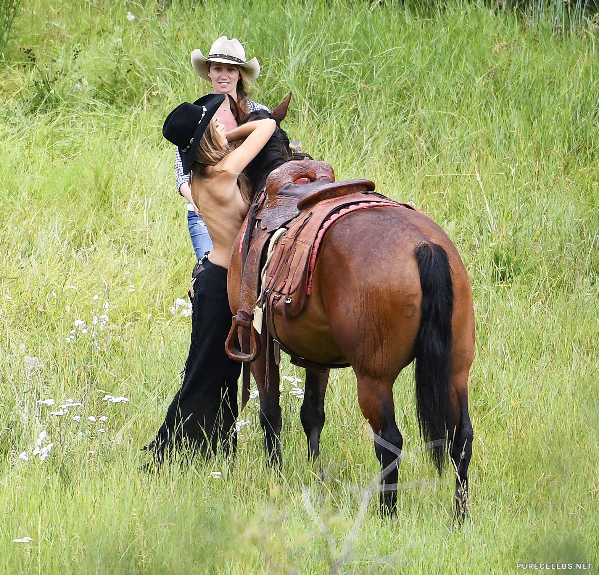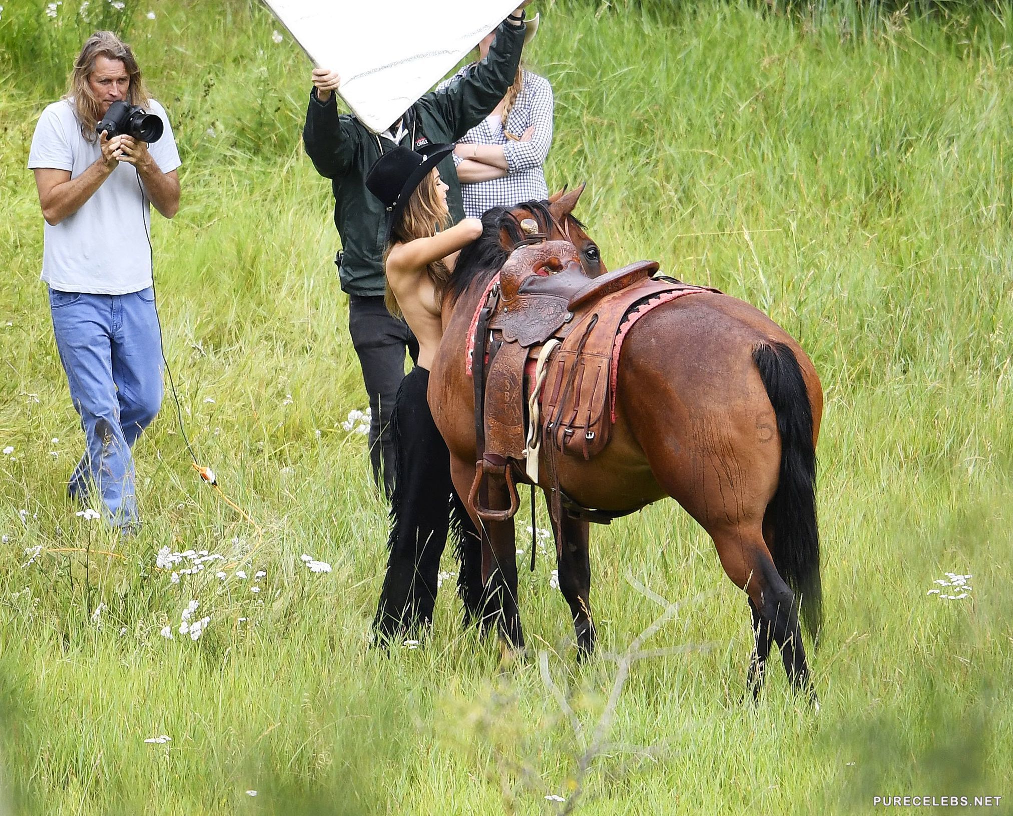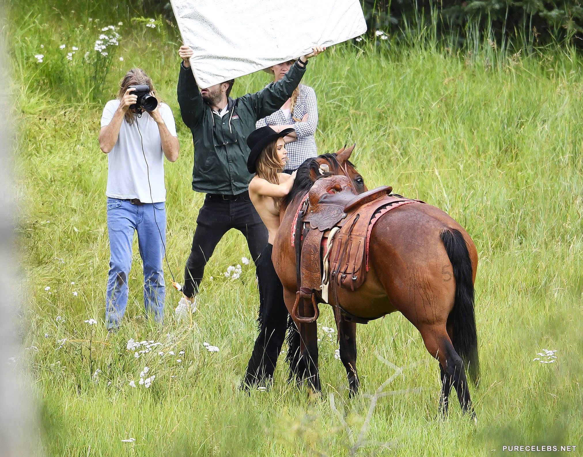 It turns out that life on the prairie ain’t that bad when you have a hot model like Josephine Skriver strutting her stuff in cowboy chaps and designer lingerie during an outdoor photo shoot. Thanks to a sneaky photographer, we got our hands on topless paparazzi photos of Josephine and we must say that she would be a sight for sore eyes for any cowpoke.