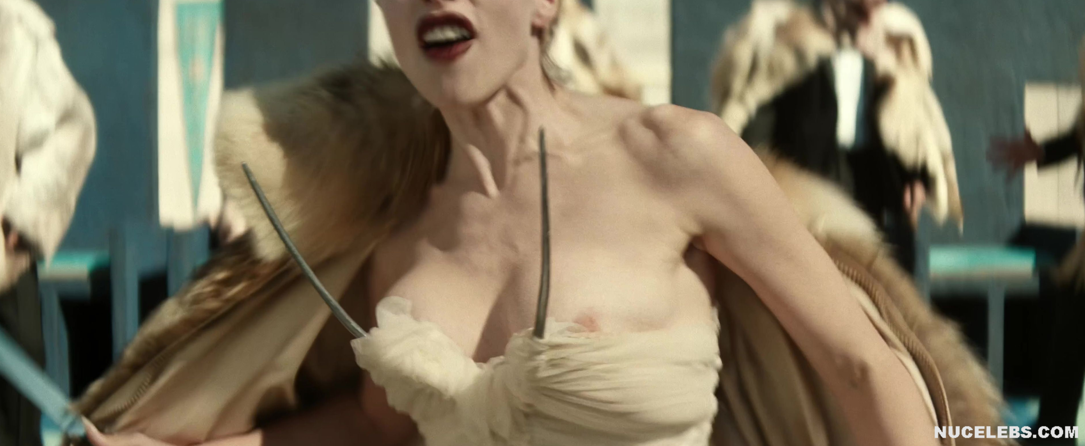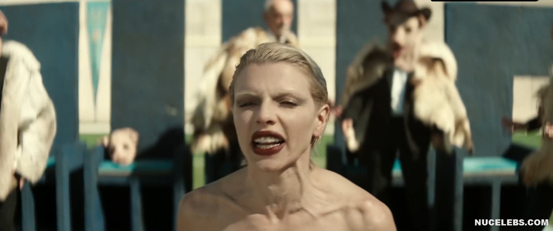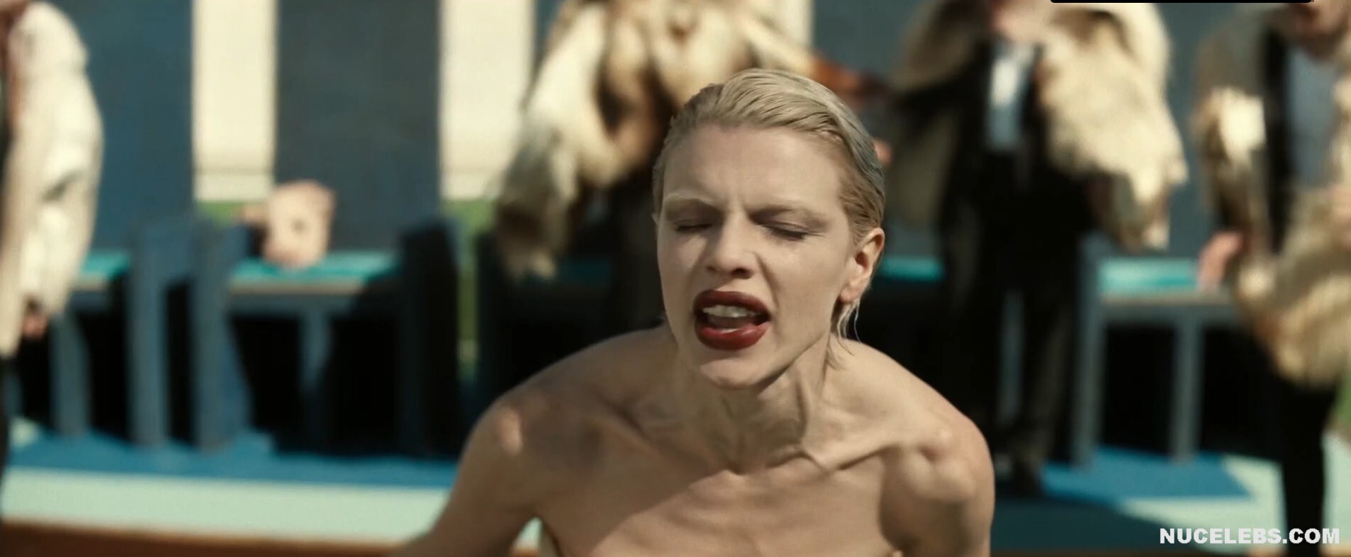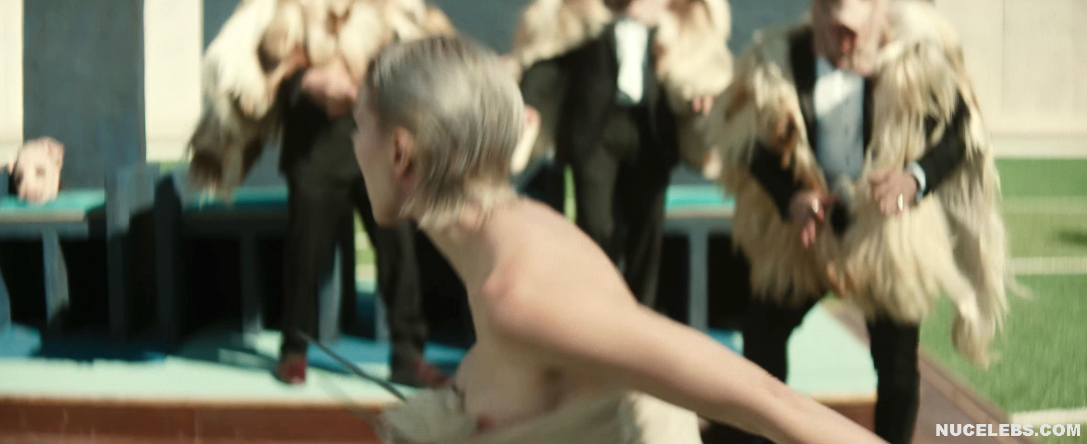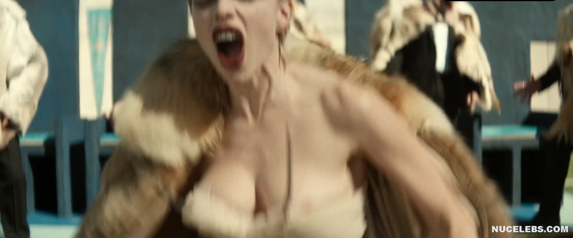 Witness Julia Fox showing her nude tits in “HIM”! This beauty was wearing a stunning dress with a huge neckline. Because Julia started running, her boobs just popped out of the dress. By the way, it’s worth noting that this actress has an incredibly beautiful body. We hope we’ll see completely naked Julia Fox in other films.
