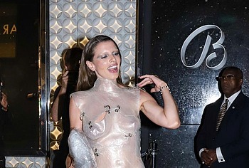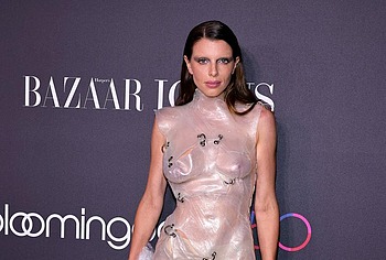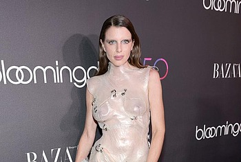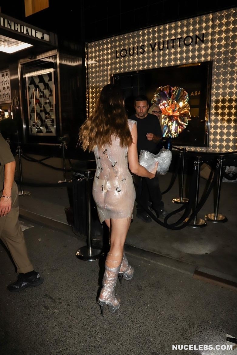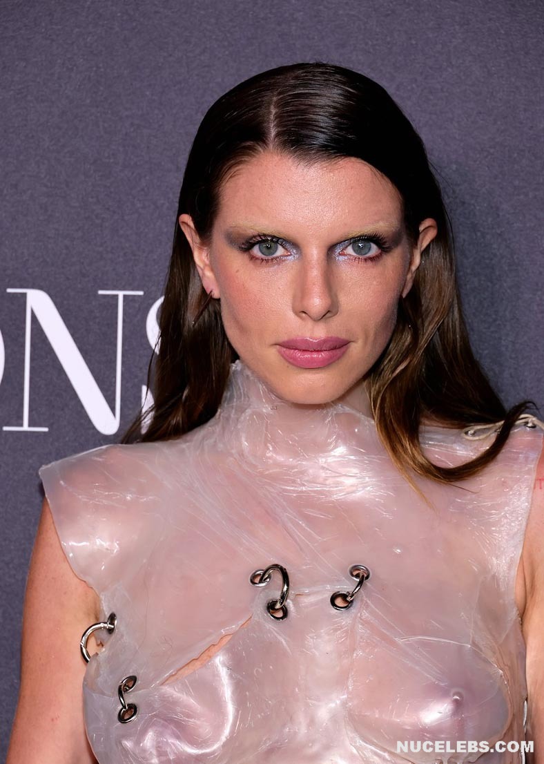 Julia Fox appeared in a very unusual outfit at one of the events. This girl was wearing a light dress, the material of which resembled a plastic bag. And the miniature panties of this Italian-American actress were visible through a transparent dress. And Julia Fox nude boobies with hard nipples were on display in this dress, because she was braless!