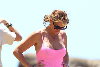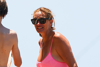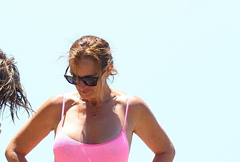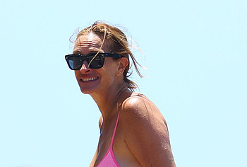 Recently, the paparazzi managed to photograph 54-year-old actress Julia Roberts on the beach. The celebrity wore a cute pink swimsuit that accentuated her gorgeous curves. Julia Roberts’s nude boobies were ready to jump out of the low cut of her swimsuit with every movement. And the bottom of the swimsuit seductively emphasized the ass of this star!