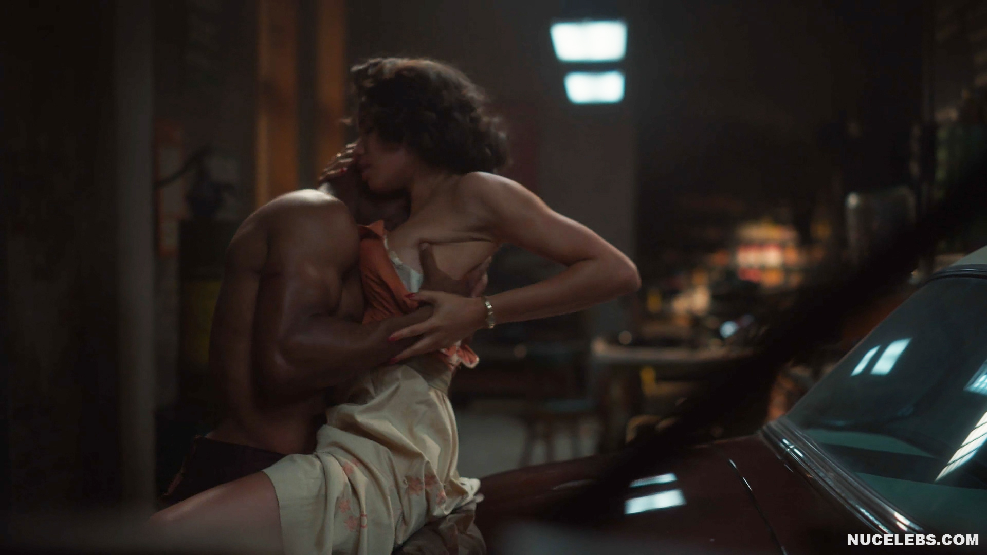 Jurnee Smollett showed off her gorgeous nude body in Lovecraft Country. There, this celebrity looked incredibly seductive when she took a bubble bath. As you can see, the man couldn’t take his eyes off her… And in another scene, he almost fucked this hot American actress right on the hood of the car! You will definitely drool looking at Jurnee Smollett’s nude elastic buttocks, which are so seductively tense during cowgirl sex!