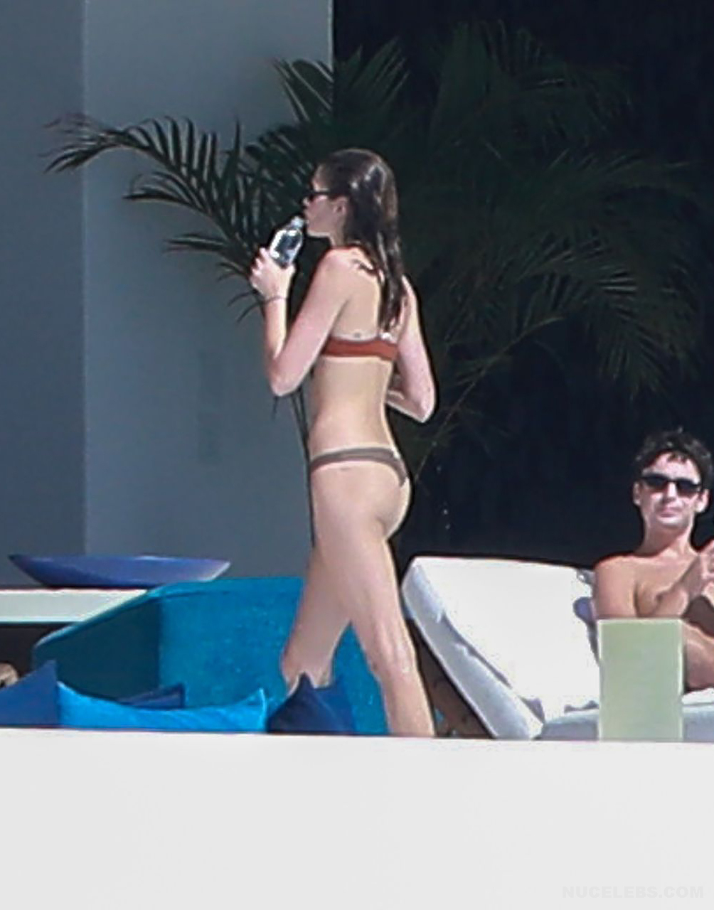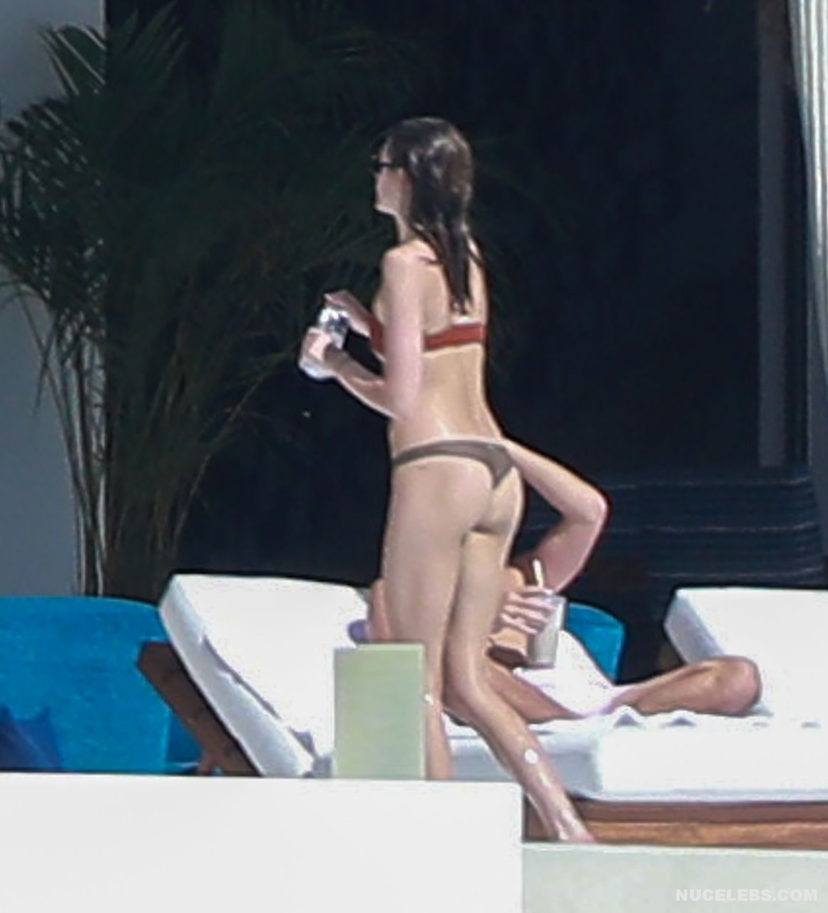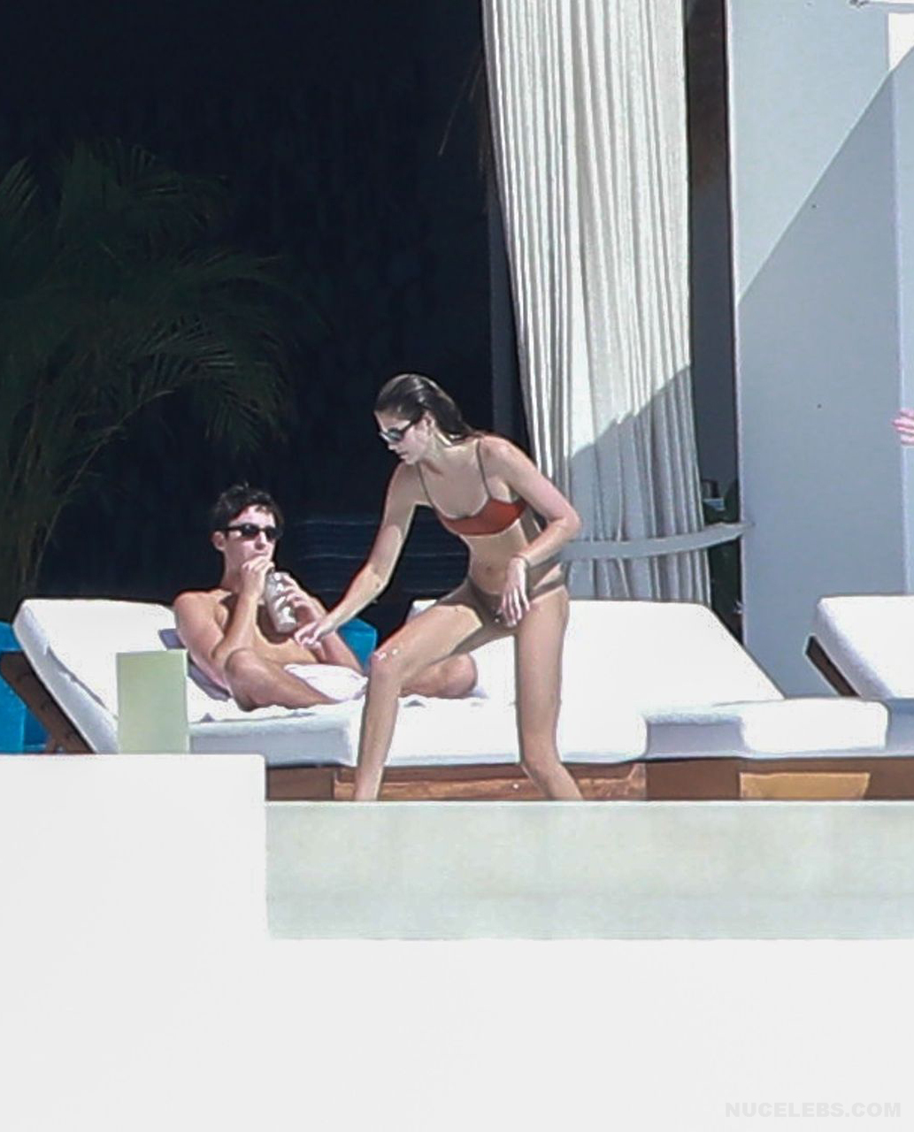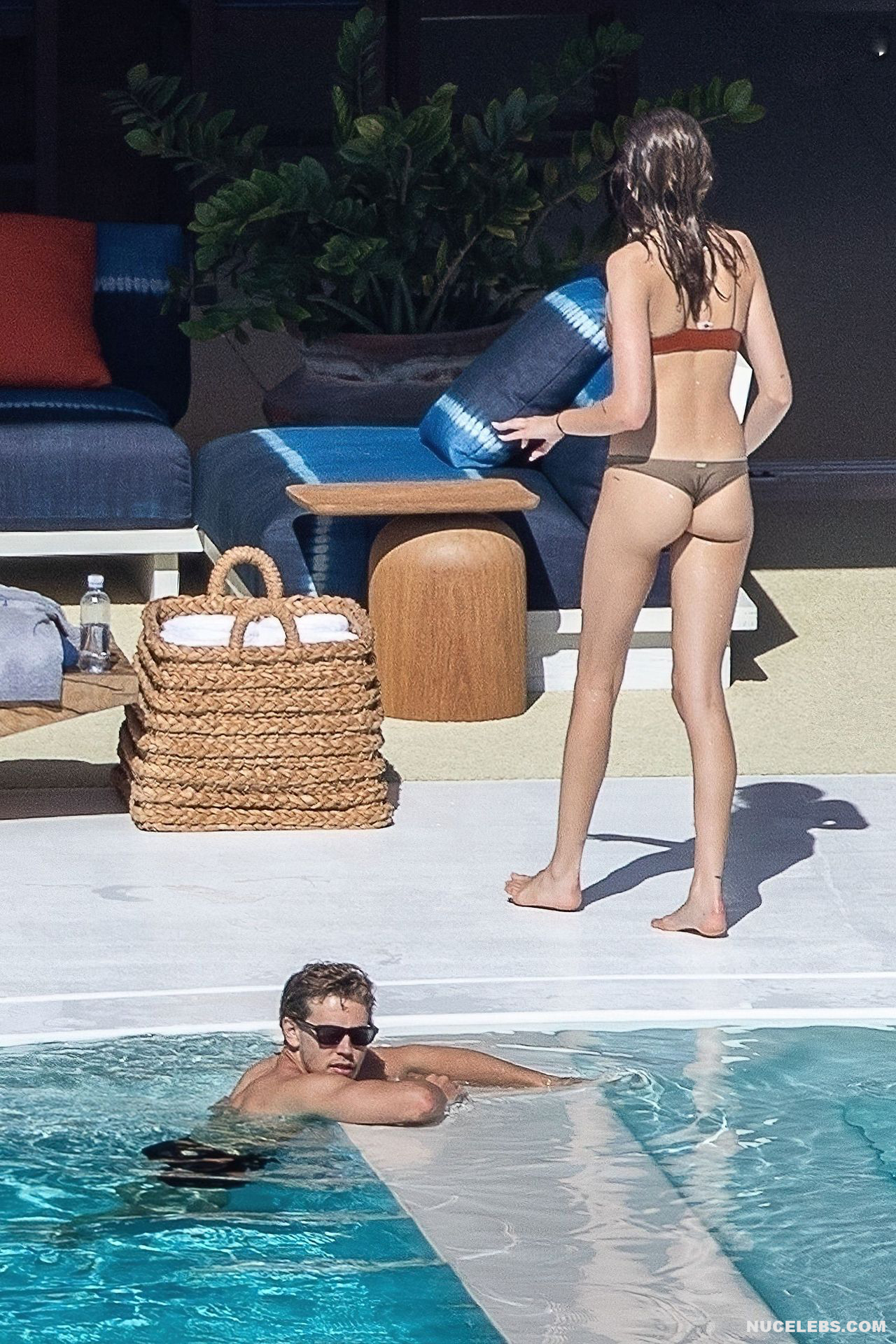 A great opportunity to admire Kaia Gerber’s slender body while relaxing by the pool. No wonder this girl has become such a successful model, because her body looks perfect! I bet you will drool looking at Kaia Gerber’s amazing tight ass in tight thong! Her buns look so seductive that you will definitely want to spank them.