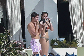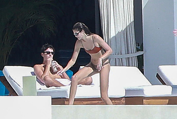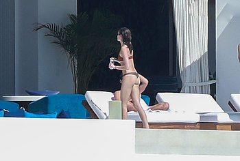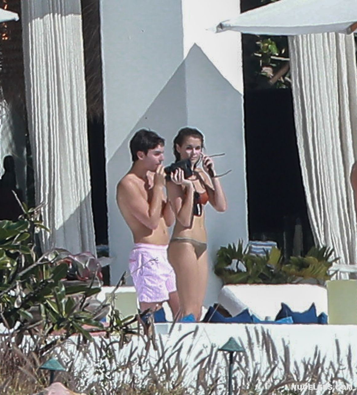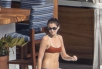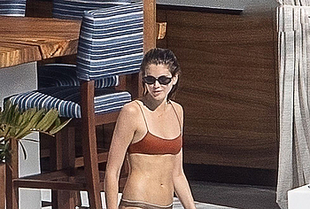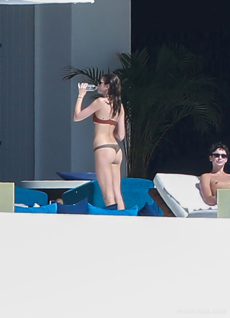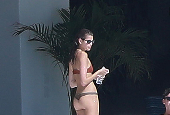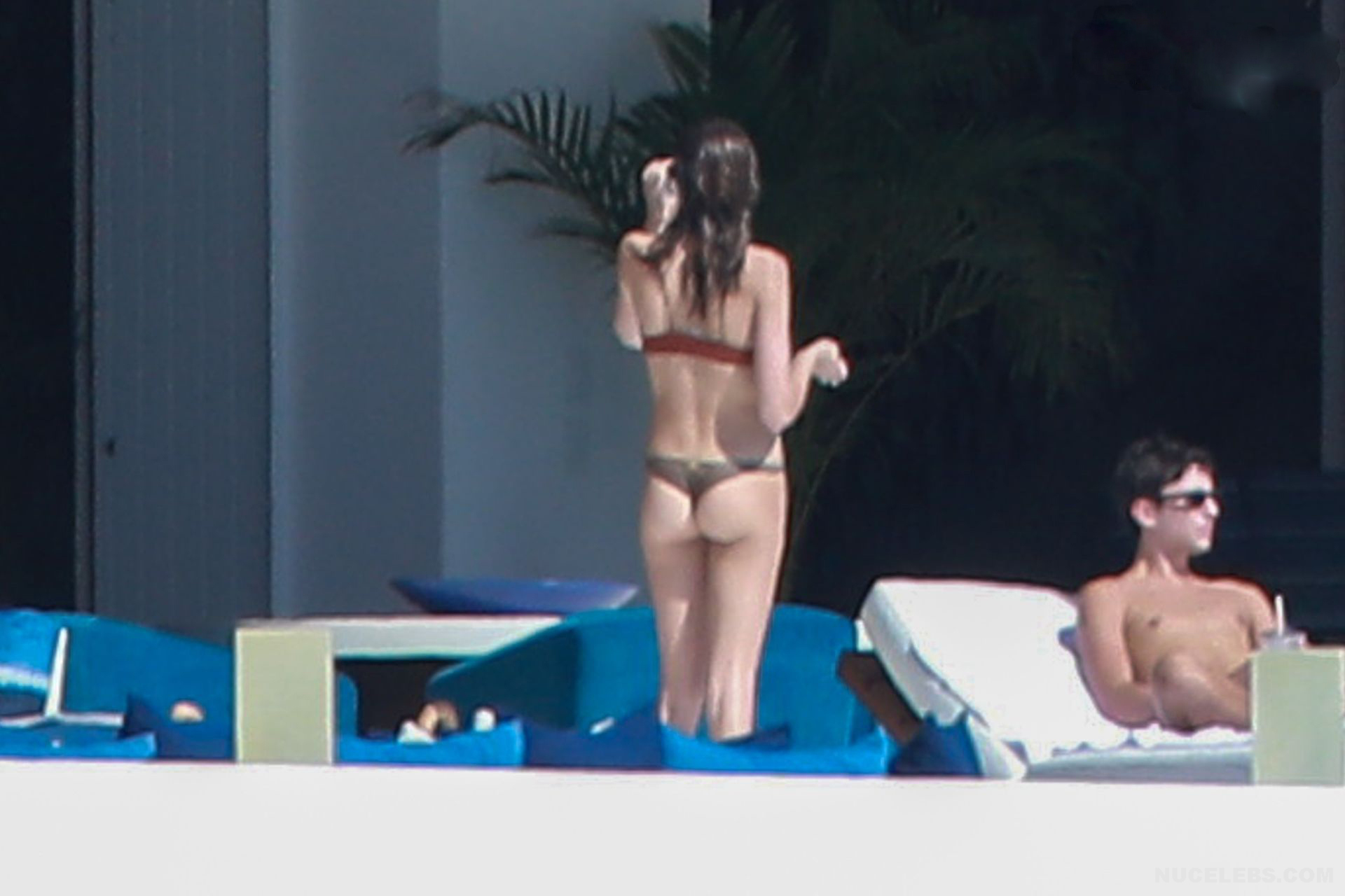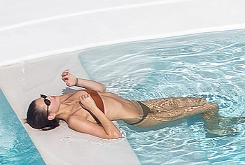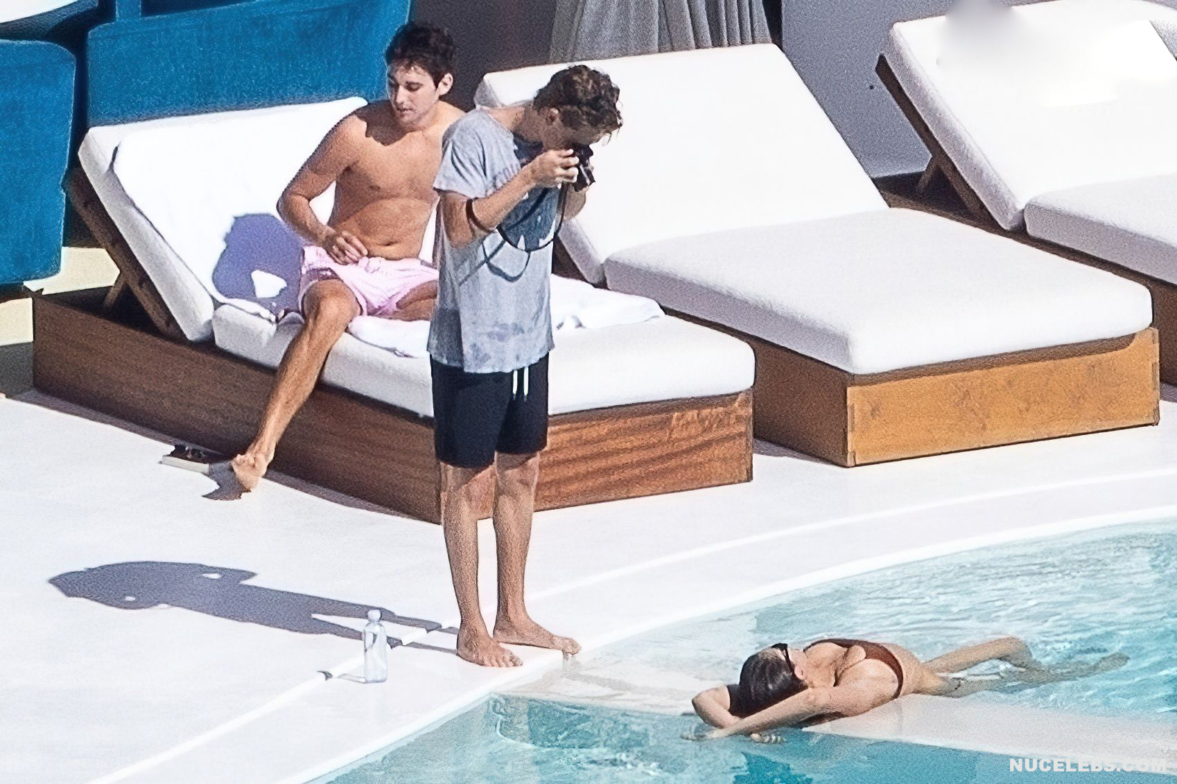 A great opportunity to admire Kaia Gerber’s slender body while relaxing by the pool. No wonder this girl has become such a successful model, because her body looks perfect! I bet you will drool looking at Kaia Gerber’s amazing tight ass in tight thong! Her buns look so seductive that you will definitely want to spank them.