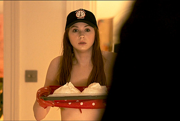 Not Another Happy Ending is a fun movie that also features Karen Gillan nude. It looks like this girl felt completely comfortable sitting at the table naked, wearing only a black cap. Also, this Scottish actress showed off her awesome buttocks, going into the kitchen. And what an incredible sight opened up before the man when he saw Karen Gillan nude with a tray in his hands! I think he’ll dream of her sweet pussy and tits all night long, don’t you?