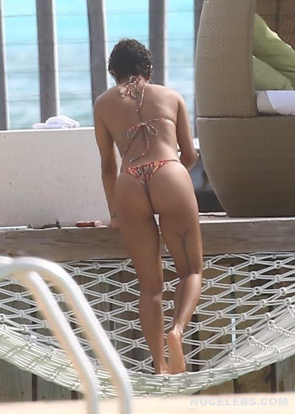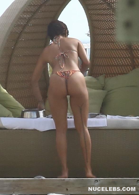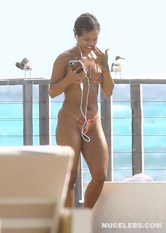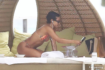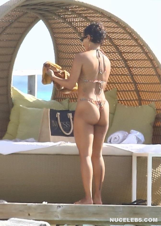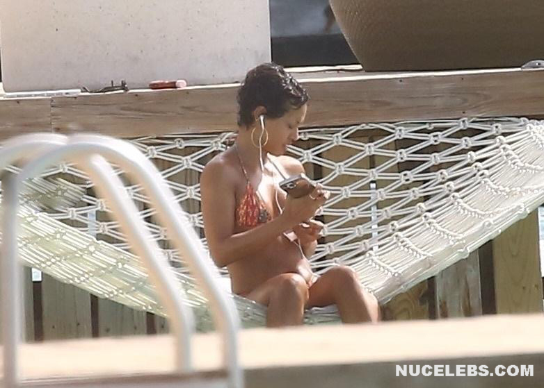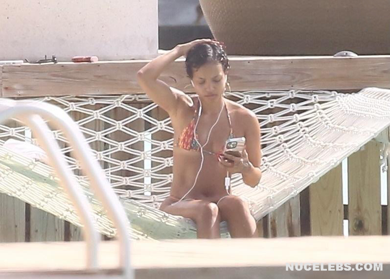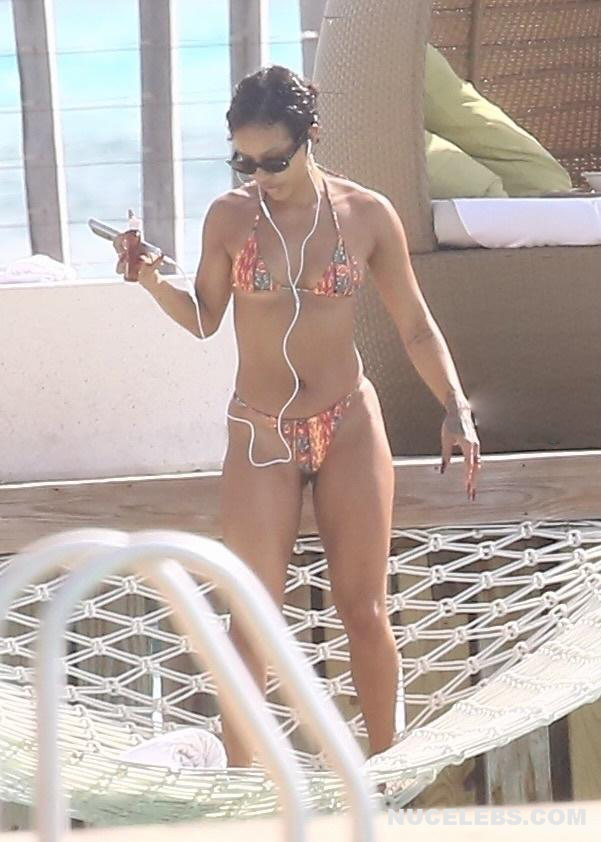Get access to Karrueche Tran exclusive bikini photos. This hottie spends a lot of time maintaining her physical shape and her figure looks perfect. This hot model deliberately dresses in tiny bikinis that barely cover her body to tease us. Just look at these photos of her in a multi-colored bikini. Not only did the bottom of Karrueche Tran nude boobs peek out from under her tiny bra, but her thong barely covered her delicious ass!