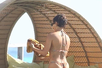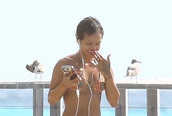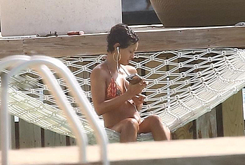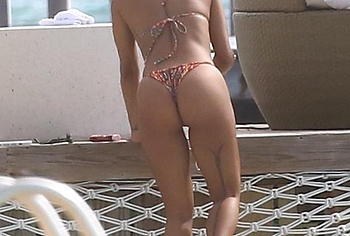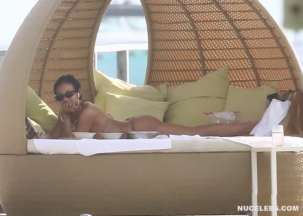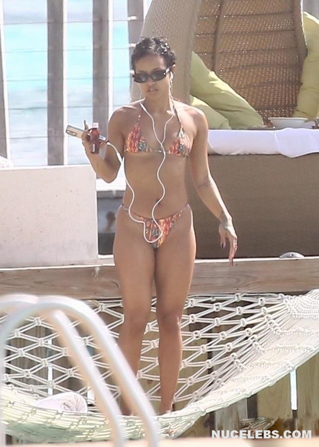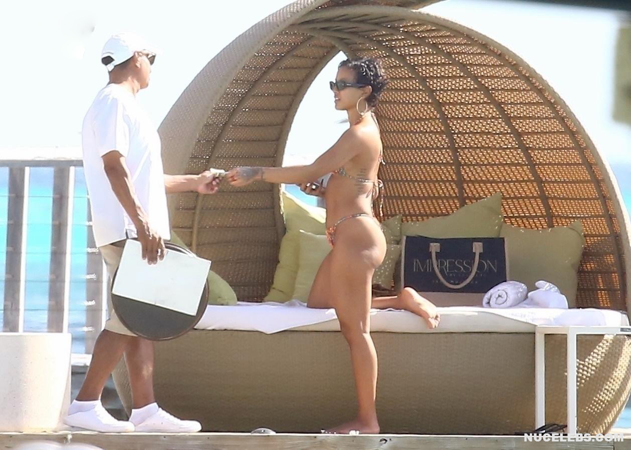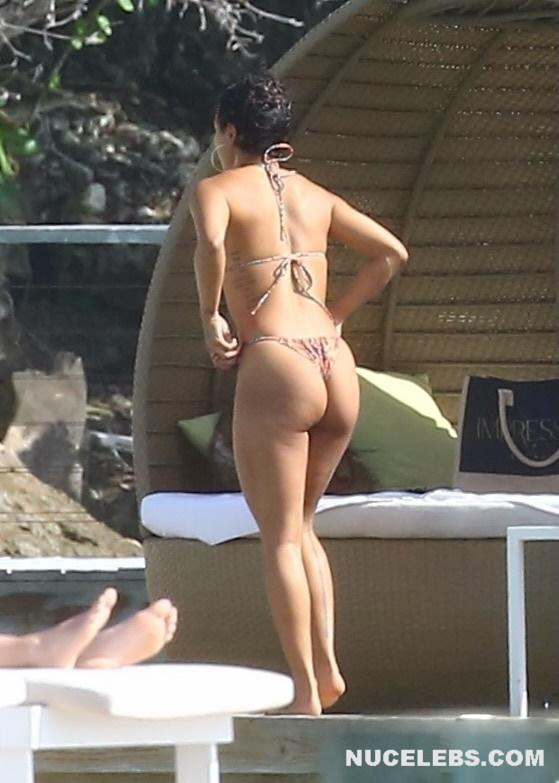 Get access to Karrueche Tran exclusive bikini photos. This hottie spends a lot of time maintaining her physical shape and her figure looks perfect. This hot model deliberately dresses in tiny bikinis that barely cover her body to tease us. Just look at these photos of her in a multi-colored bikini. Not only did the bottom of Karrueche Tran nude boobs peek out from under her tiny bra, but her thong barely covered her delicious ass!
