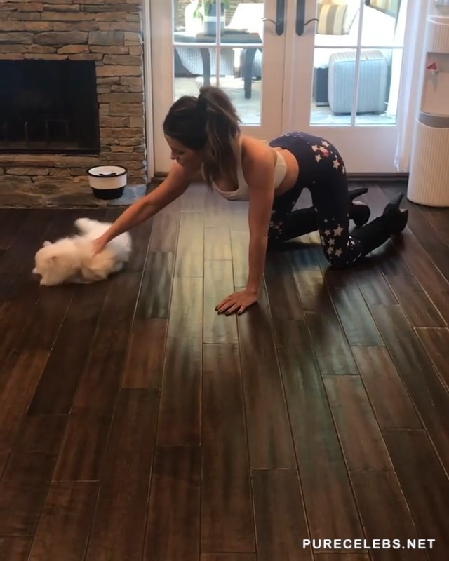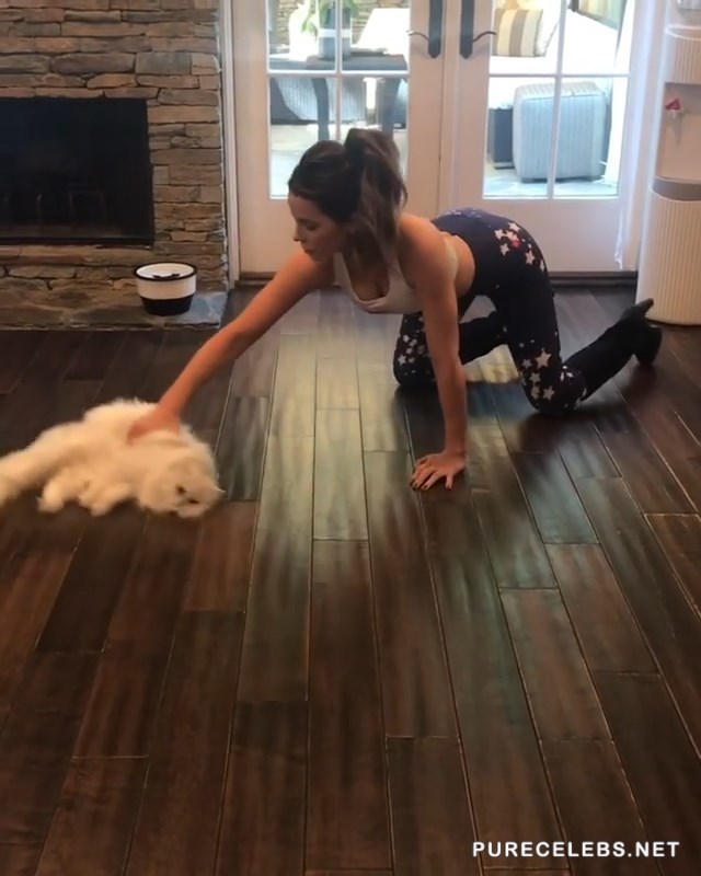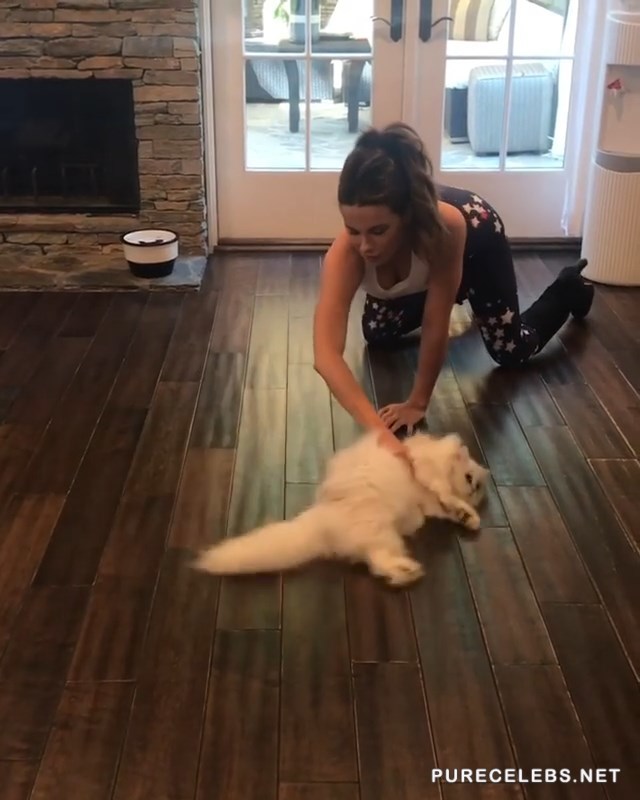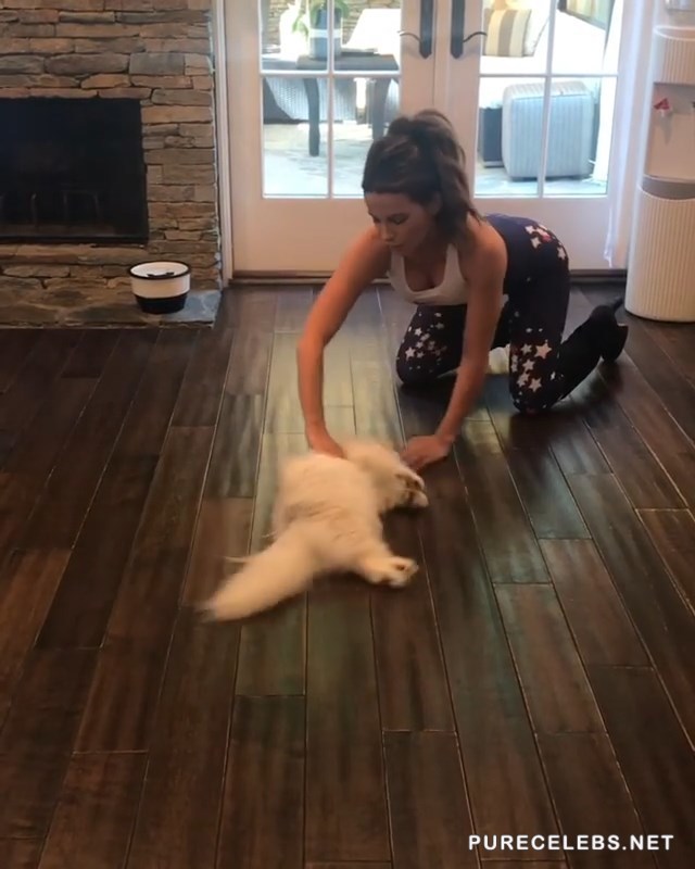 British actress Kate Beckinsale decided to pamper her fans by posting a very sweet and naughty video. As it turned out, the celebrity decided to tidy up the house, with the help of her white cat, with whom she wiped the floor, kneeling. And it looked incredibly sexy, because the star was dressed in a short white top, from which her titties peeked, and dark pants that perfectly fit her chic booty.