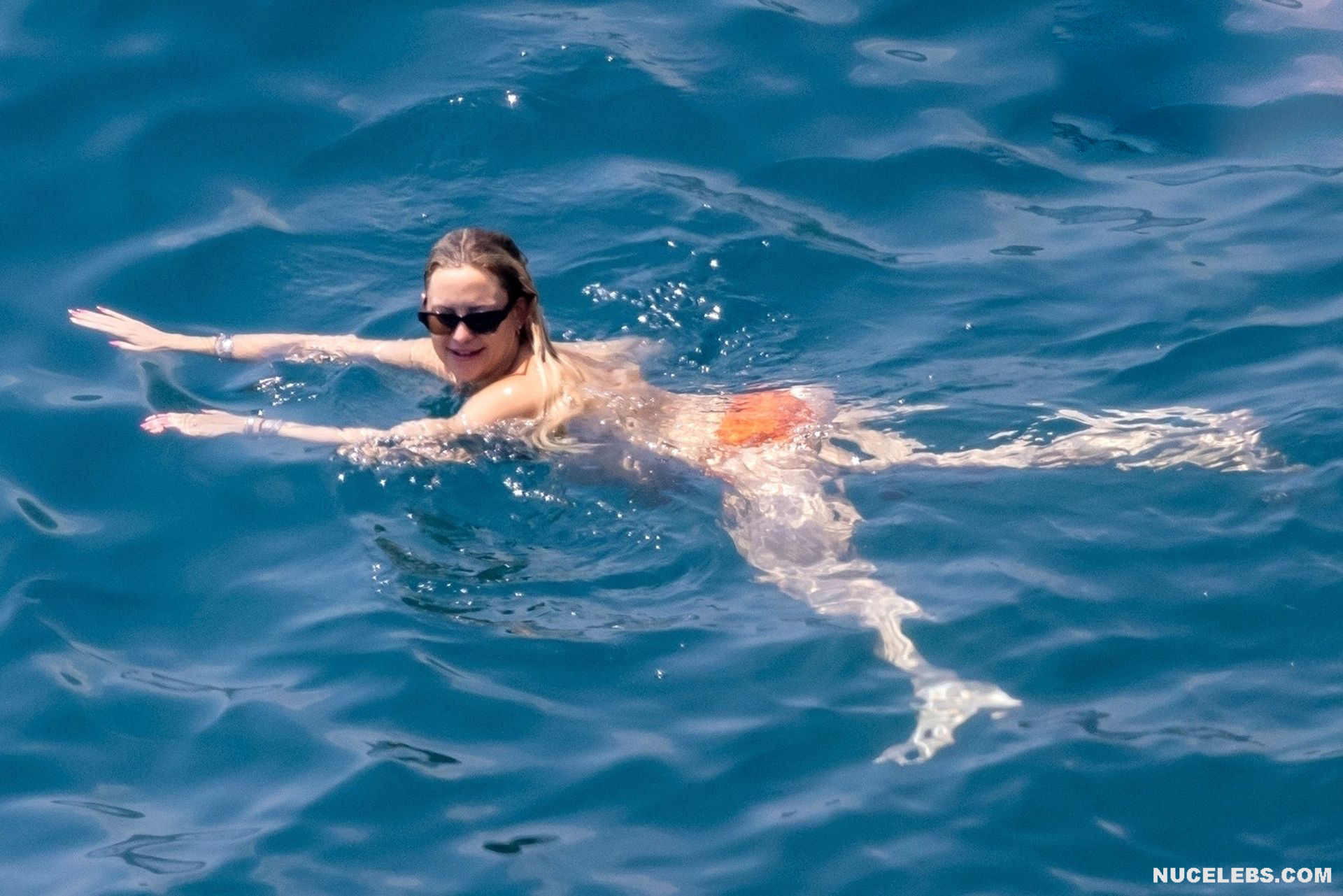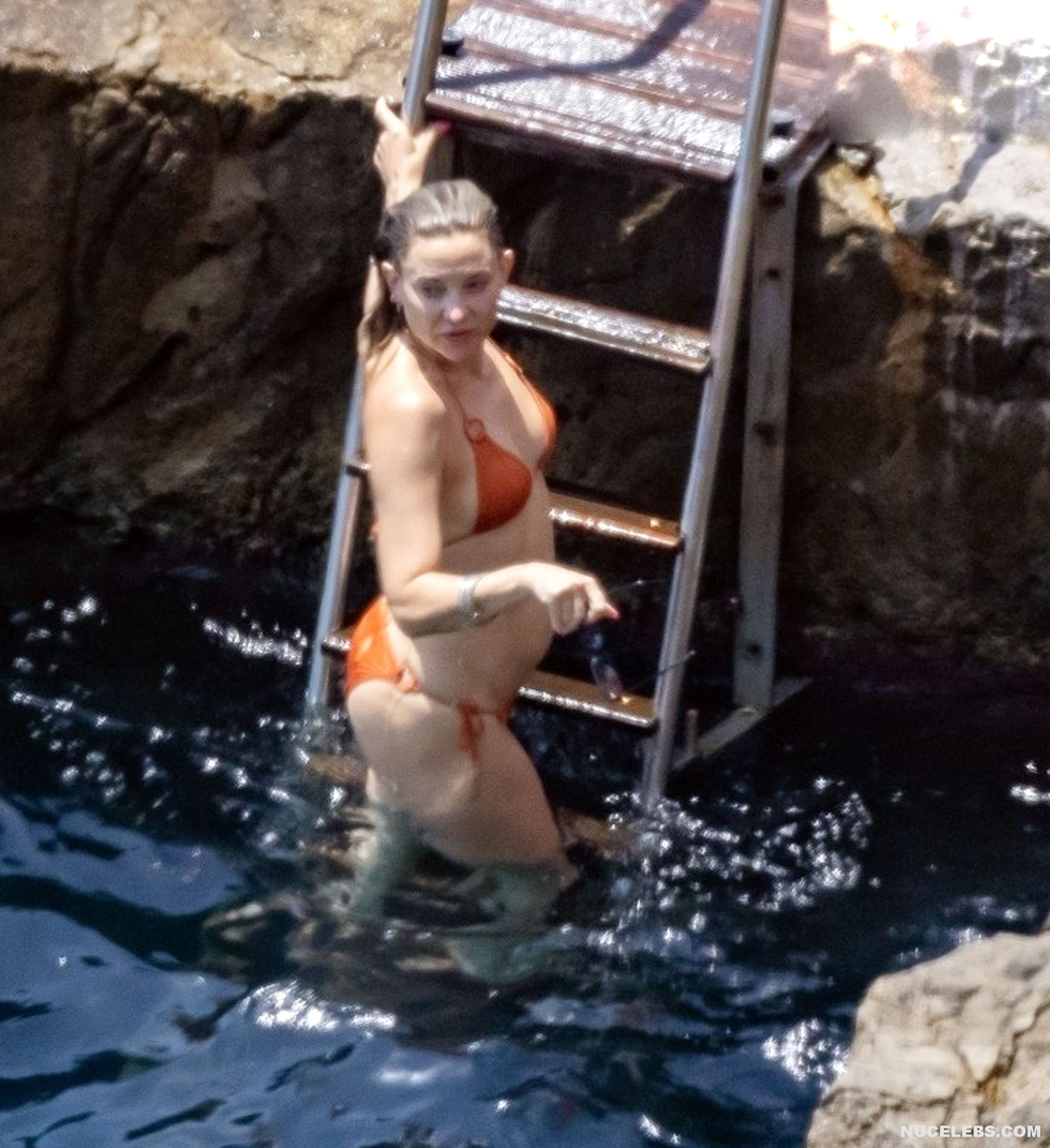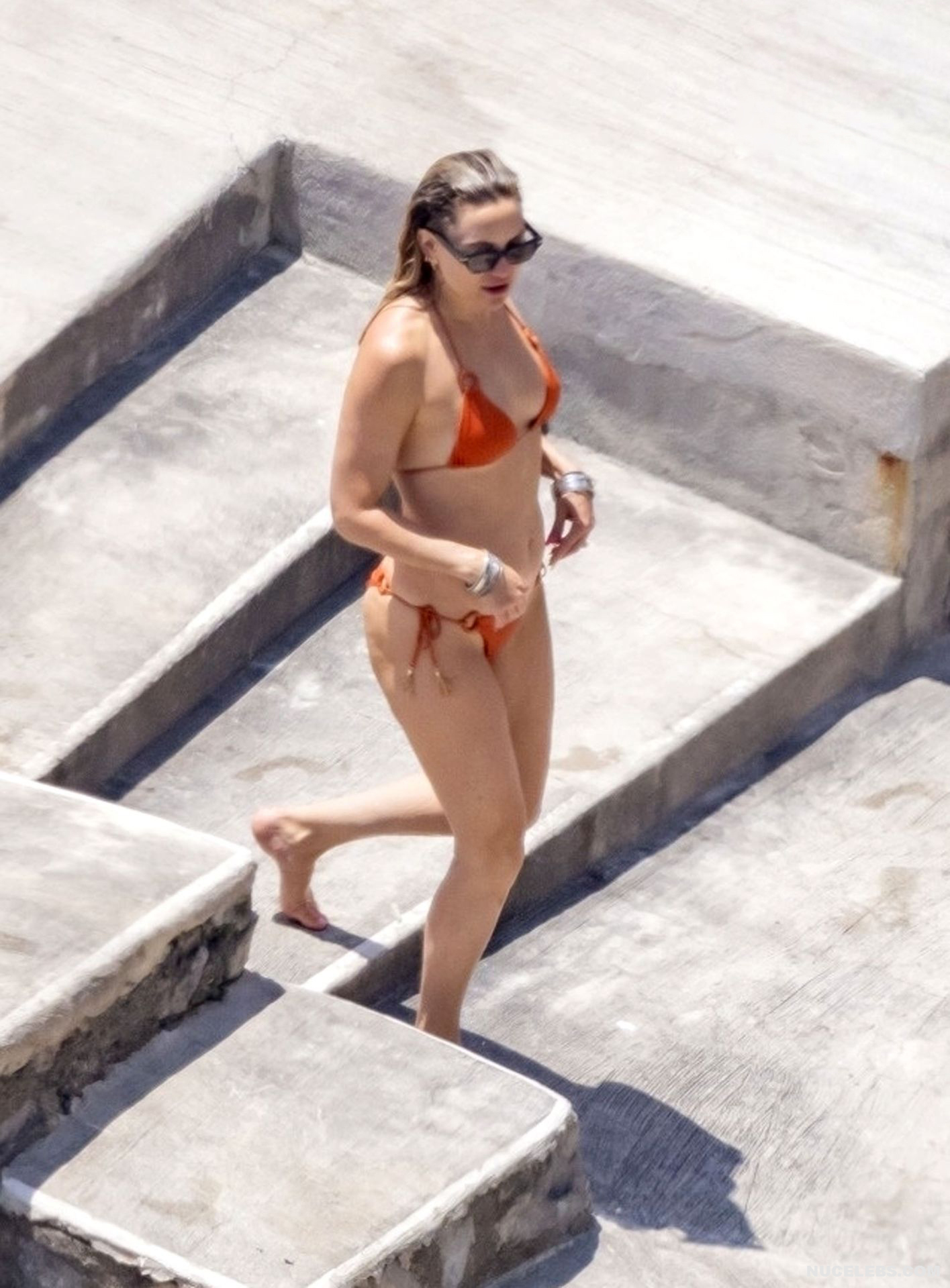 While Kate Hudson was resting, the paparazzi did not lose their vigilance. After all, they were hoping to photograph Kate Hudson nude boobs or ass! And it could happen at any moment, because her orange bikini was quite small and ready to slip off Kate Hudson’s nude body at any moment. But fortunately for this actress, and to our disappointment, that never happened. Although it is worth noting that this celebrity looked amazing in a small bikini.