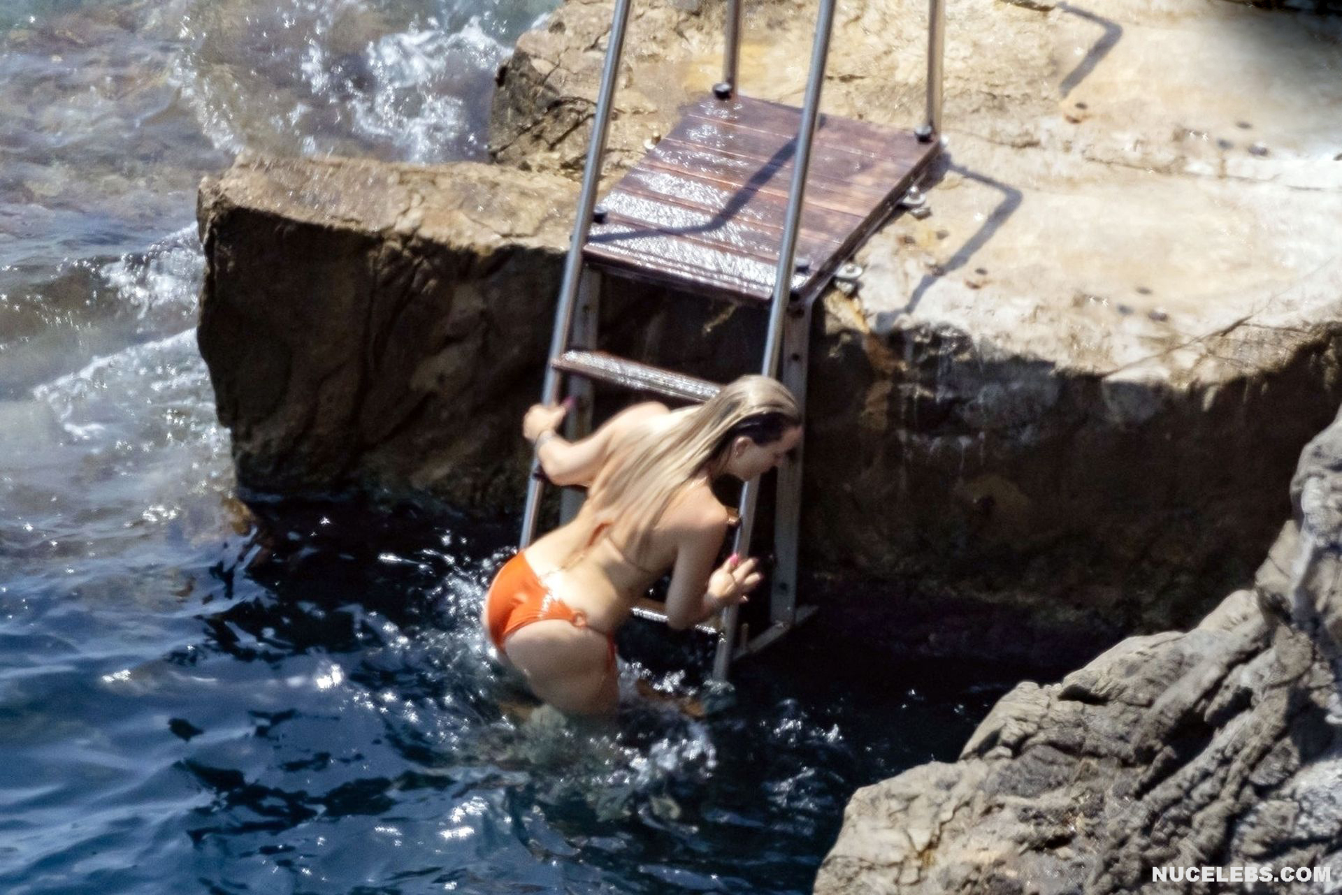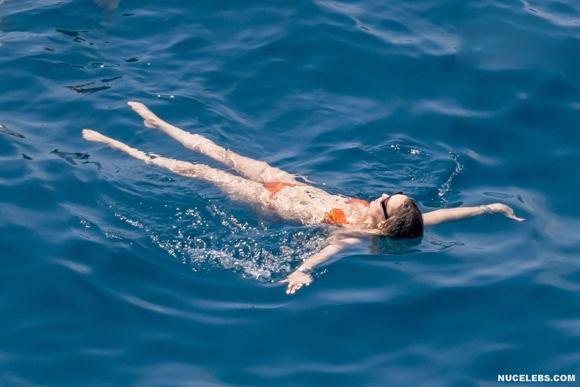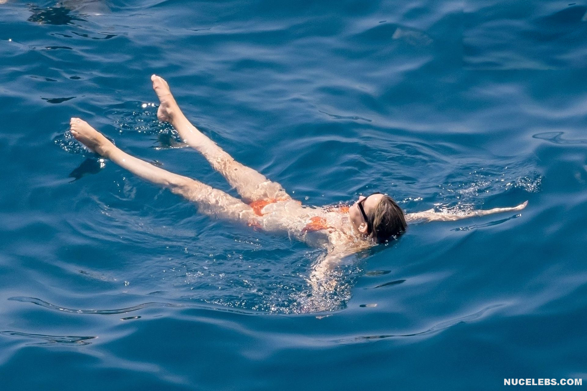 While Kate Hudson was resting, the paparazzi did not lose their vigilance. After all, they were hoping to photograph Kate Hudson nude boobs or ass! And it could happen at any moment, because her orange bikini was quite small and ready to slip off Kate Hudson’s nude body at any moment. But fortunately for this actress, and to our disappointment, that never happened. Although it is worth noting that this celebrity looked amazing in a small bikini.