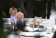 Hot blond American actress hasn’t been in the news for a while, but she’s still hot as ever. Thanks to sneaky paparazzi, this ripe babe got caught dancing in her bikini with hot friends that don’t mind flaunting their tits topless. You can see a score of Hollywood babes sipping drinks from wine glasses and showing off their moves, as well as gorgeous bodies