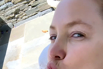 It looks like Kate Hudson decided to ignite our imagination with her nude body. This renowned celebrity possesses an irresistible allure that captures the hearts of fans around the globe. She took a whole series of hot photos and videos near the pool. This charming blonde can be seen applying sunscreen to her legs and it looks very seductive. After which Kate Hudson holds her nude tits with her hand and blows a kiss with her plump lips…