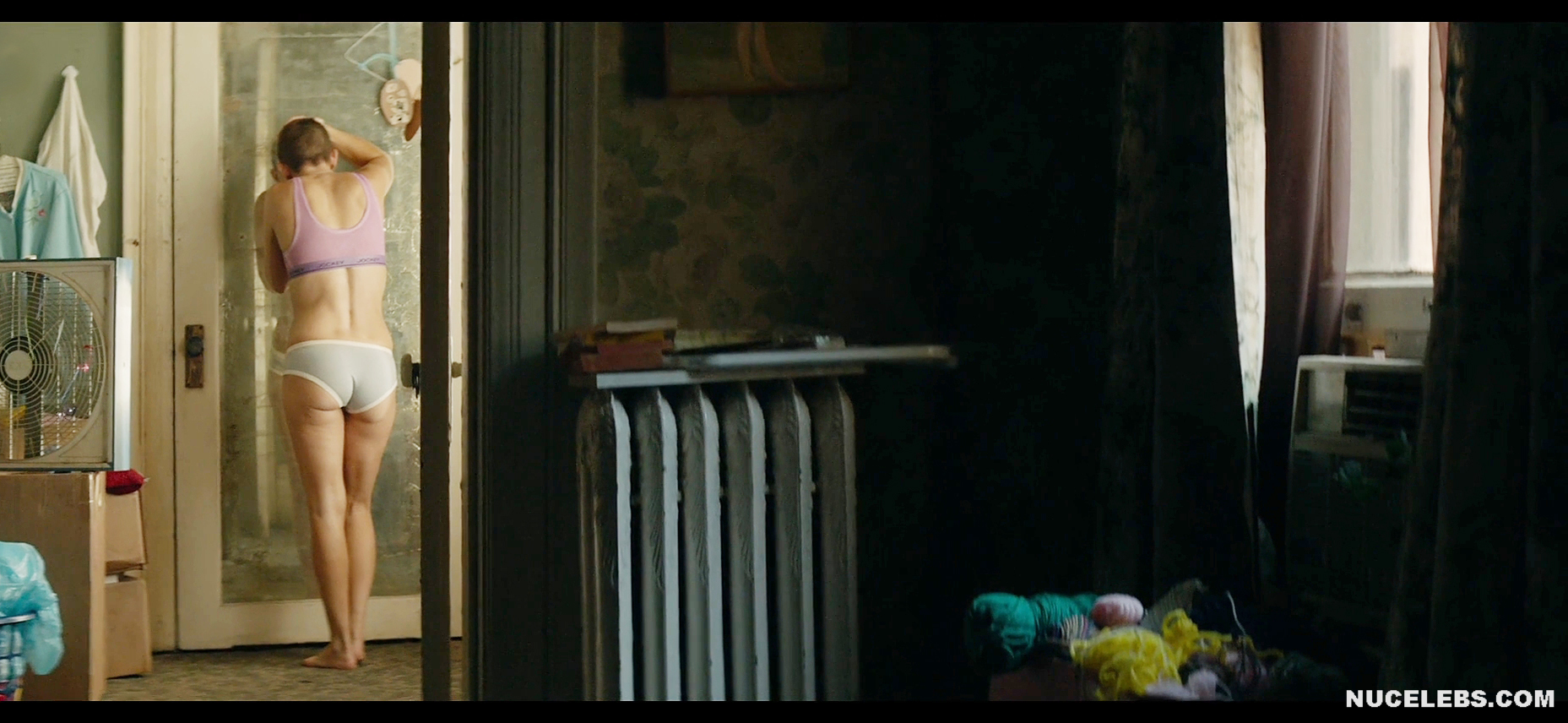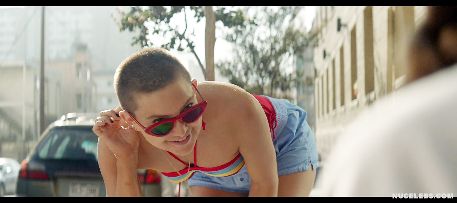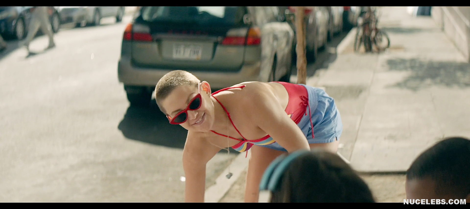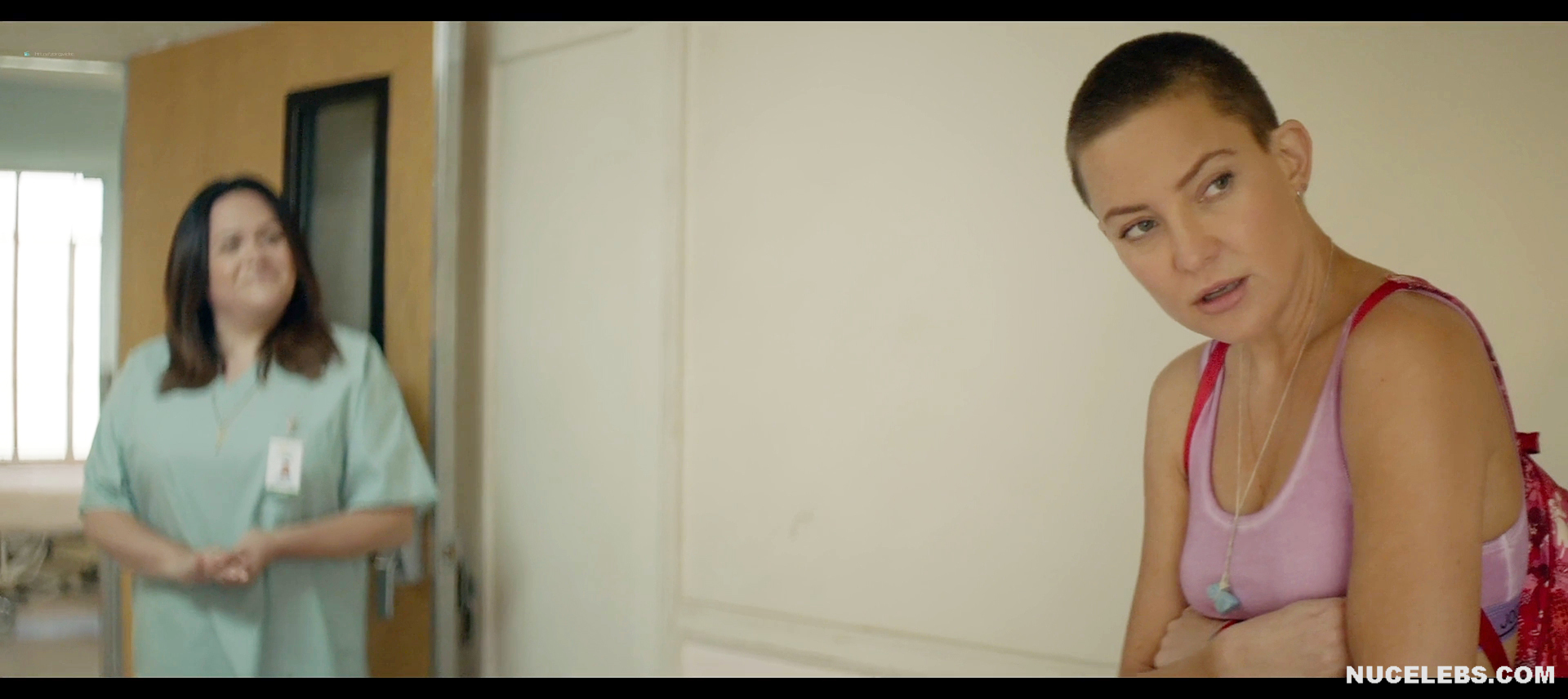 It’s pretty unusual to see Kate Hudson with a shaved head. It was in this way that she appeared in the musical Music. Kate Hudson didn’t show off her nude boobs this time. However, you will be able to see her poking nipples in a gray sports top. Also this American actress will flaunt her sweet booty in white panties. Well, maybe next time Kate Hudson will pamper us with her nude body?