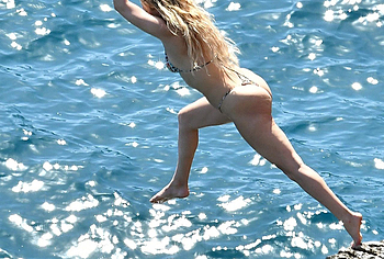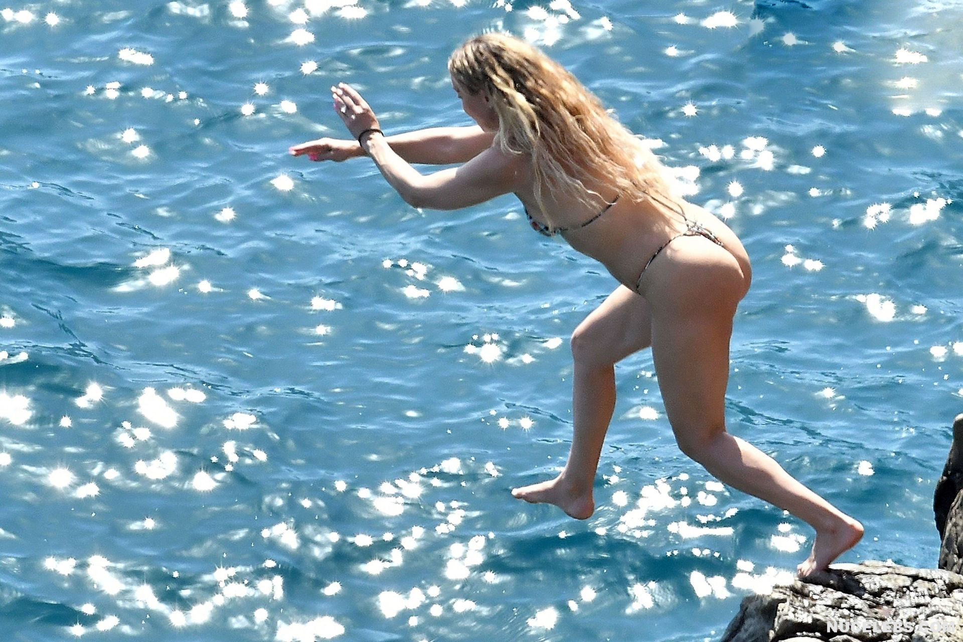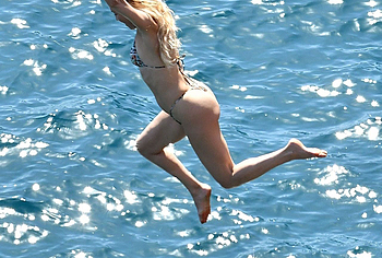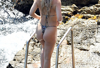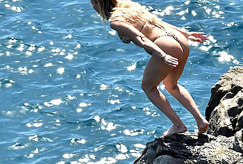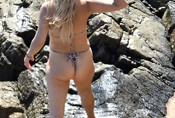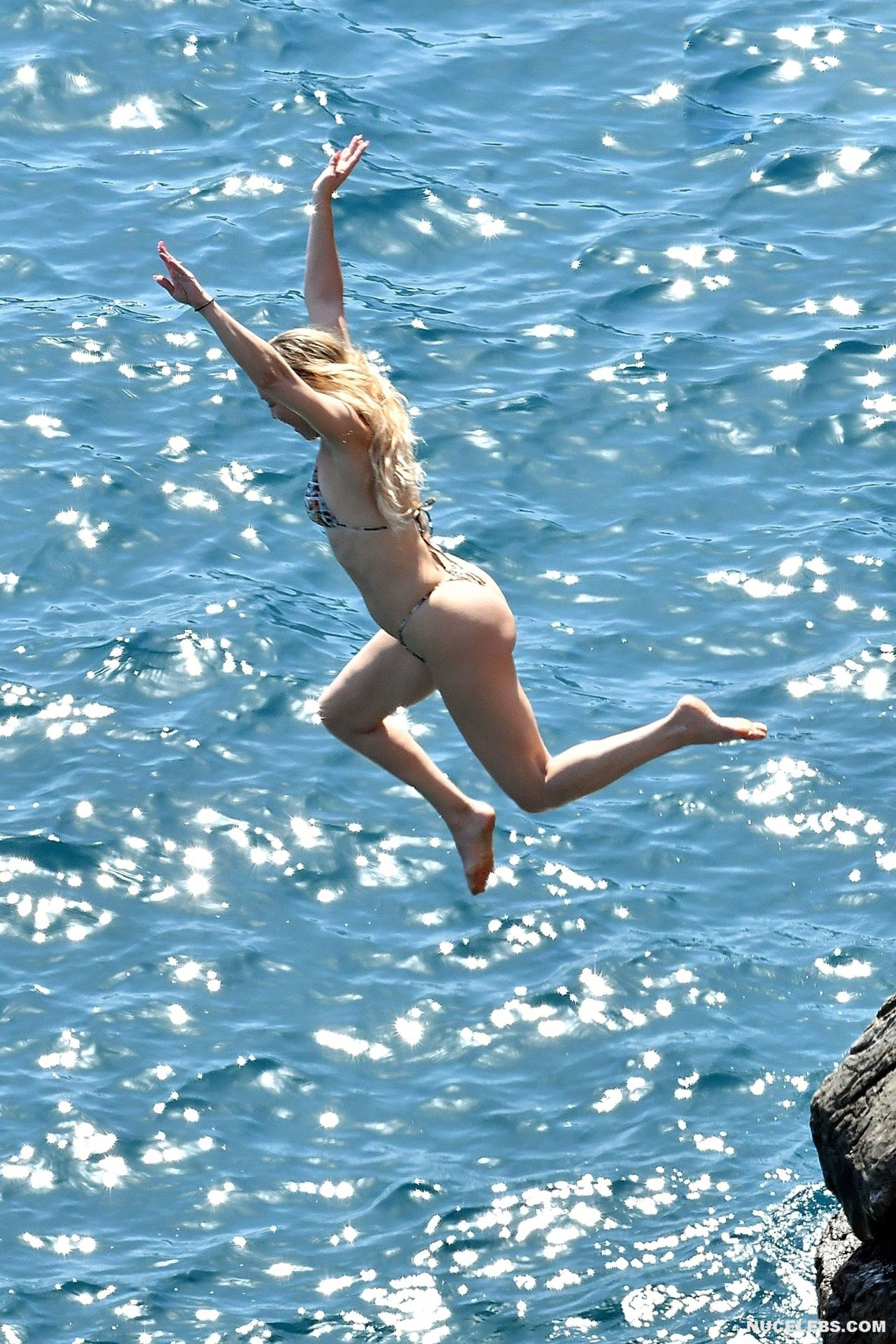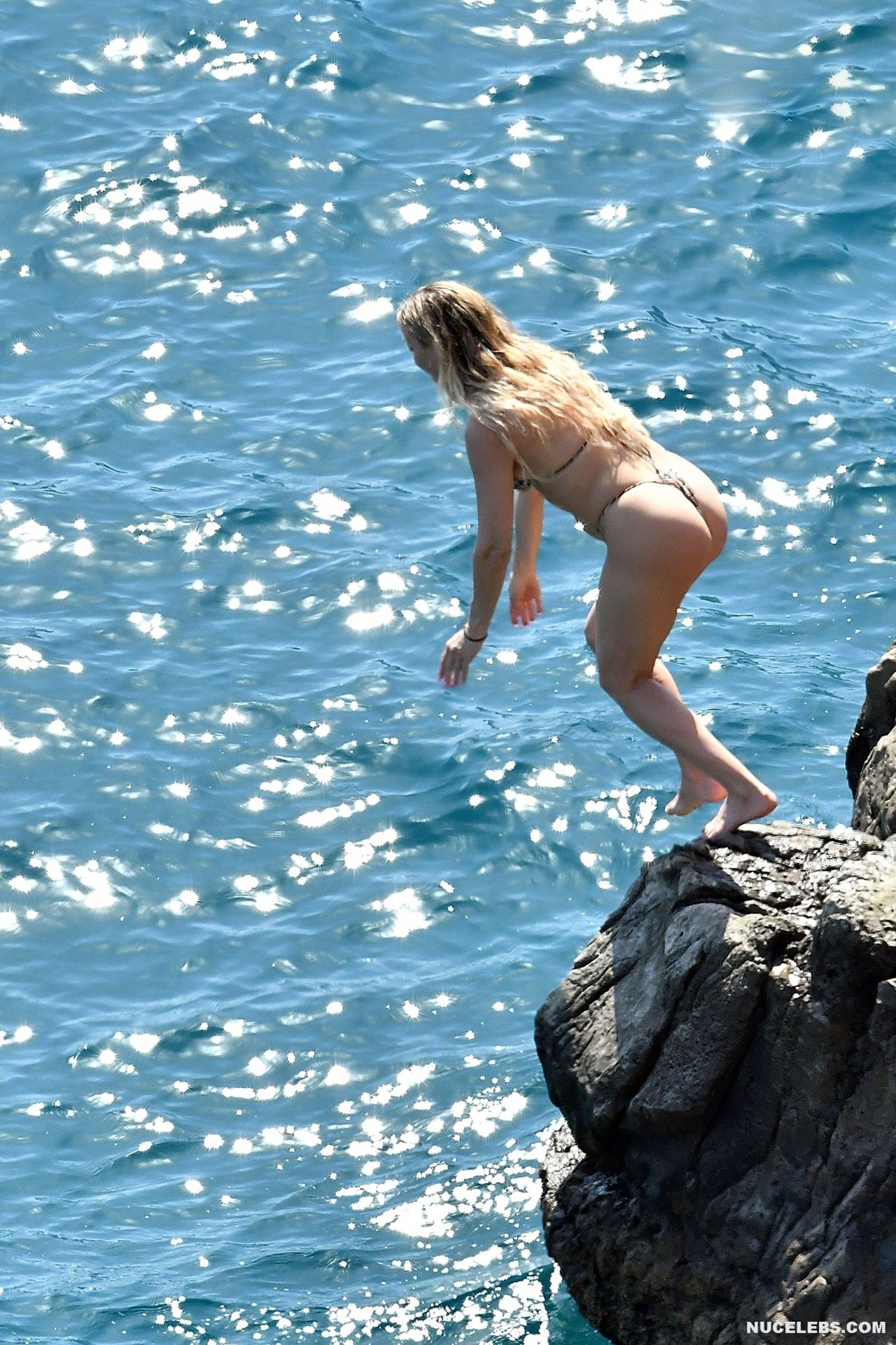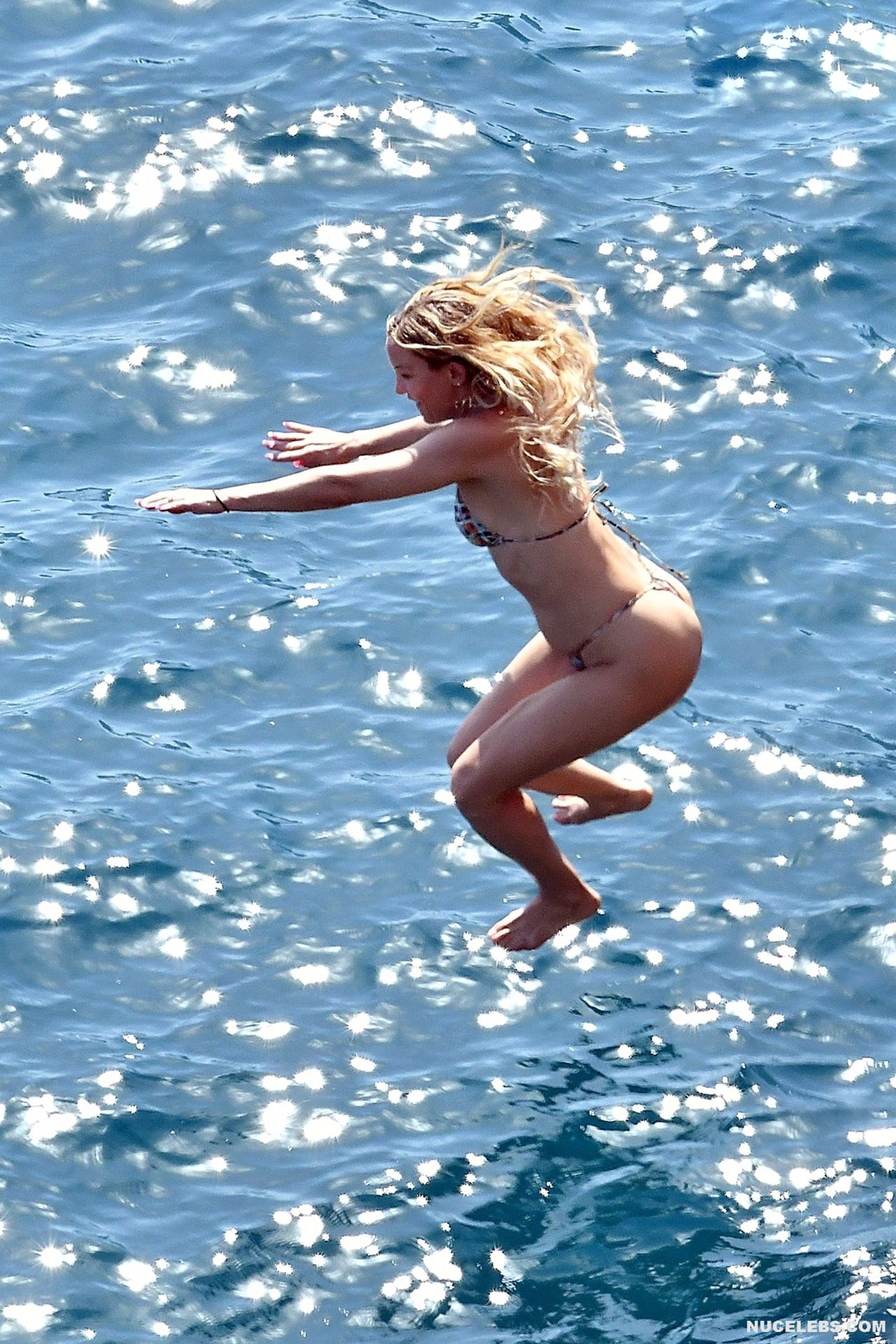 Kate Hudson had a lot of fun jumping off a cliff into the sea. In the meantime, she bathed and climbed up the rock over and over again, the paparazzi photographed her from different angles. Kate Hudson’s nude booty was covered only by a narrow strip of thong and you will definitely drool looking at it! In fact, it would be great if Kate Hudson bathed completely nude. But so far, this 43-year-old actress hasn’t worked up the courage to do so.
