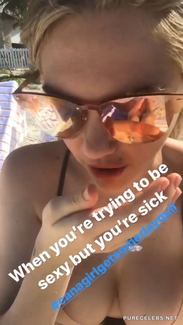 Kate Upton was feeling a bit under the weather this summer, but it didn’t stop her from looking sexy and treating her fans to some sexy footage of herself masturbating on the beach. She started the foreplay off by photographing her stunning breasts in a small pink bathing suit with her hard nipples poking through, and she continued her show by taking off all of her clothes and rubbing her juicy pussy.