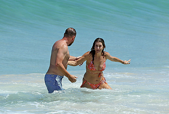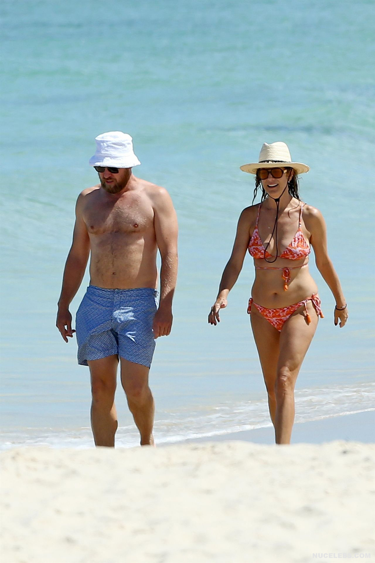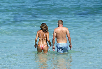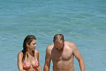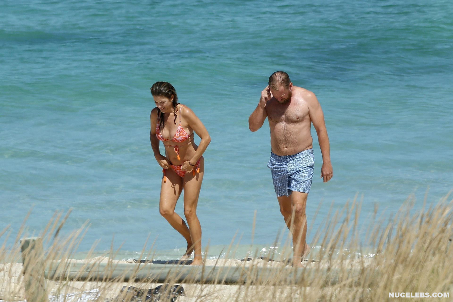 The paparazzi decided to follow Kate Walsh during her vacation. And they managed to capture amazing photos of this celebrity in a bikini! This American actress looked especially seductive when she came out of the sea. The wet orange bra perfectly fitted Kate Walsh’s nude juicy boobies. And miniature panties emphasized her plump booty. Also, her boyfriend was delighted with this beauty, who gently kissed and hugged her.