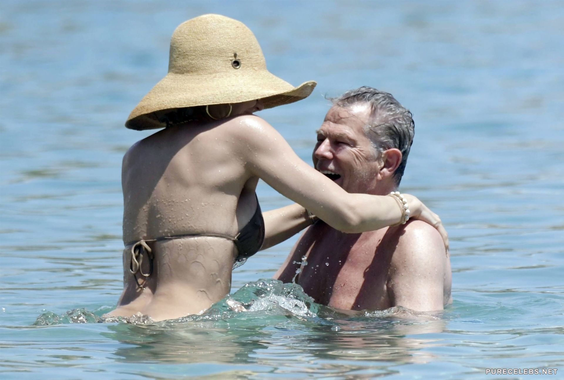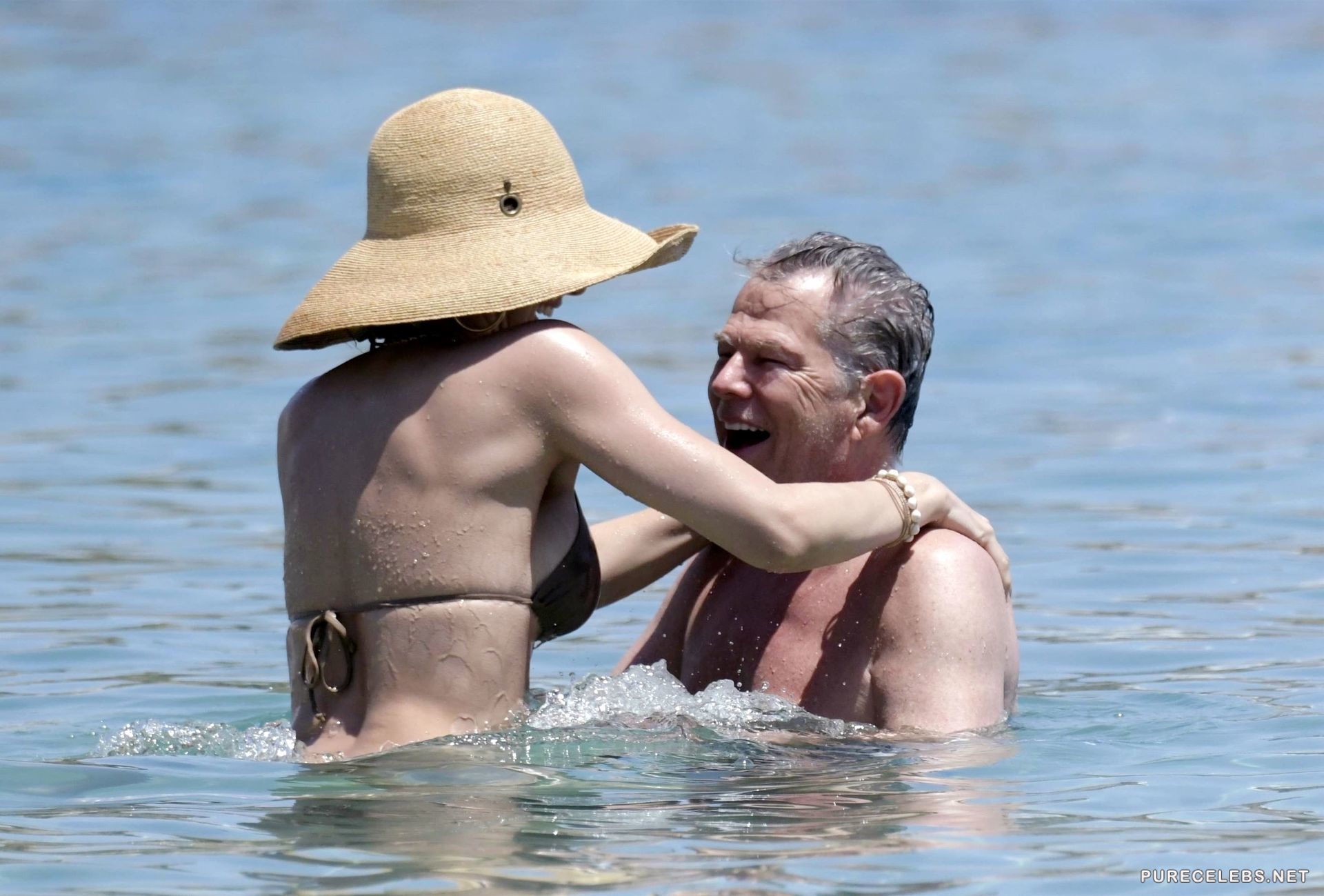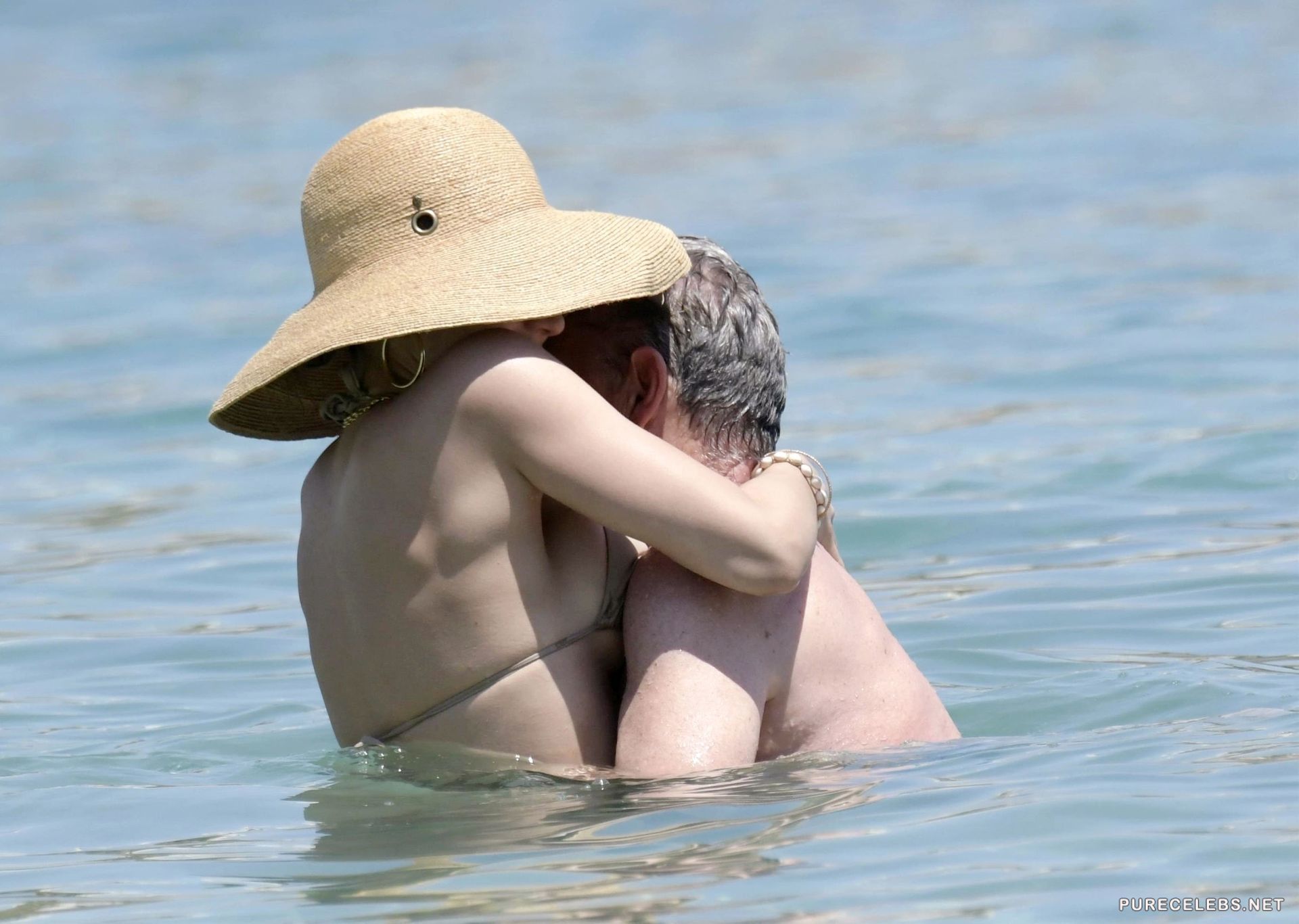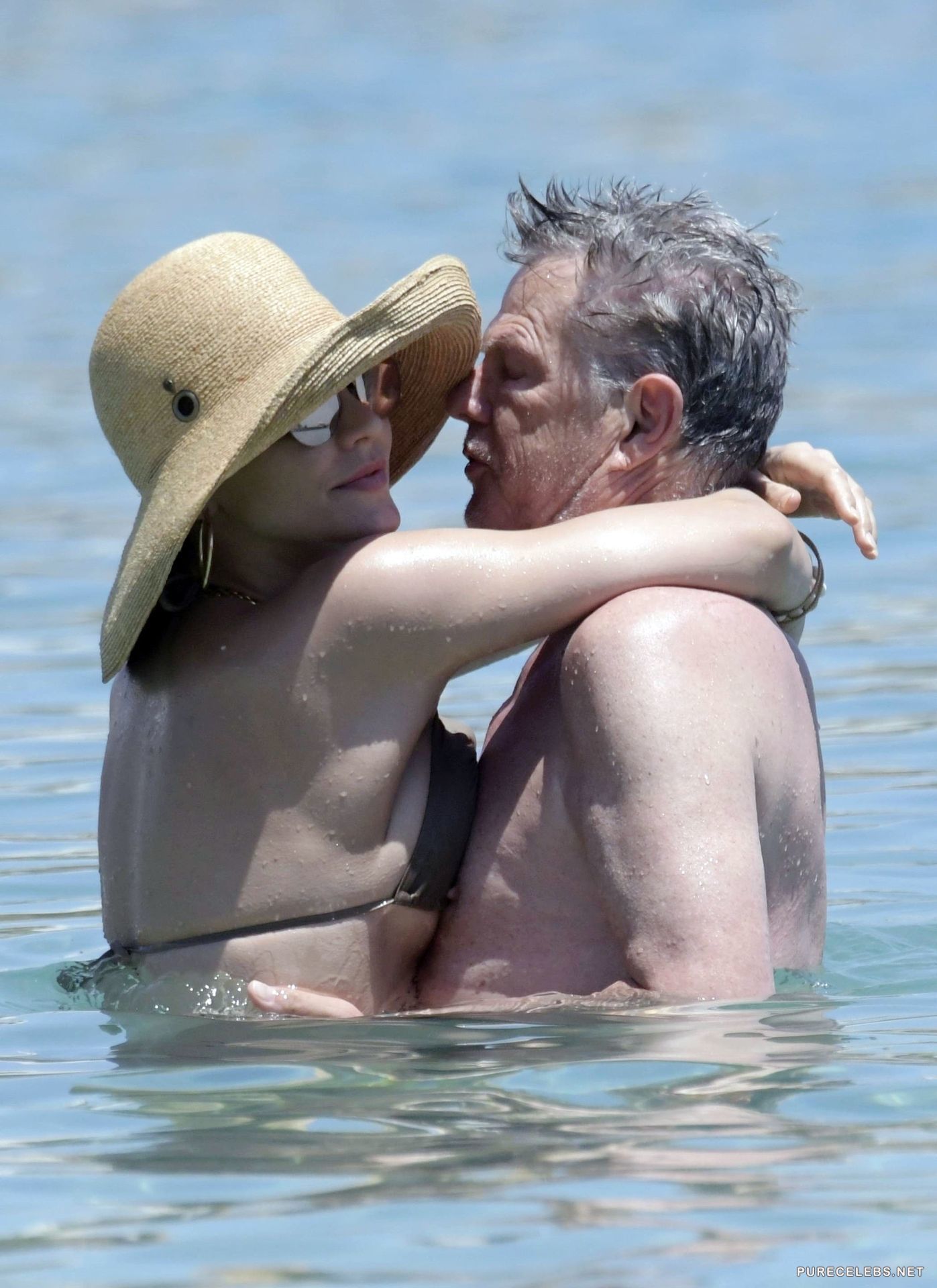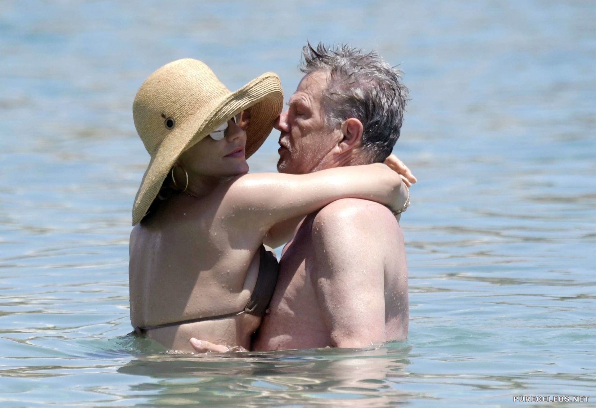 American actress and singer Katharine McPhee was recently caught by the paparazzi while she was swimming and sunbathing on the beach. The celebrity wore a wide-brimmed hat and black sunglasses, and a beige bikini perfectly emphasized the beauty of her gorgeous body. Her panties were very small and her ass looked very seductive in them. And through her small thin bra we can see her poking nipples and it is very sexy!