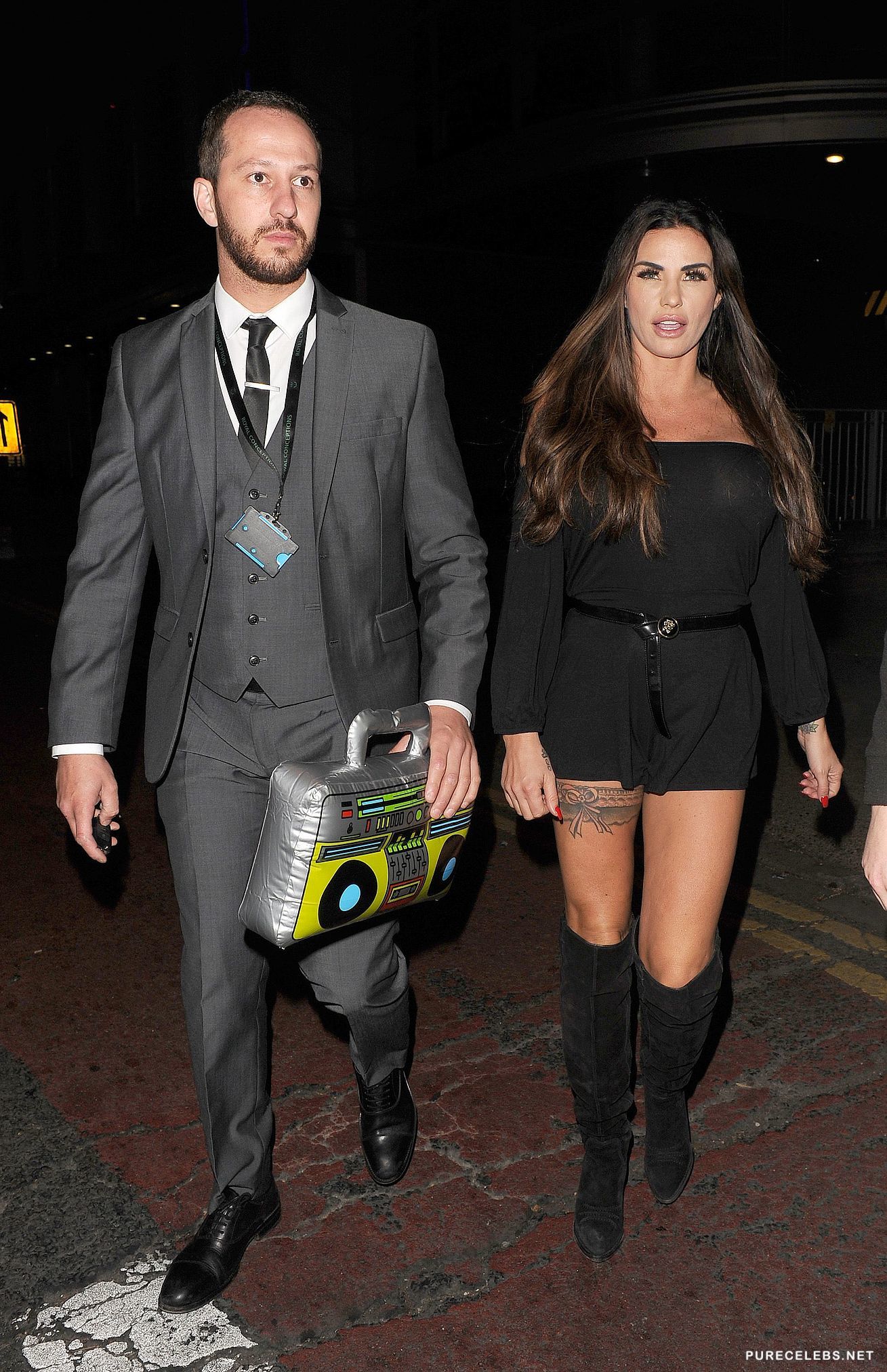 Katie Price is successful model, author, designer and TV personality from England. She is still doing photo shoots and posting selfies on Instagram and Twitter with millions of followers enjoy them. This blonde bombshell is most famous for her giant knockers, and paparazzi caught Katie wearing long black boots and short black see-through dress, which barely hid her boobs with nipples clearly visible by everyone, because thankfully she decided not to wear bra.