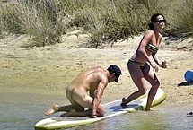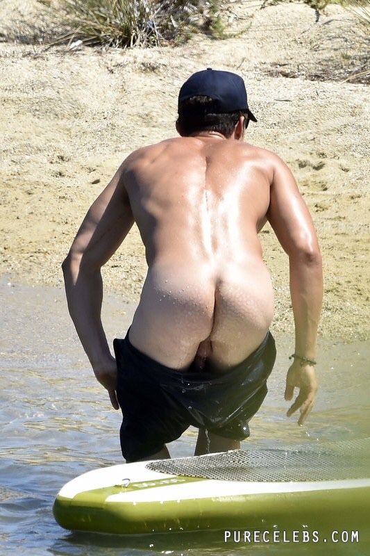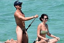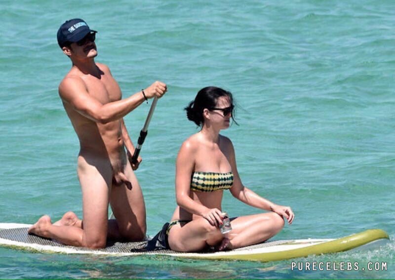 Hollywood lovebirds Katy Perry and Orlando Bloom were on vacation, and forgetting they were celebs when these paparazzi photos were taken. In these exclusive pictures you can see them paddling on a surf board with Orlando butt naked, and Katty in a tiny yellow bikini. But that’s not all. Orlando gave the paparazzi a few more shots of his half hard cock while nude. Oops!