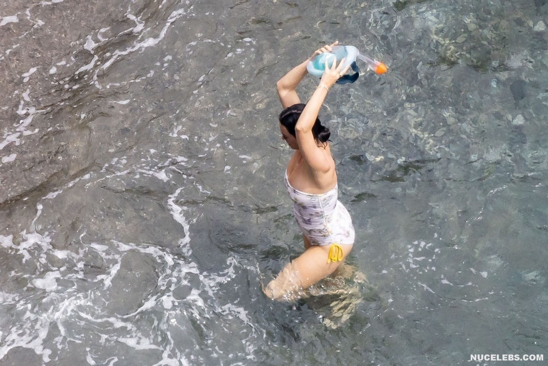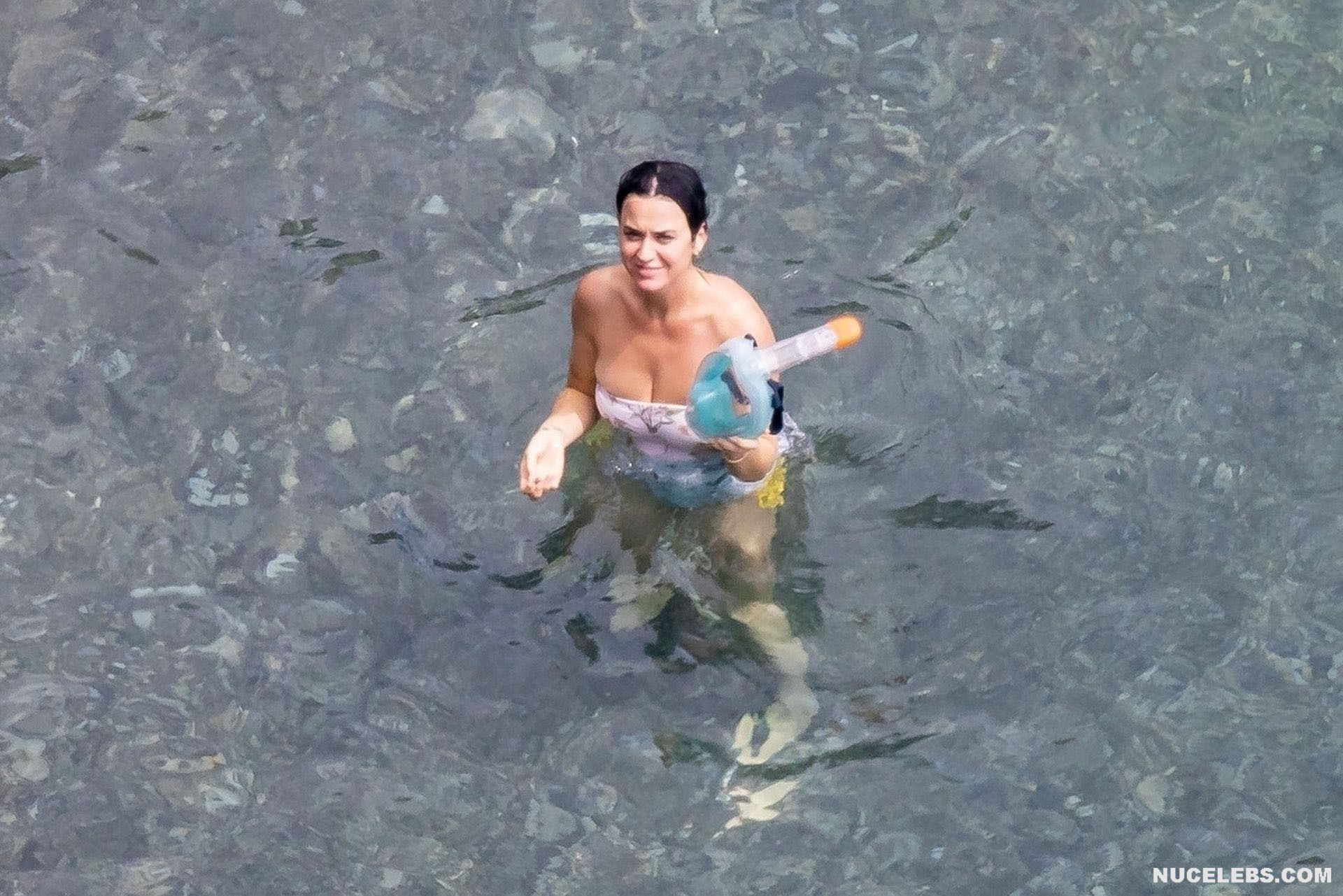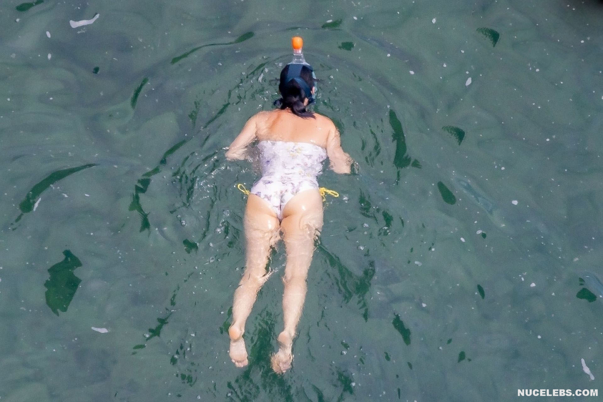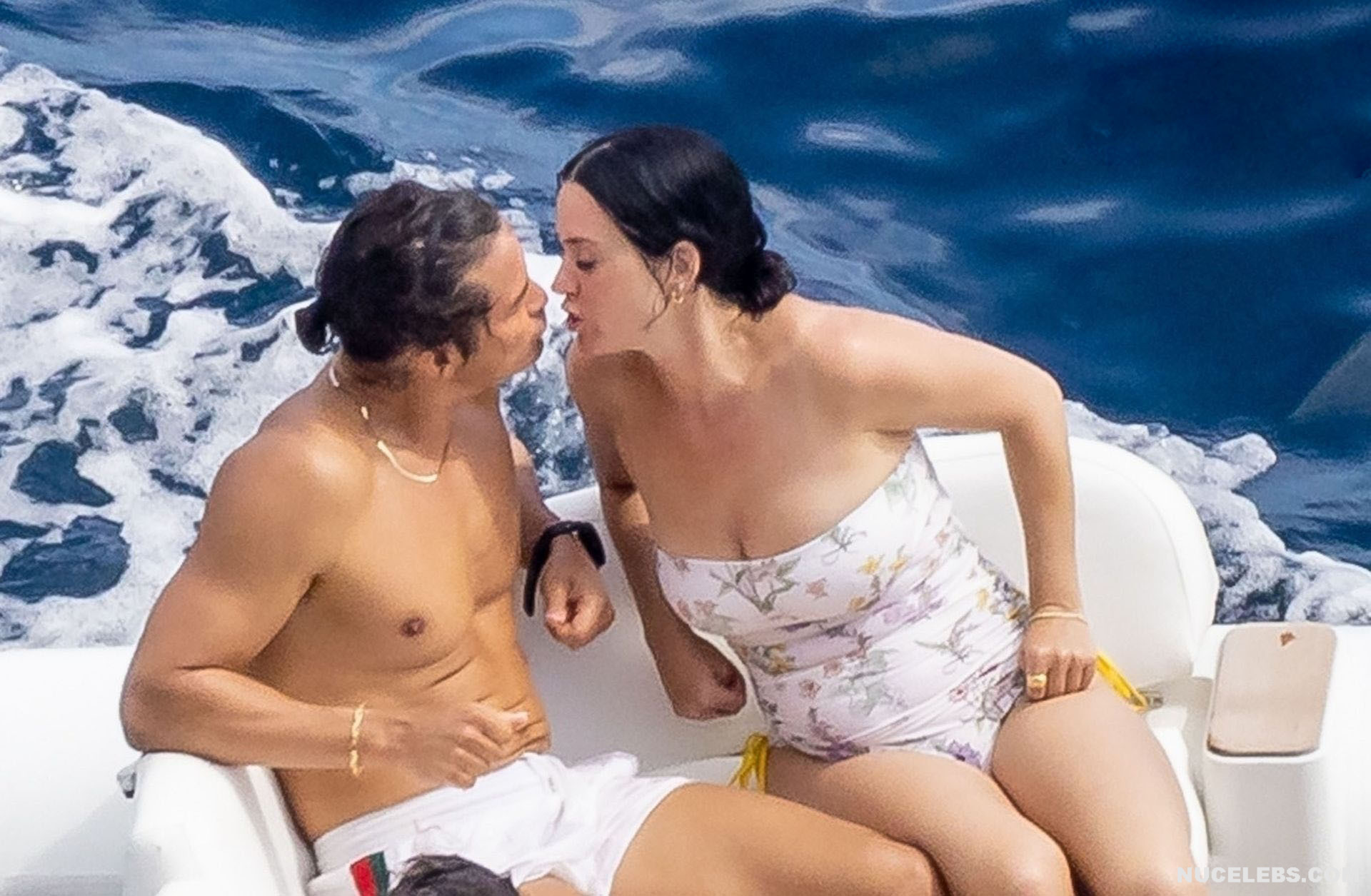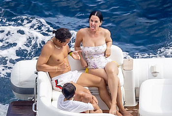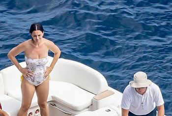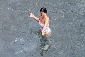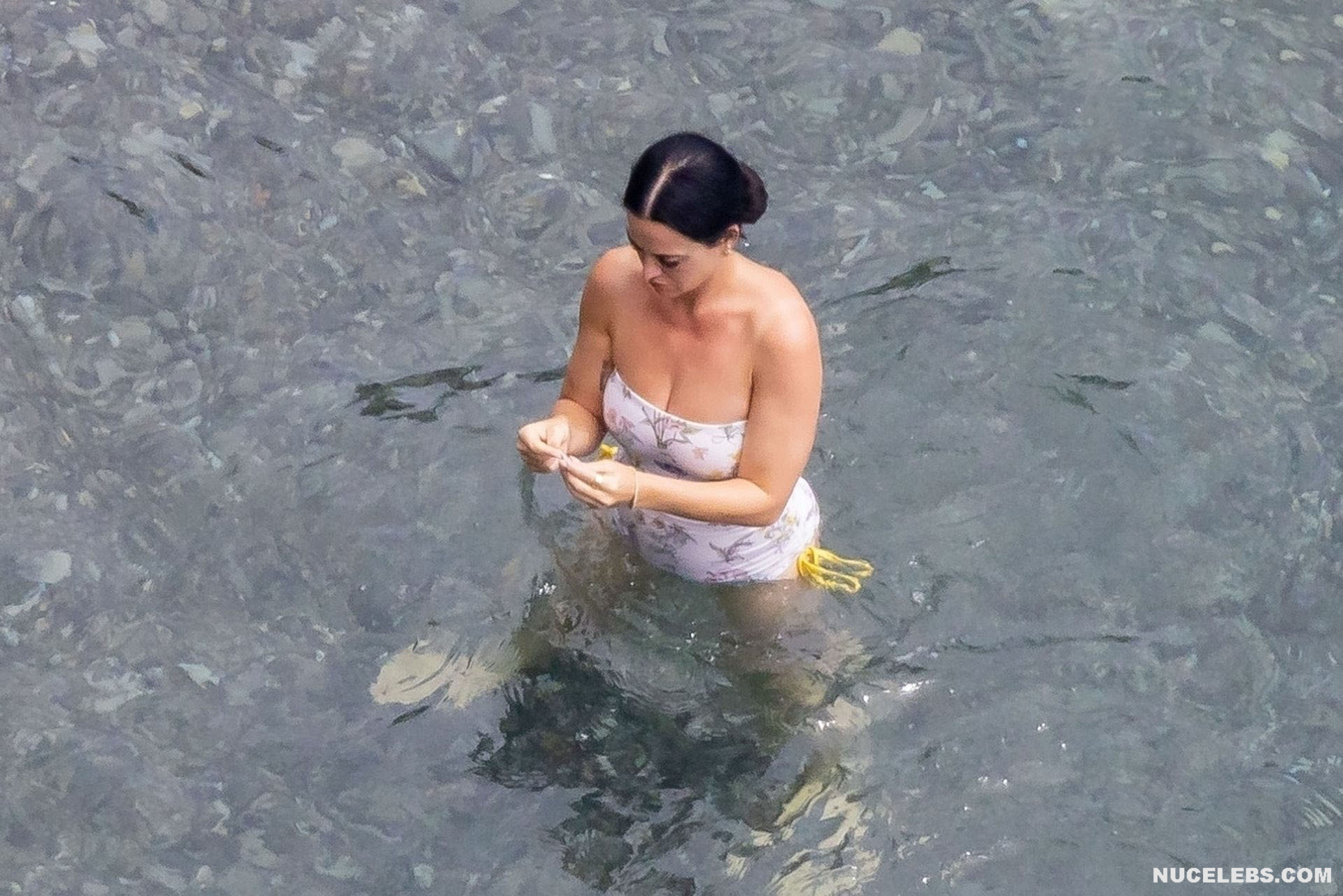 While Katy Perry was enjoying a beach holiday with her husband, the paparazzi followed her everywhere with a camera. And it is worth noting that they took some spicy pics of this celebrity. This time around, Katy Perry wore a white print bodycon swimsuit that accentuated her stunning cameltoe. By the way, her bathing suit almost slipped off her breasts several times. So the opportunity to see the bare boobs of this singer was so close!