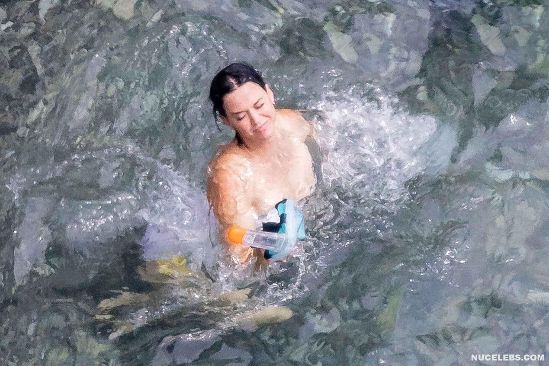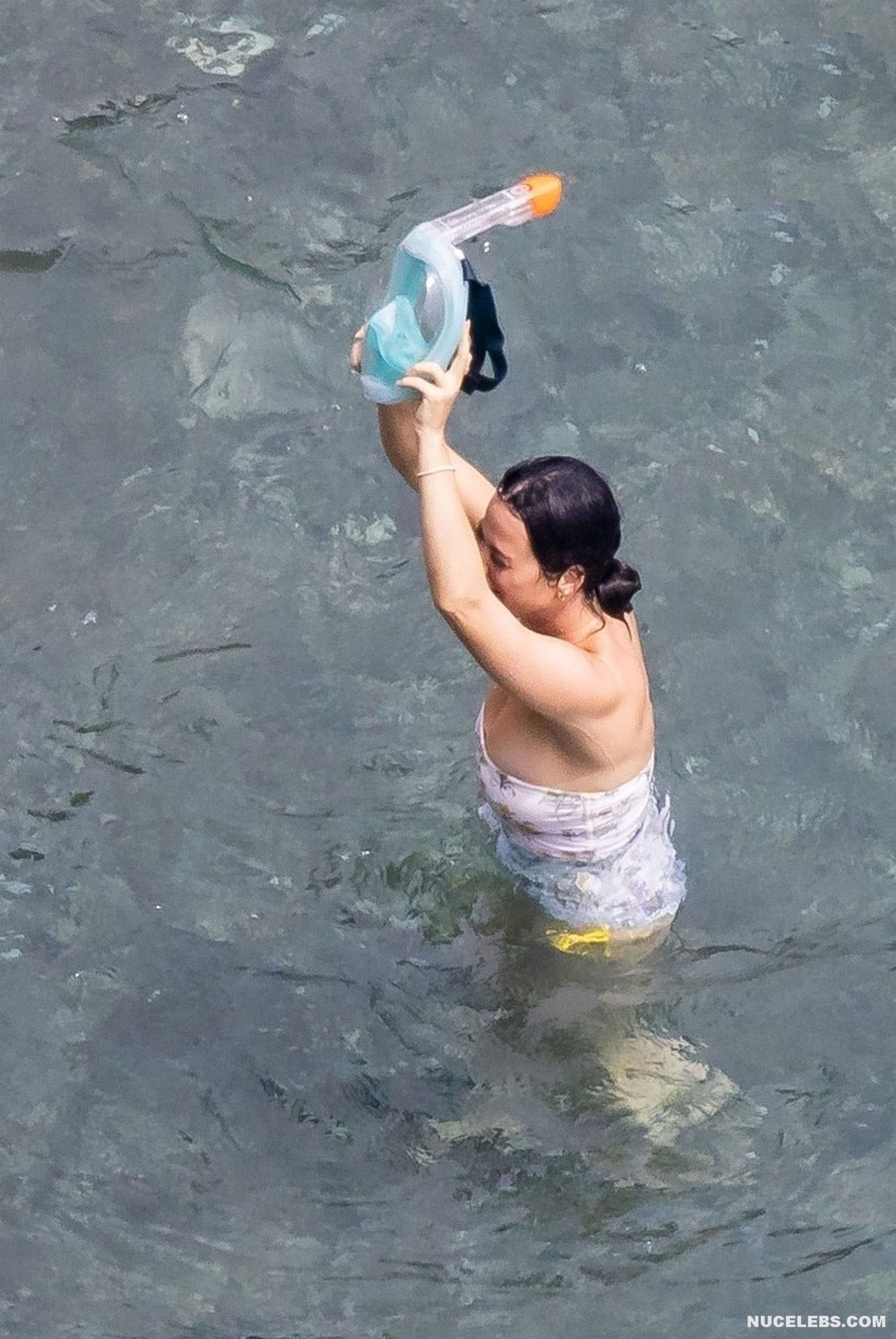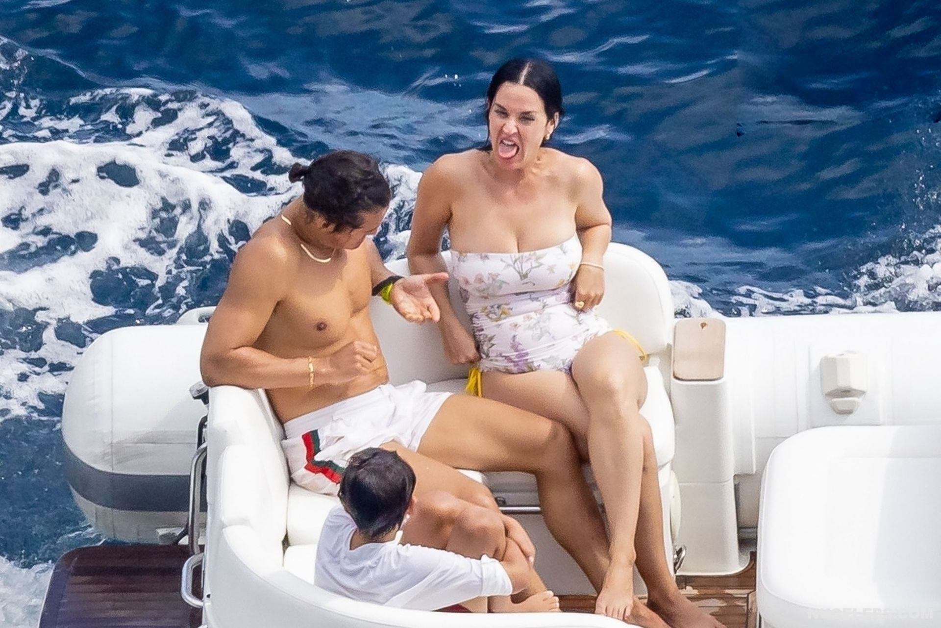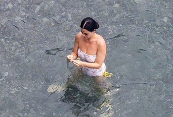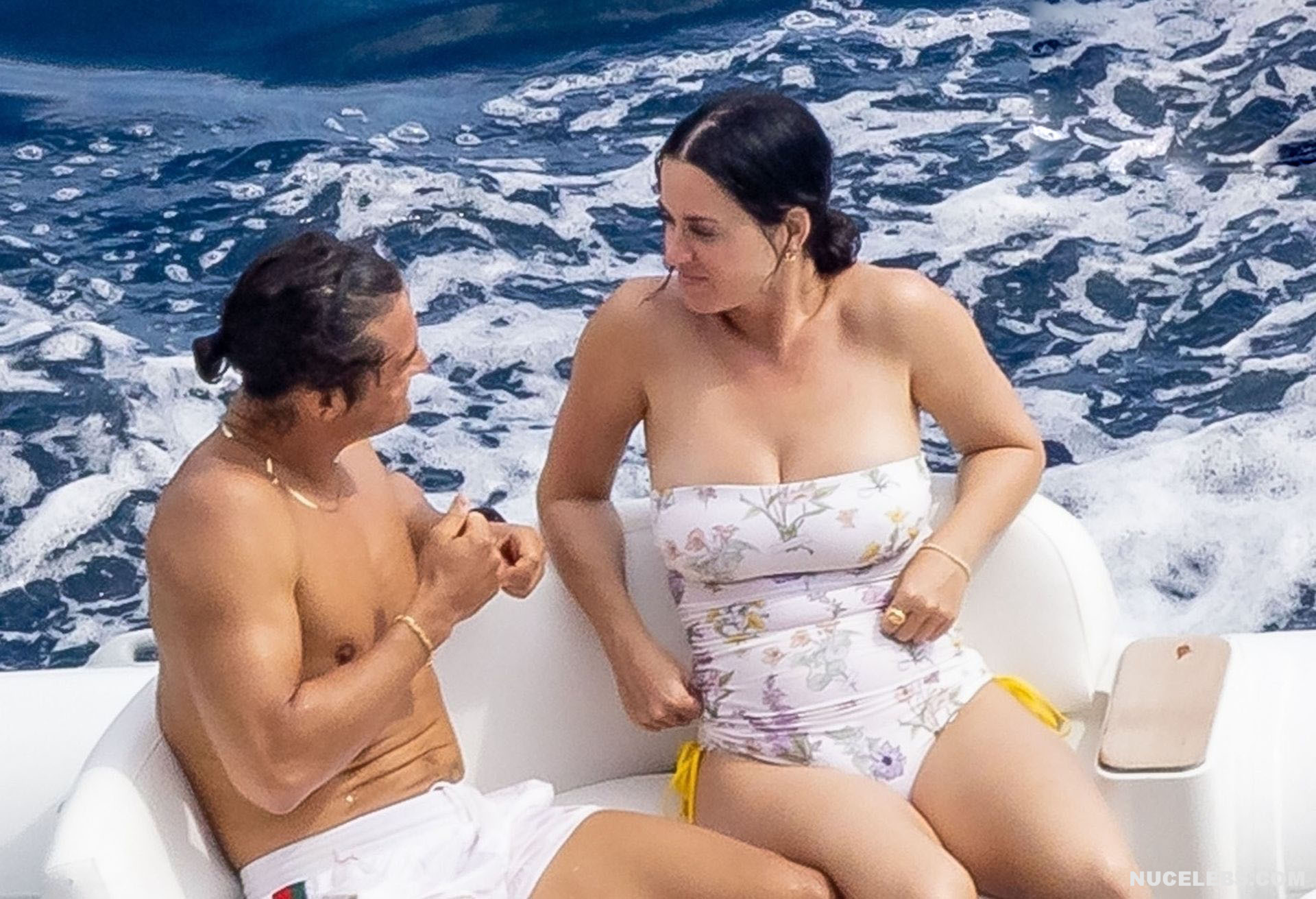 While Katy Perry was enjoying a beach holiday with her husband, the paparazzi followed her everywhere with a camera. And it is worth noting that they took some spicy pics of this celebrity. This time around, Katy Perry wore a white print bodycon swimsuit that accentuated her stunning cameltoe. By the way, her bathing suit almost slipped off her breasts several times. So the opportunity to see the bare boobs of this singer was so close!