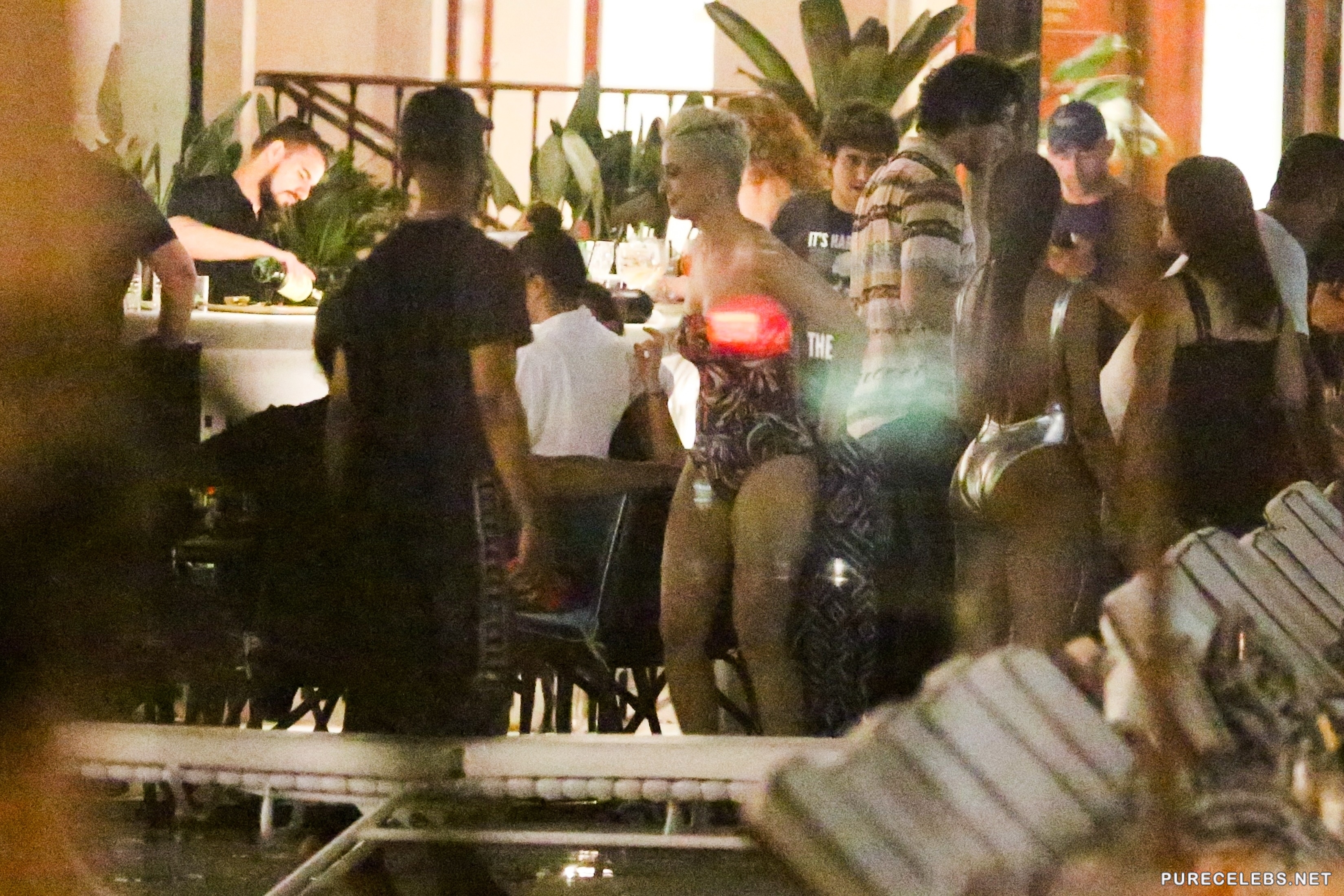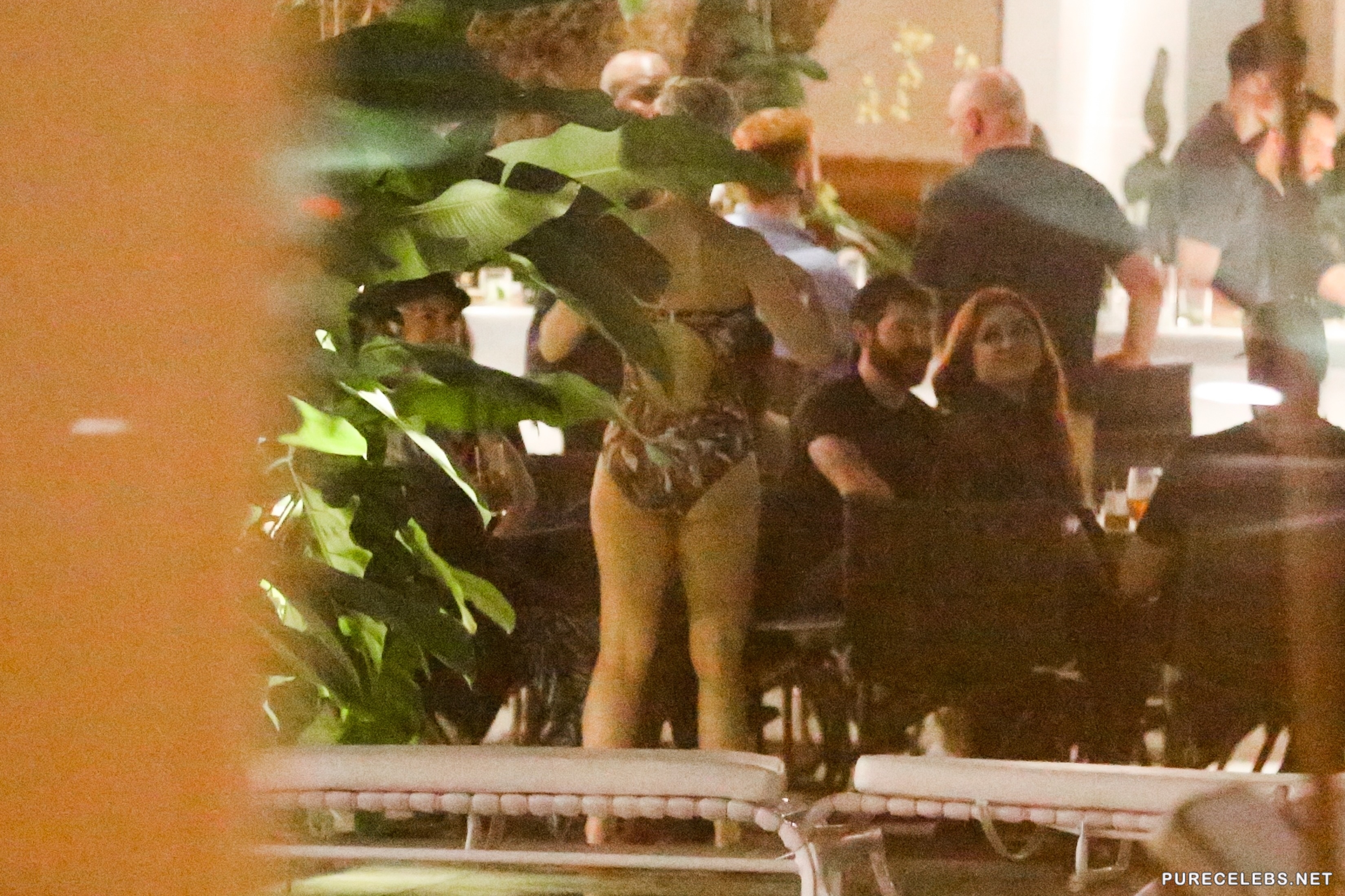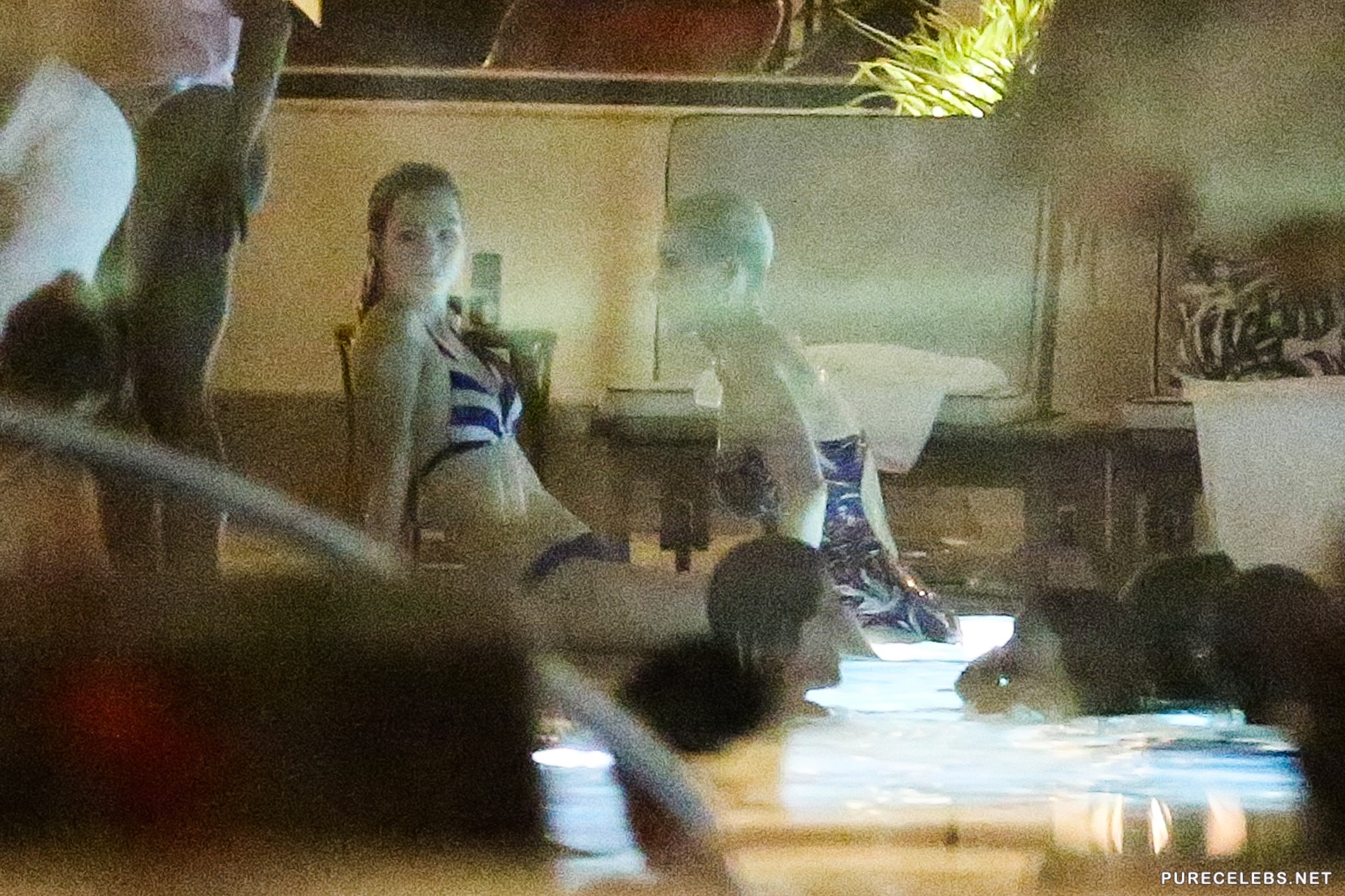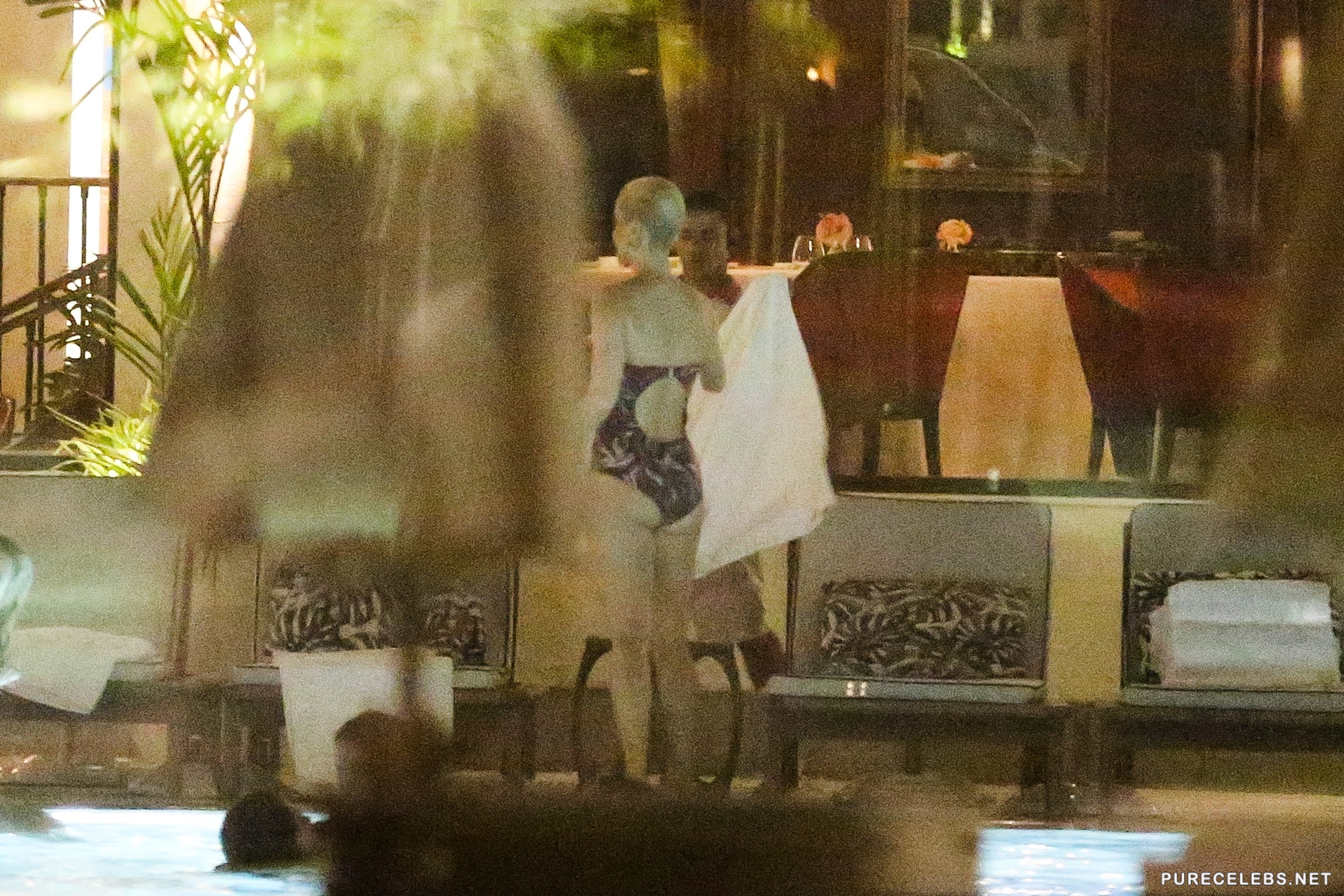 Katy Perry is always followed by paparazzi, for they are trying to catch some hot pictures of this beautiful busty singer. This time they got some photos of Katy on public pool where she walked around dressed in tight bikini. She is clearly really horny, because while she walks she is touching her tight pussy even thought she is surrounded by other people, but that doesn’t seem to bother her.