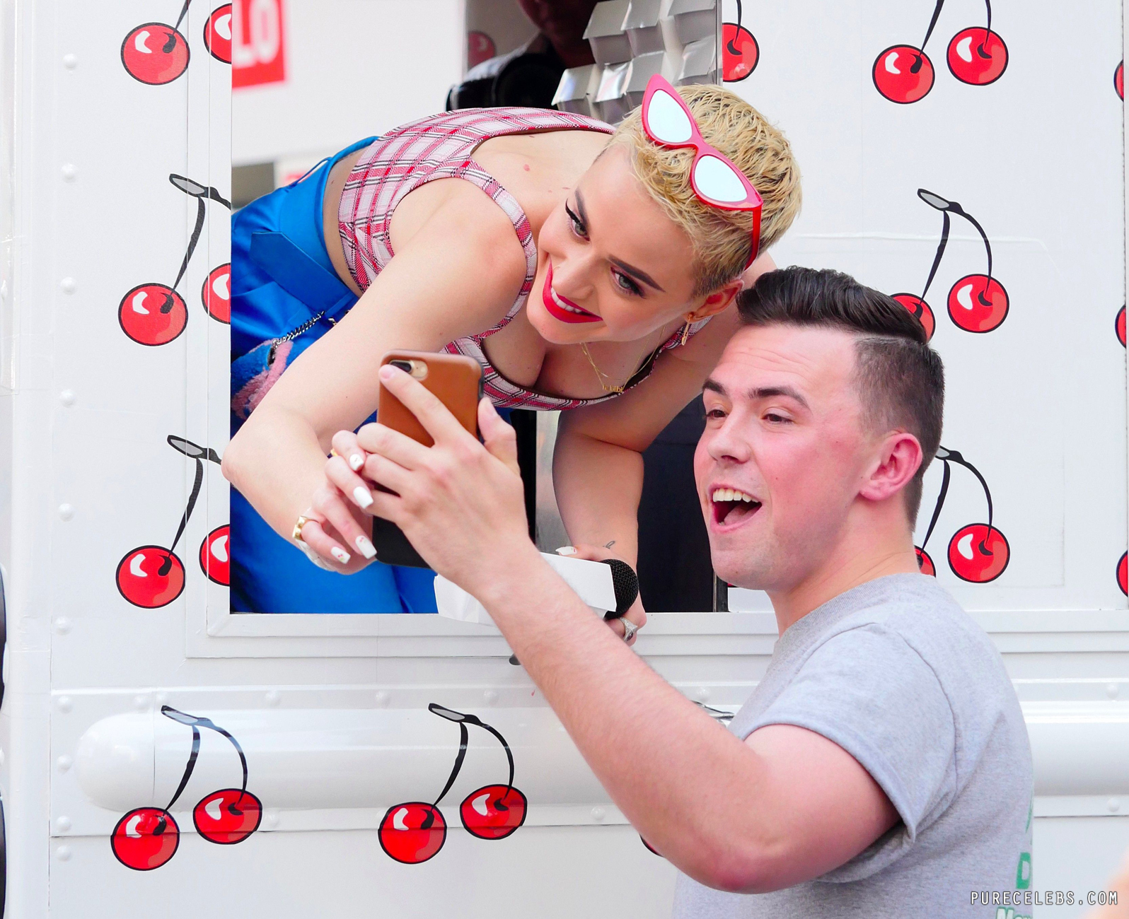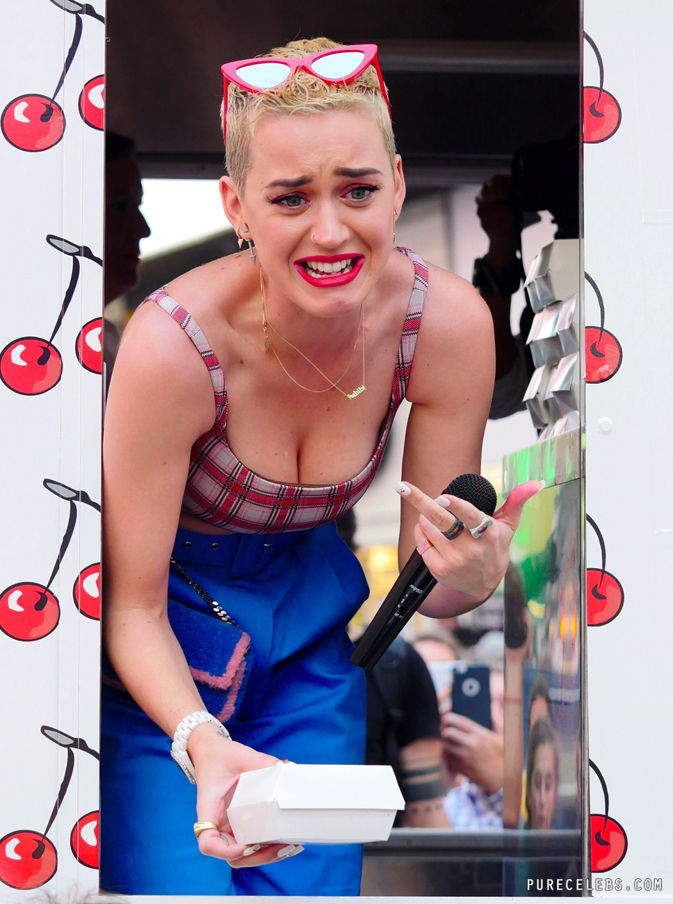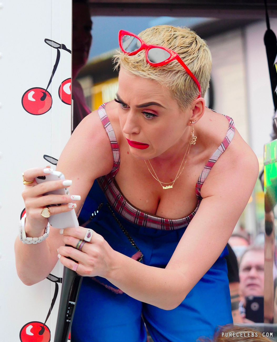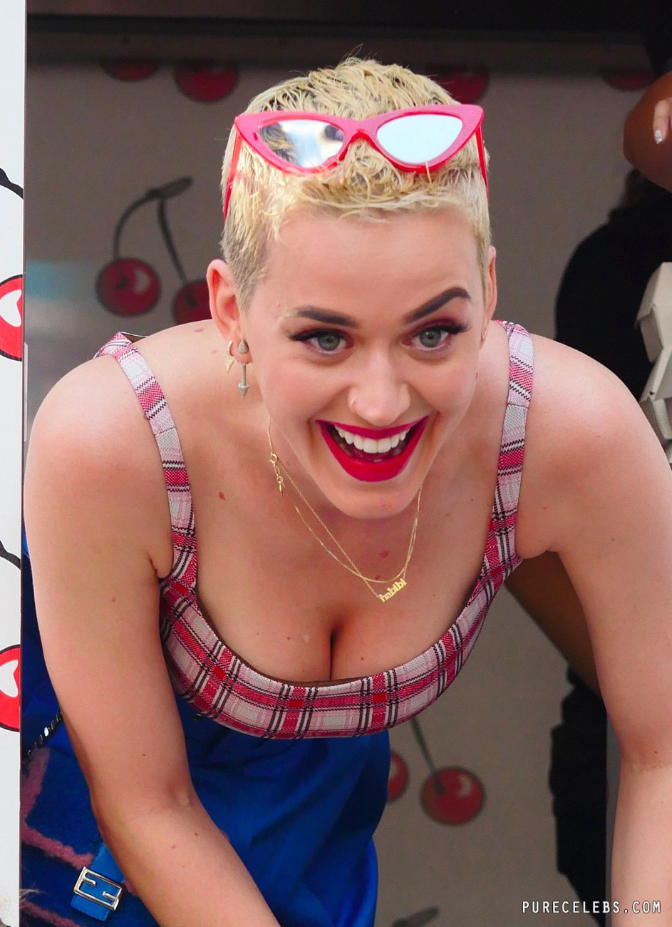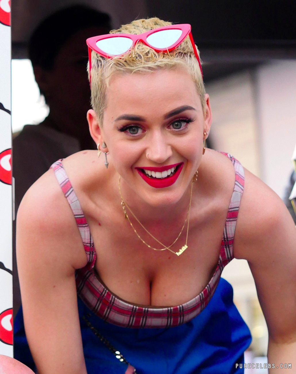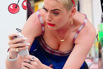 Katy Perry is one hell of a hot singer. She has adorable face with charming smile, and a body that is worth dying for! Because when you take her whole into consideration, she has awesome big boobs and perfectly round booty! When we said boobs, paparazzi caught her deep cleavage during her new song premiere called “Bon Appetit” in New York! Follow through and enjoy in her magnificent cleavage!