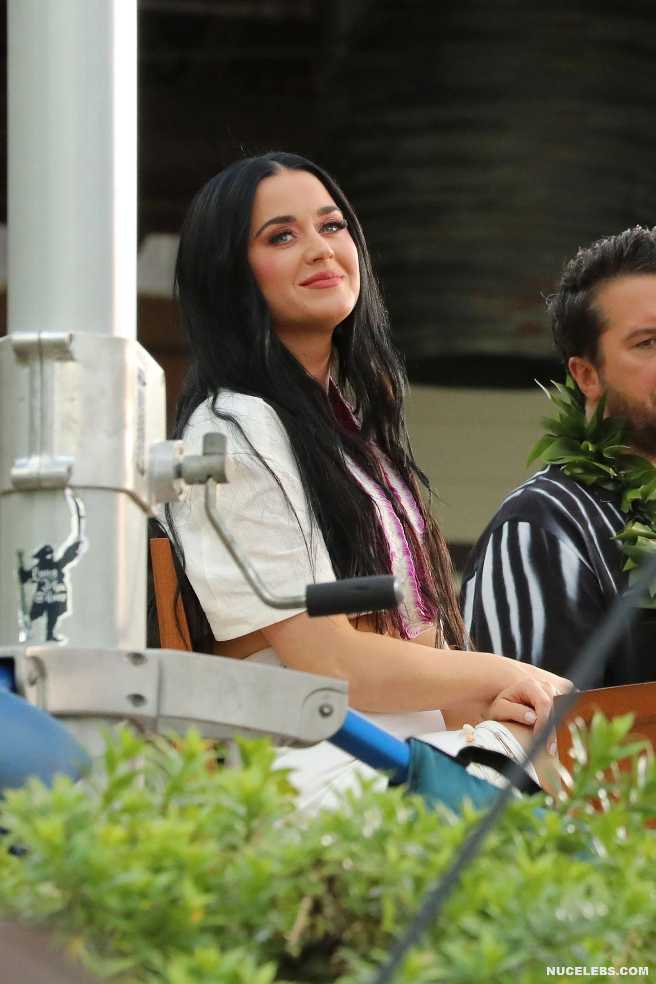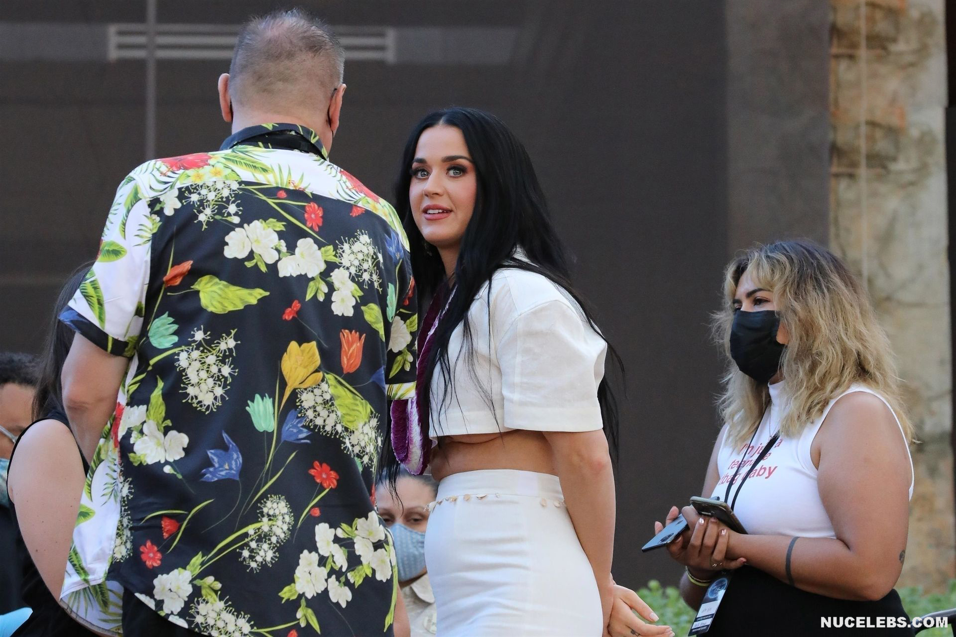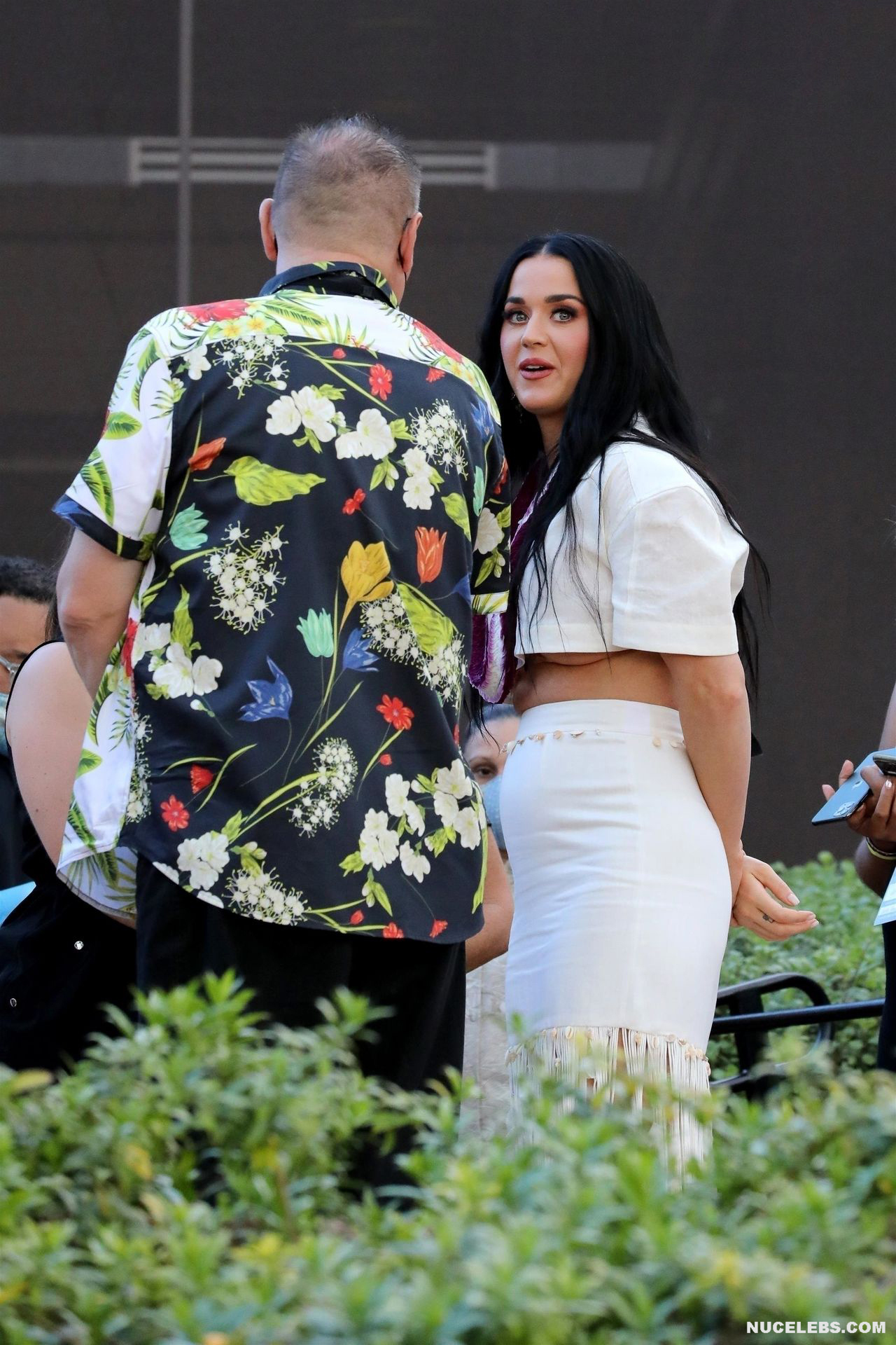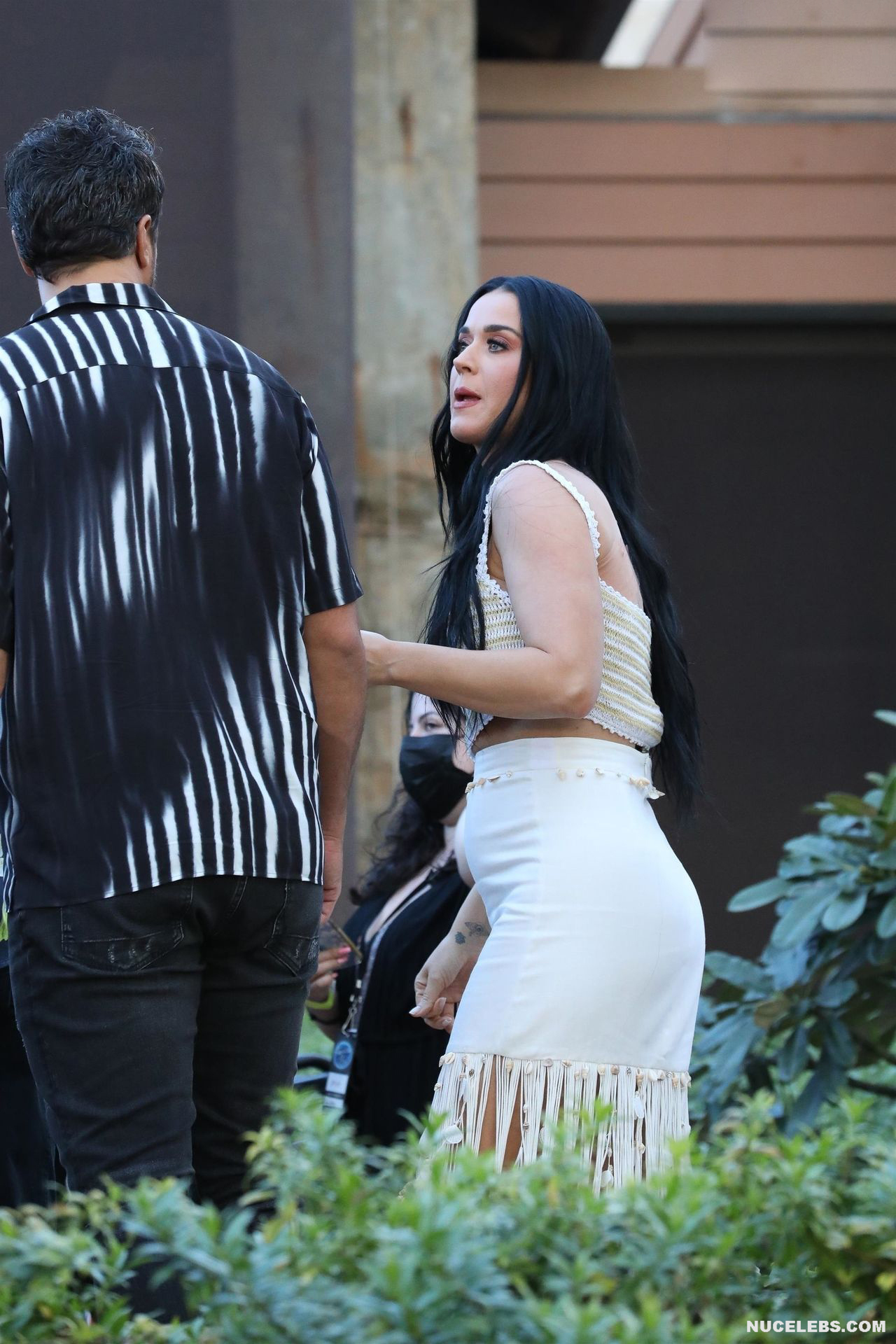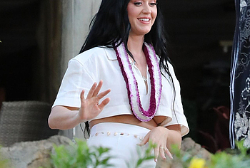 37-year-old singer Katy Perry continues to tease the audience with her nude boobs. At the same time, she does it as if by chance. So, the paparazzi photographed this star in a white outfit with a purple necklace. This blue-eyed brunette interacted with men, as if not paying attention to the impression she made on others. The fitted skirt perfectly emphasized the singer’s narrow waist. And the bottom of Katy Perry’s nude juicy boobs peeped seductively out of her short top.
