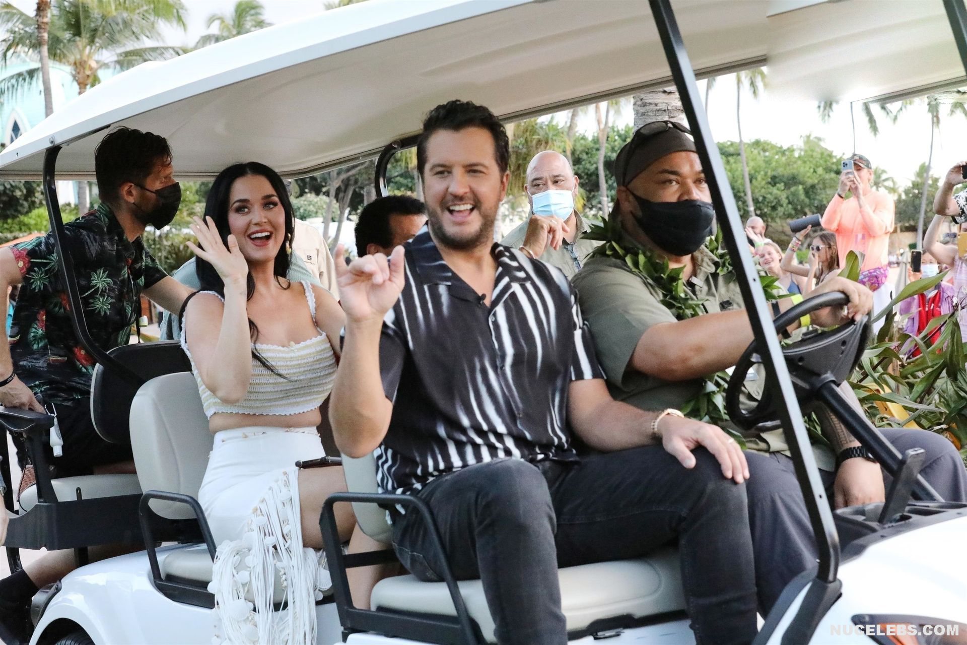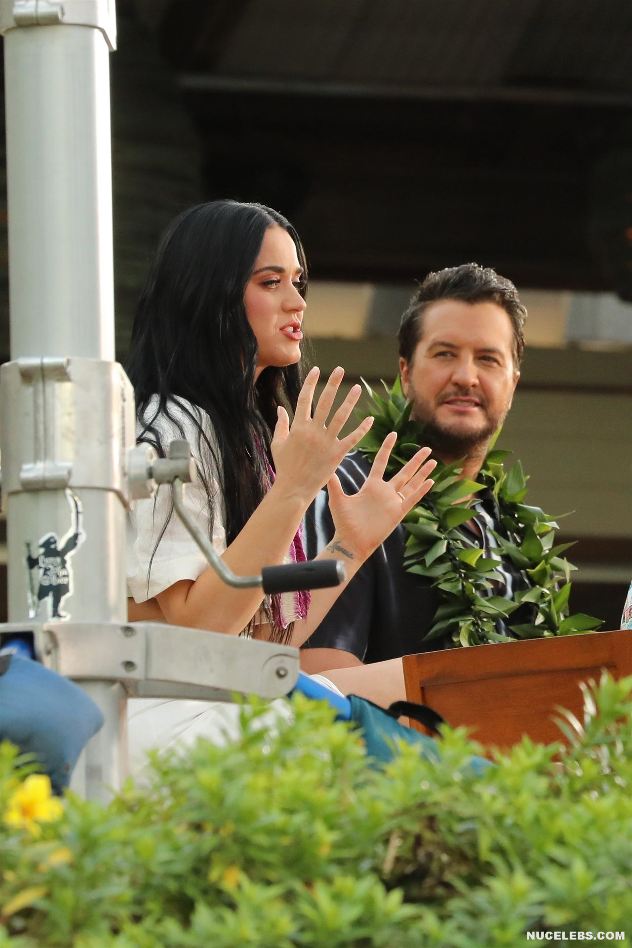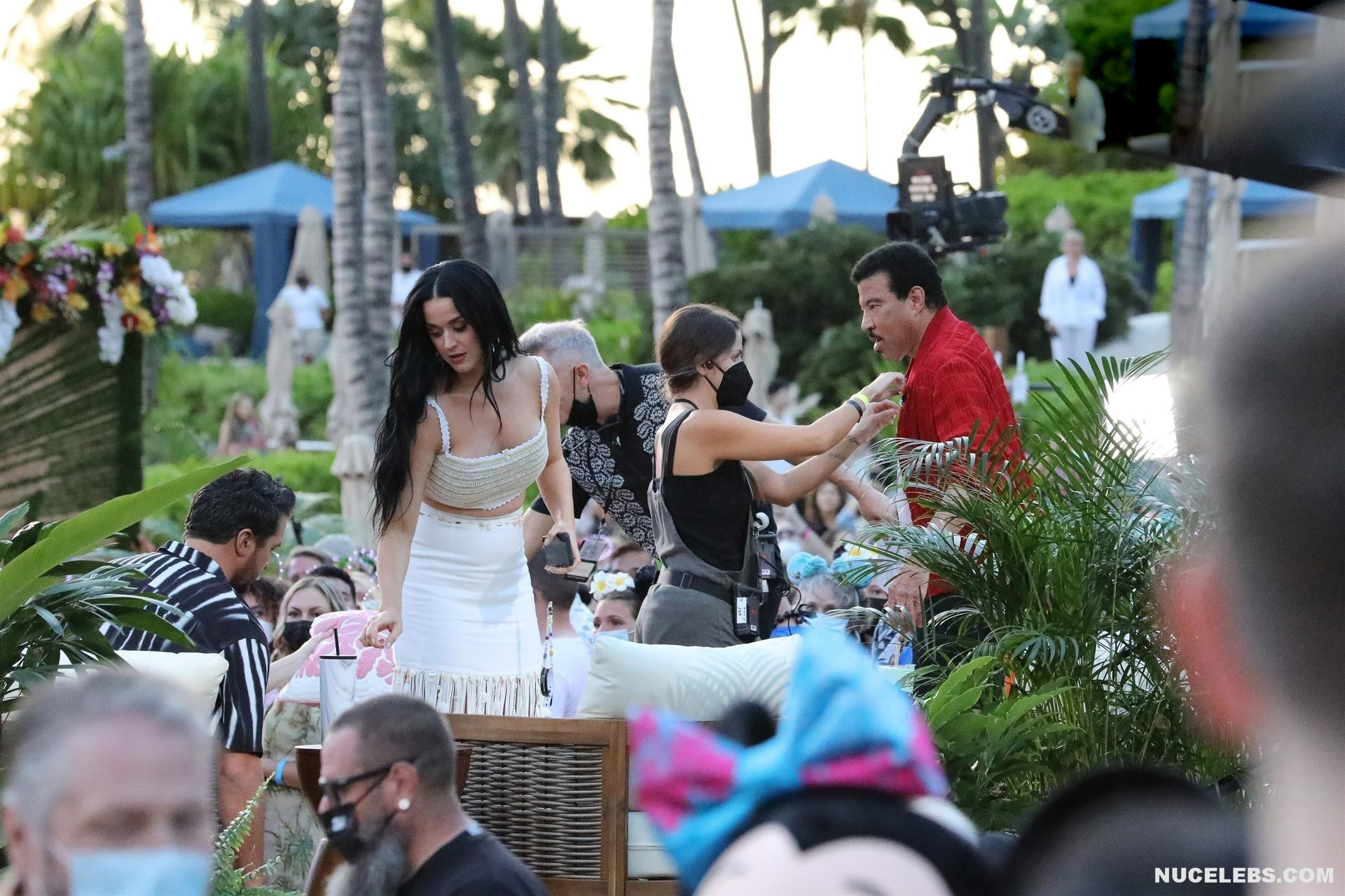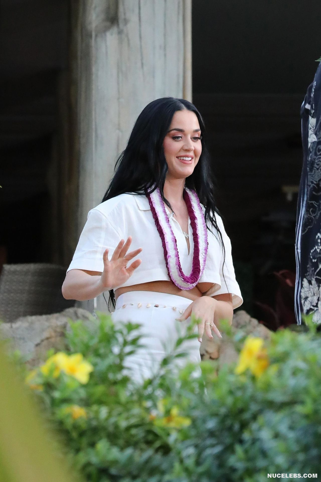 37-year-old singer Katy Perry continues to tease the audience with her nude boobs. At the same time, she does it as if by chance. So, the paparazzi photographed this star in a white outfit with a purple necklace. This blue-eyed brunette interacted with men, as if not paying attention to the impression she made on others. The fitted skirt perfectly emphasized the singer’s narrow waist. And the bottom of Katy Perry’s nude juicy boobs peeped seductively out of her short top.