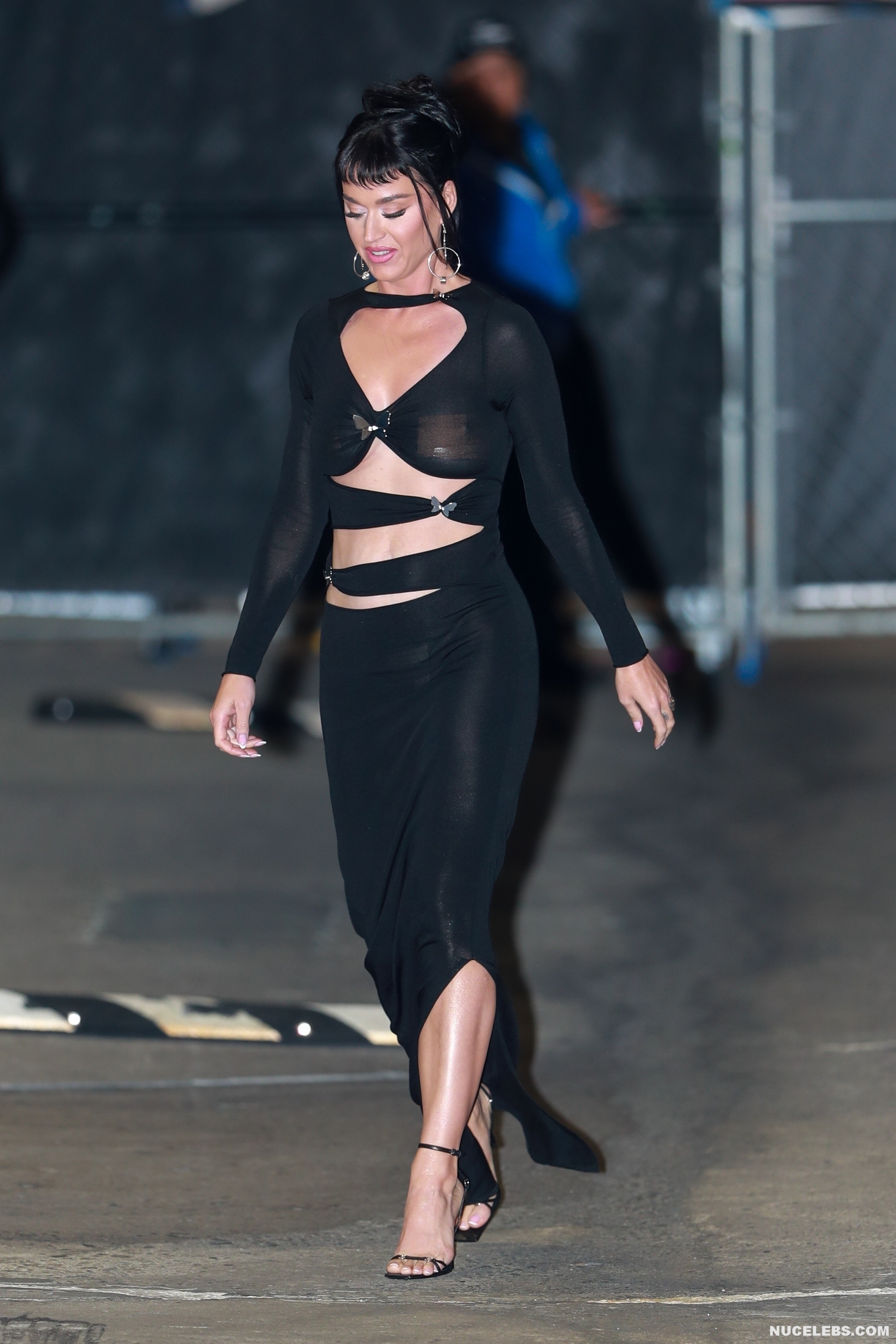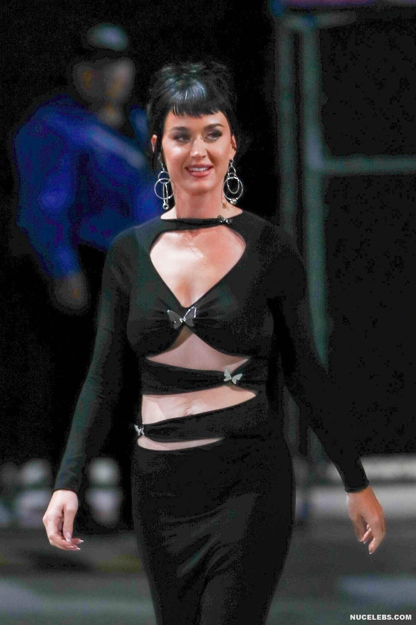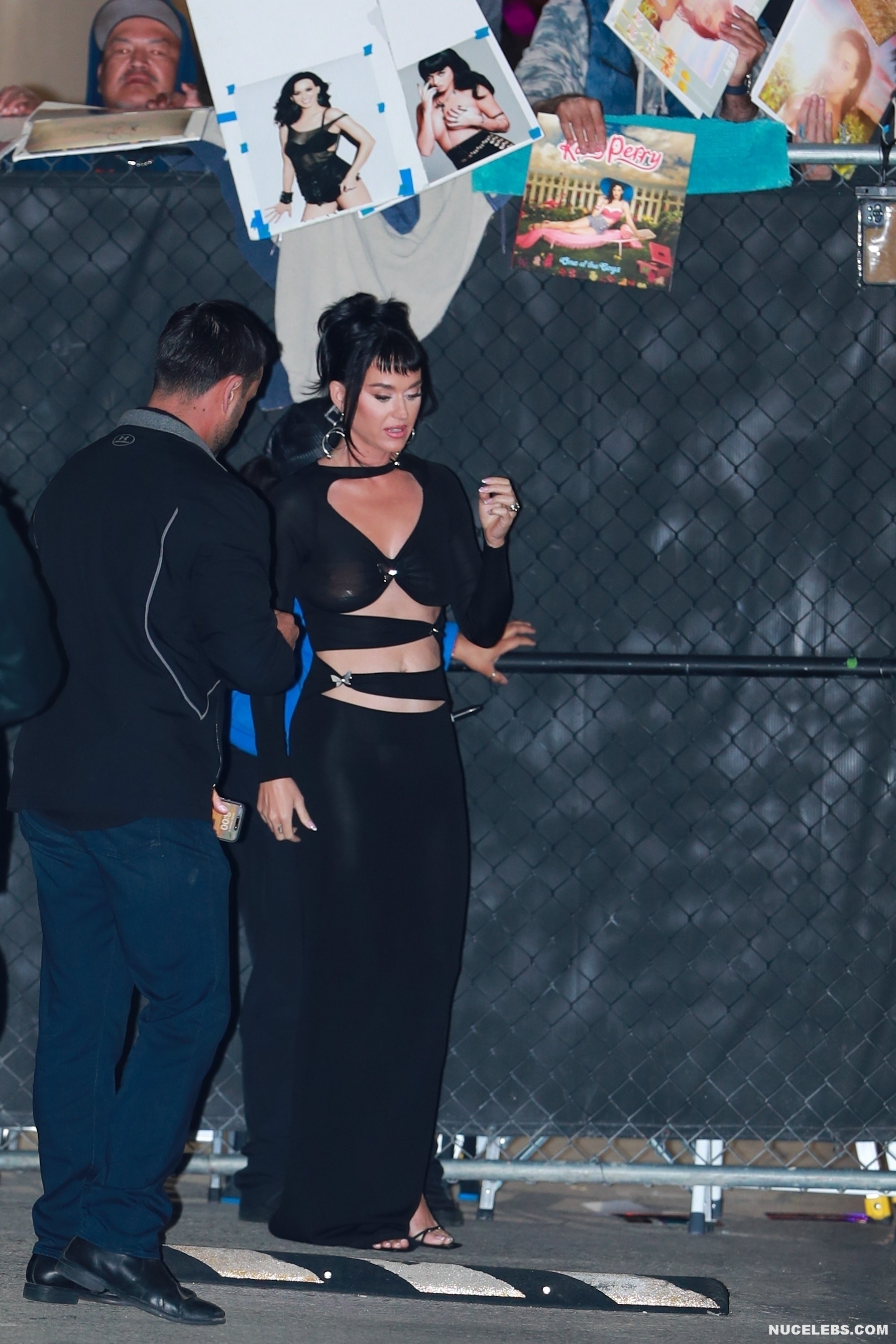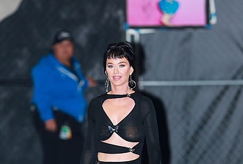 It looks like Katy Perry wasn’t going to flash her nude boobs at the event, but it happened anyway. The celebrity appeared there in a tight black dress with seductive cutouts in the front. The dress was quite transparent and the singer decided to cover her nipples with flesh-colored stickers. However, the result was that these stickers, like Katy Perry’s poking nipples, were visible through the fabric and drew even more attention to her person.