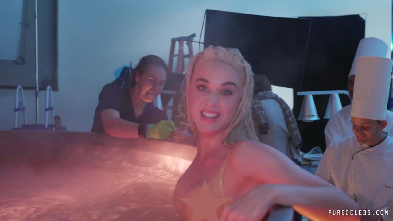 American singer Katy Perry is ready to even appear in the nude clip to attract the attention of the public. In his music video, “Bon Appétit” appears in a transparent body. The girl will lie on the table, decorated with vegetables. Also, this beauty will be worn in her arms and she will bathe in the jacuzzi. No doubt you will be delighted with Katy Perry’s nude boobs and sweet pussy.
