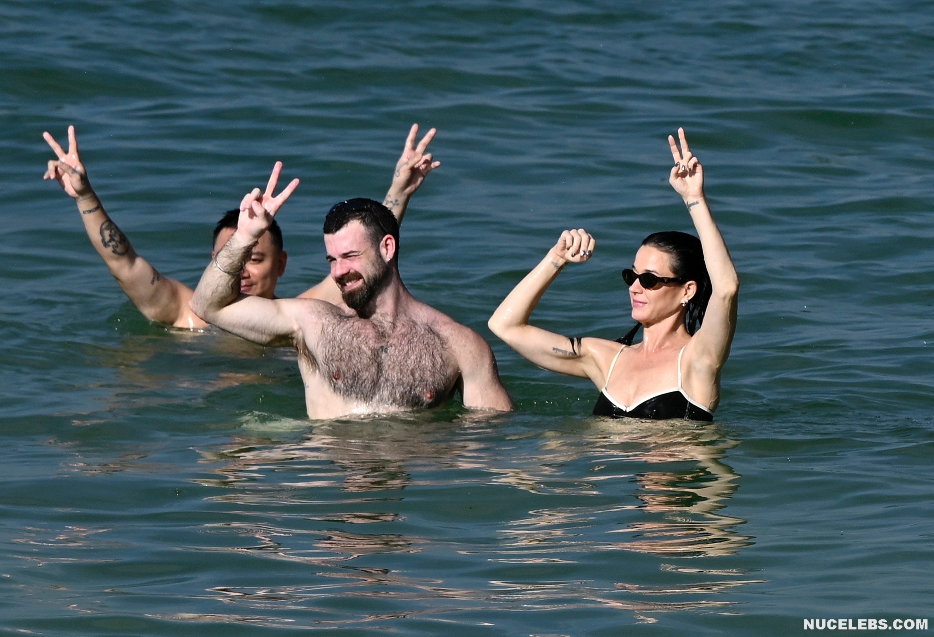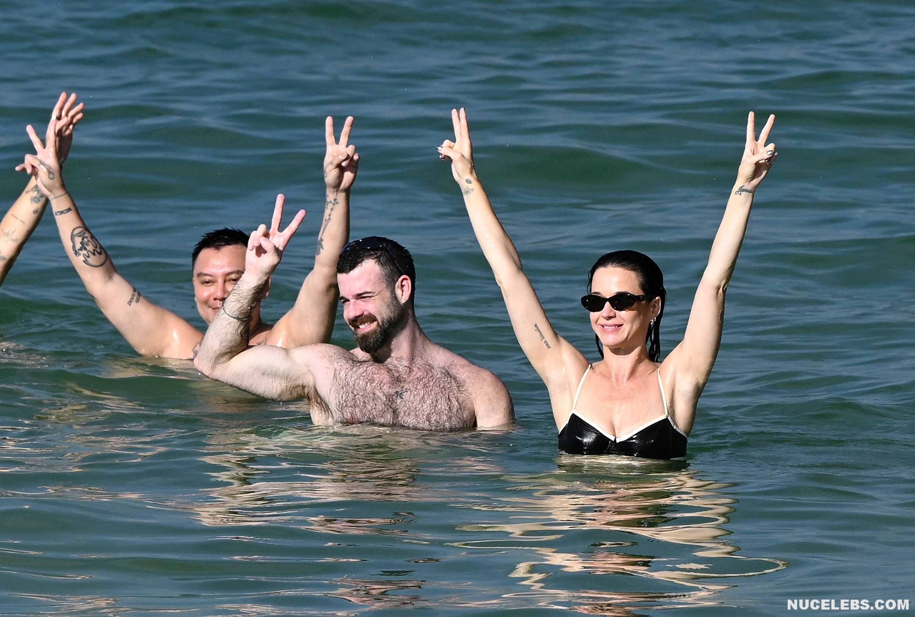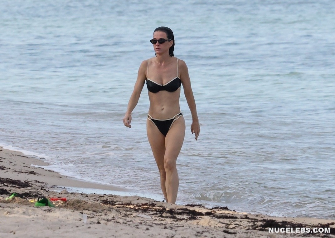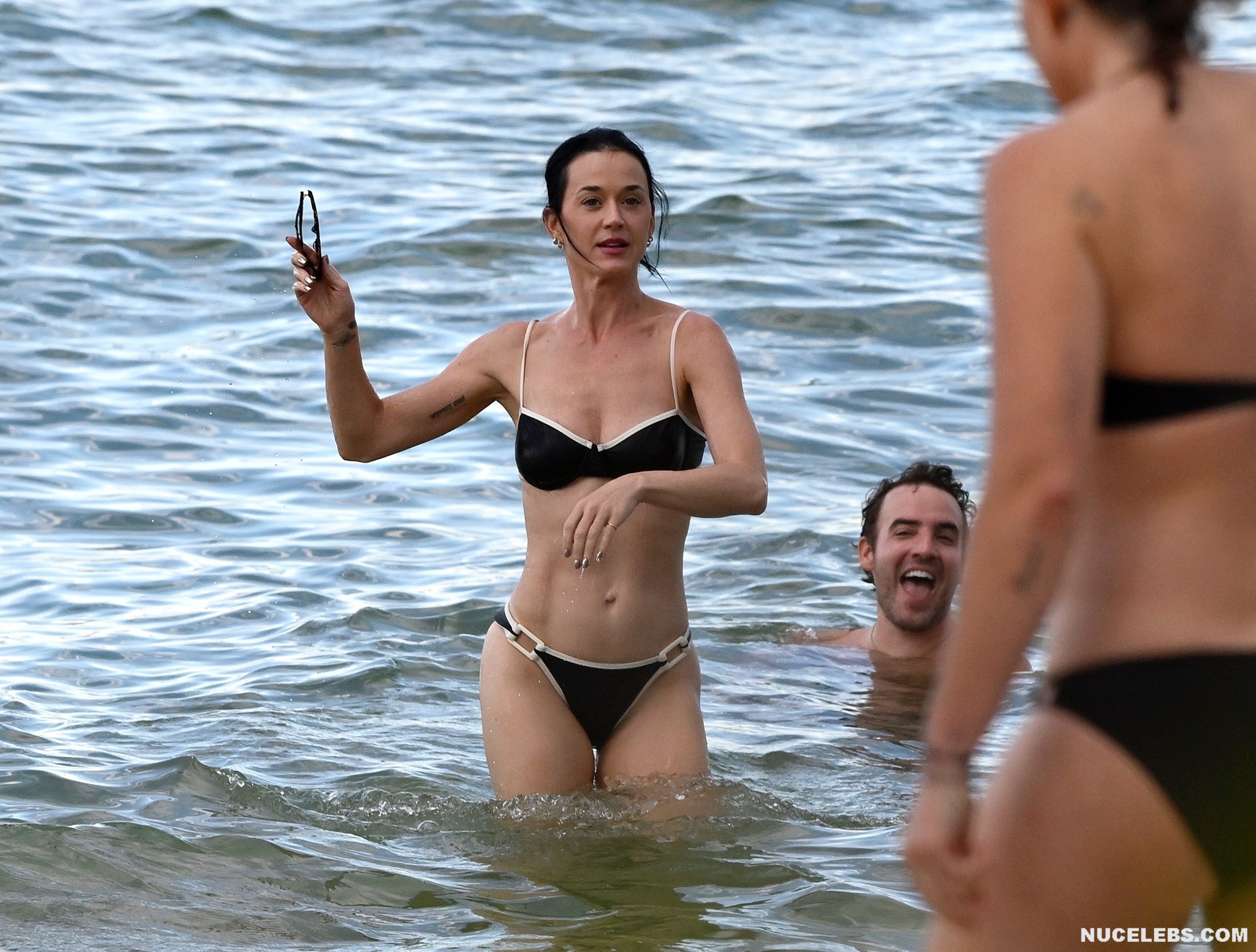 While Katy Perry is being accused of using Ozempic, she is not wasting any time and is showing off her stunning body in a bikini. Katy Perry’s tight butt is on full display for all to see, so we can enjoy this sexy sight to our hearts’ content. The way she spreads her legs makes us think she has a juicy pussy.