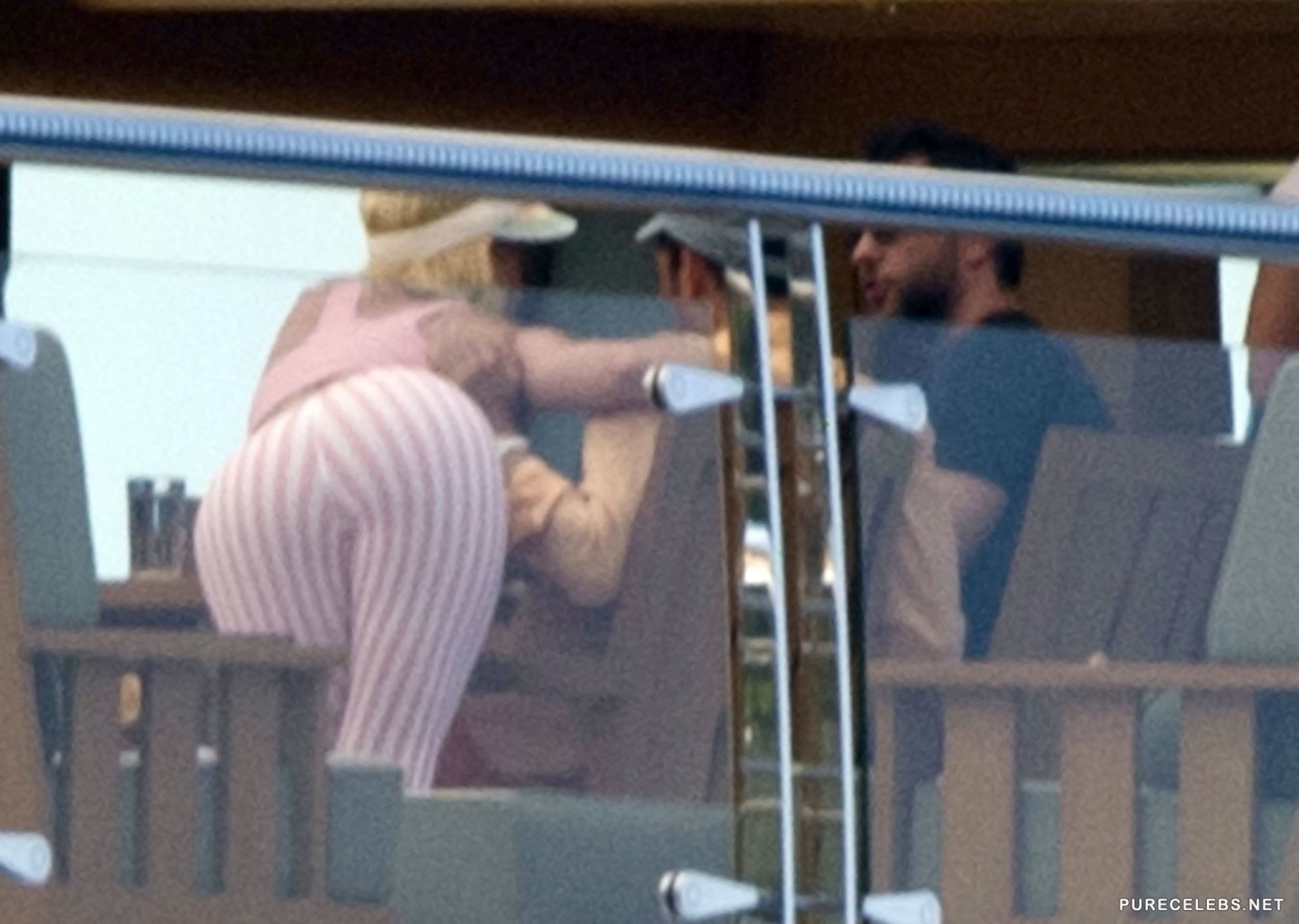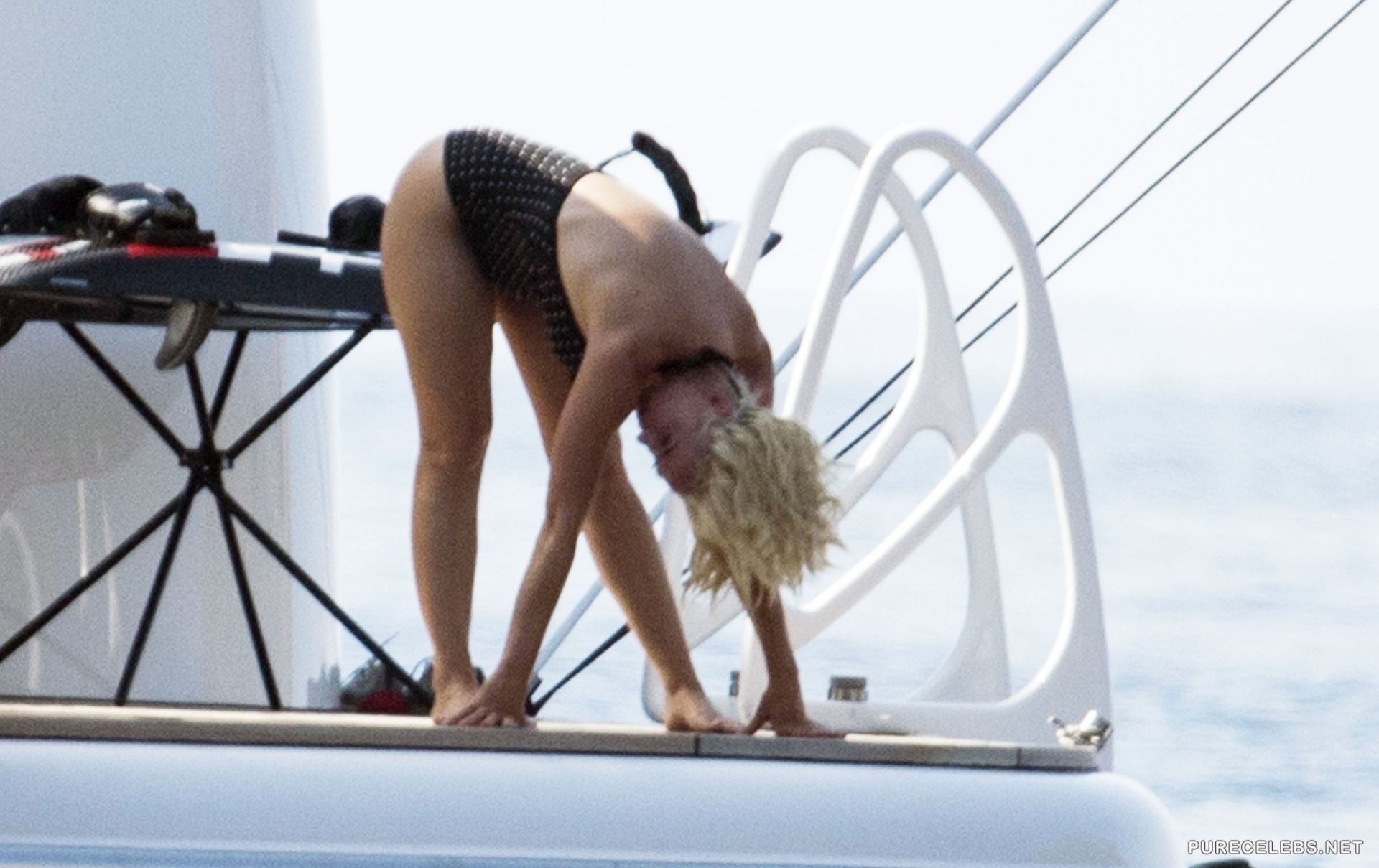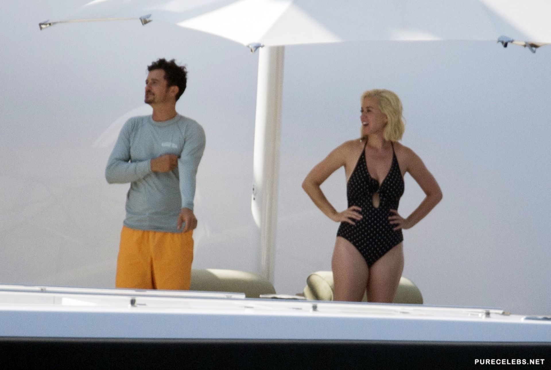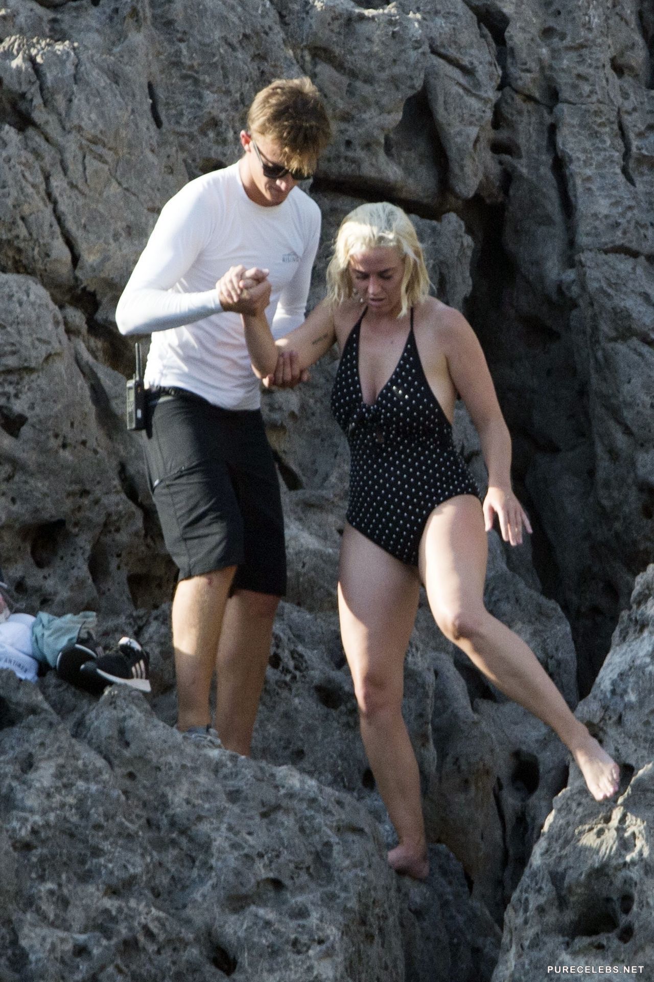 Paparazzi do not cease to monitor the personal life of the American singer Katy Perry, and recently caught her while her rest. Amazing blonde was wearing a black swimsuit with white polka dots, which was very suitable for her. The celebrity looked incredibly seductive in a wet bathing suit, especially her gorgeous booty and awesome titties. You will be delighted with this hot star!