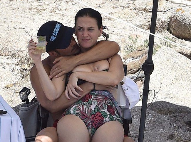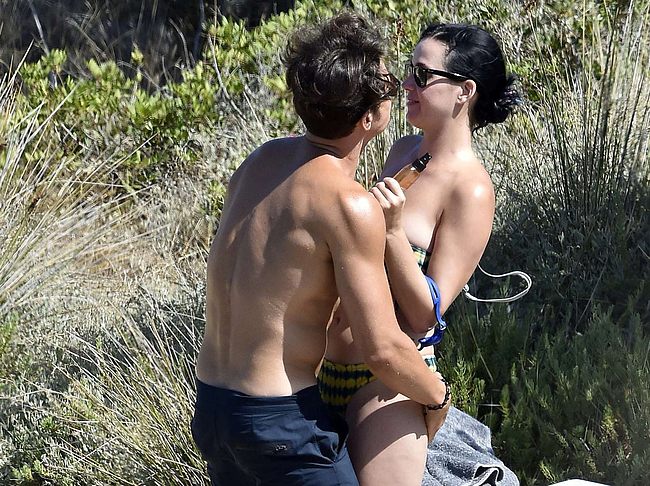 When Katy Perry took this vacation she wasn’t; just taking Orlando Bloom with her. There was a whole score of paparazzi there to take photos like these. They caught this famous singer with Hollywood boyfriend Orlando as they sun bathed and smooched on a beach. Her little bikini brought out her fine figure, her big tits and ass in more than a dozen hot, candid photographs.