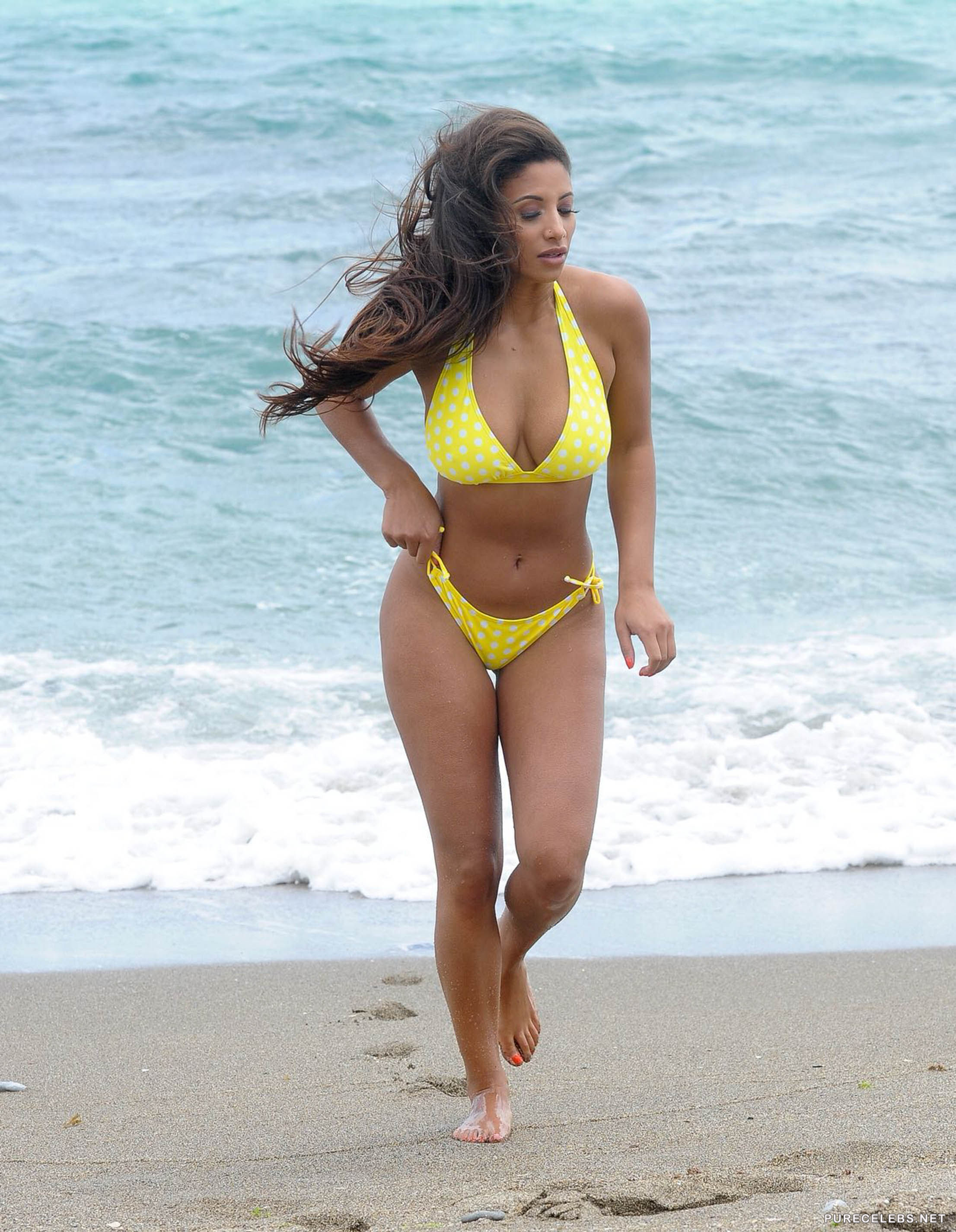 Kayleigh Morris knows that she looks amazing in her yellow spot bikini and she wears it when she goes out to get her skin wet on the beach. She is having a photo shoot there and only her legs are in the water as the waves are splashing against her. She has big natural tits and also a hot ass that is exposed almost fully when she turns around to slap it.
