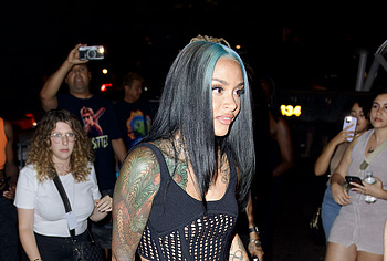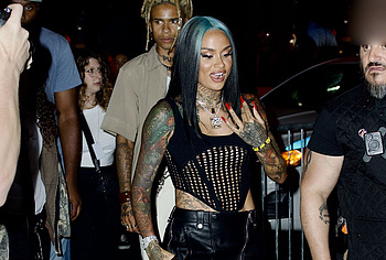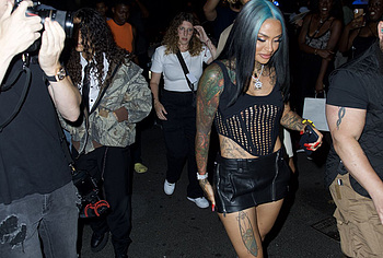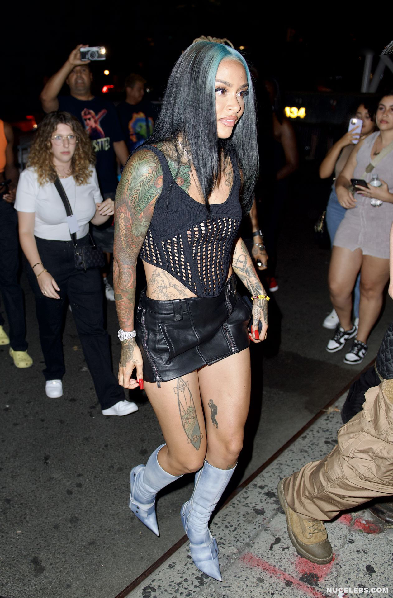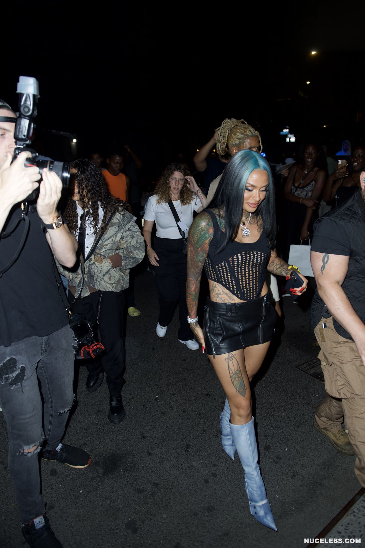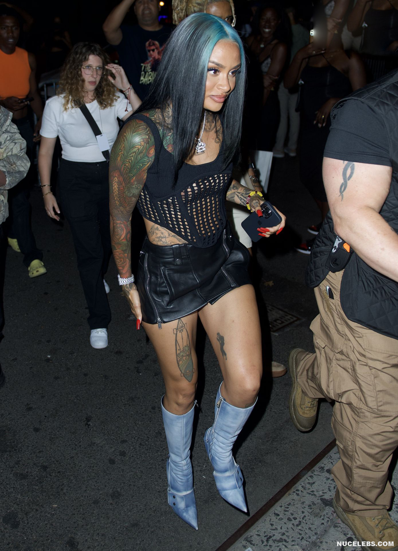 Kehlani was seen at one of the parties in a very provocative outfit. This American singer was dressed in a leather miniskirt, a black top and pointy gray boots. At the same time, Kehlani’s nude boobs with brown nipples showed seductively through the bottom of her mesh top. I wonder if Kehlani accidentally showed her nude tits or was it planned on purpose?