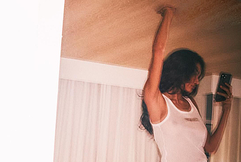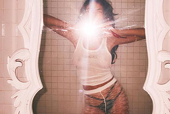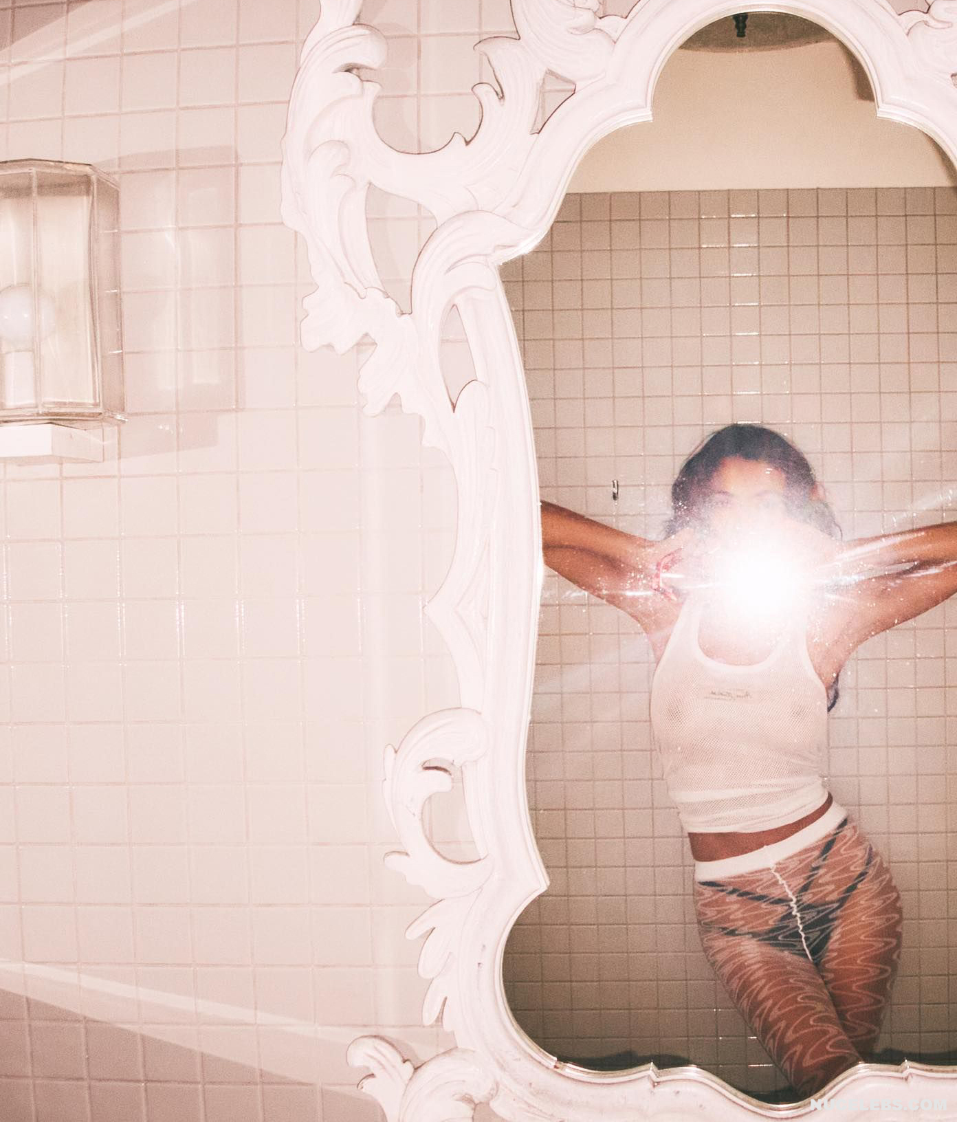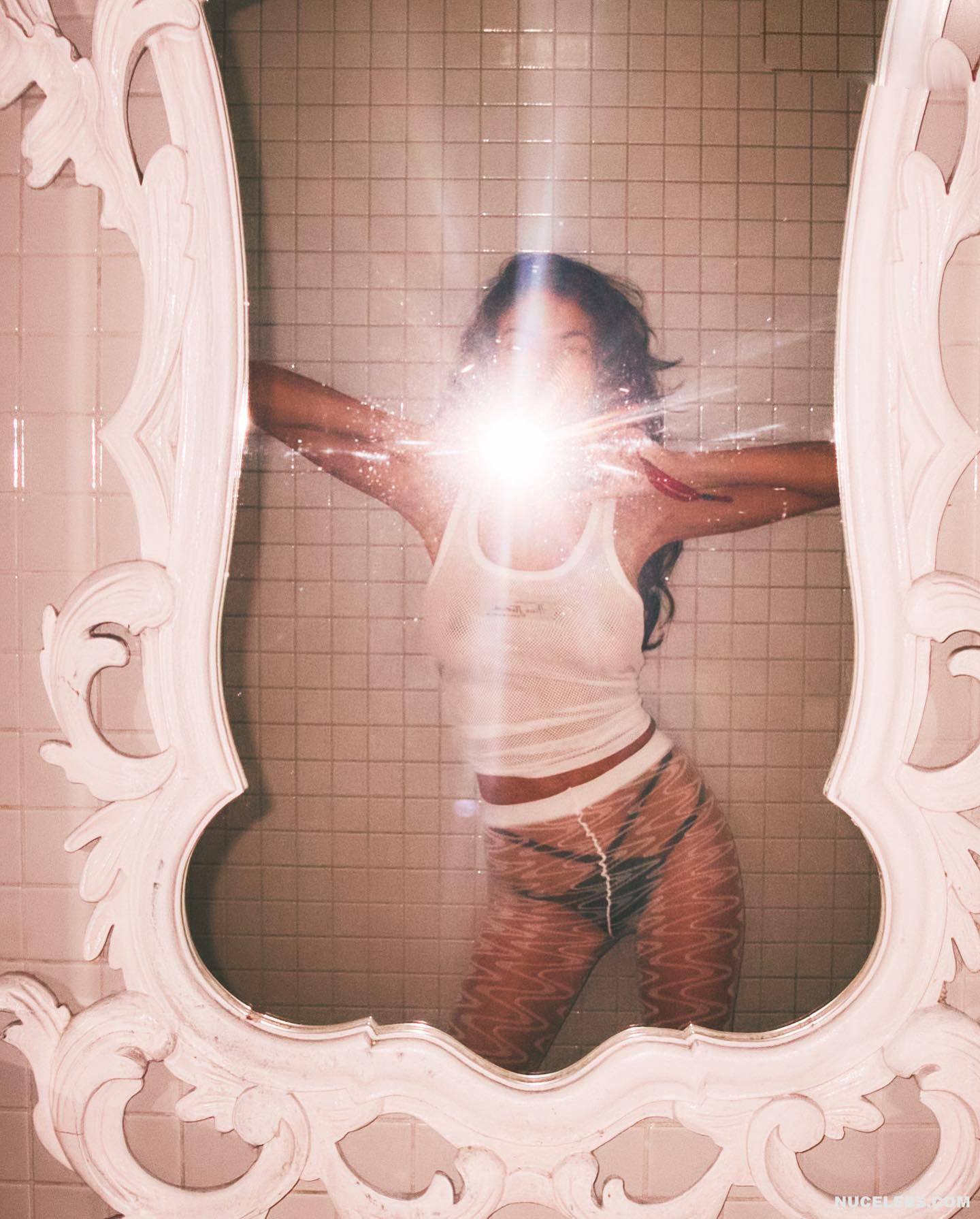 Kelly Gale showed off her nude tits during a selfie shoot! This Swedish model decided to take a lot of photos in front of the mirror, posing in sheer white tights and a top. By the way, this baby was without a bra. Therefore, Kelly Gale’s nude tits with brown nipples were visible through the thin fabric when they were illuminated by the flash of the phone. Apparently, this celebrity really wants to seduce someone!