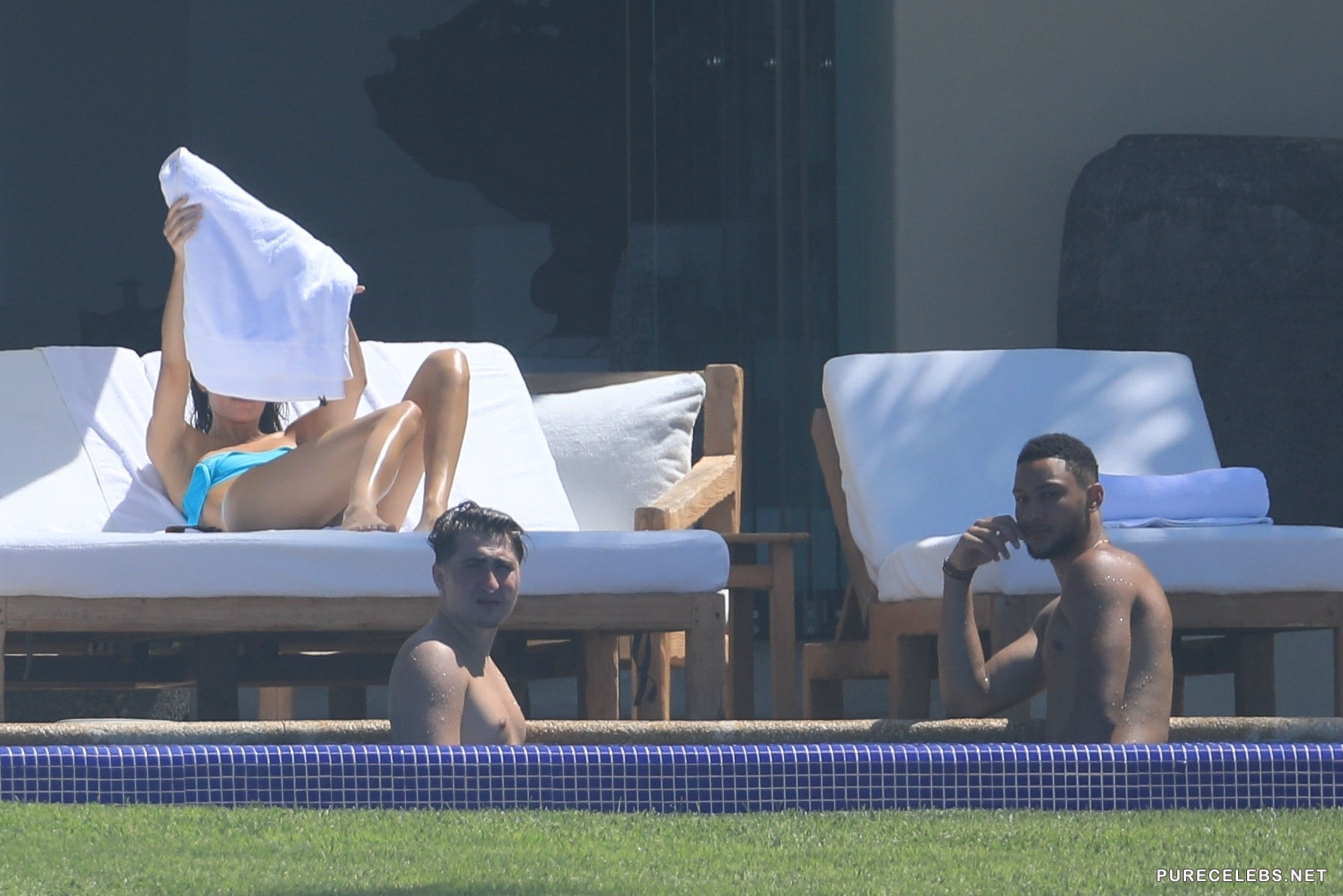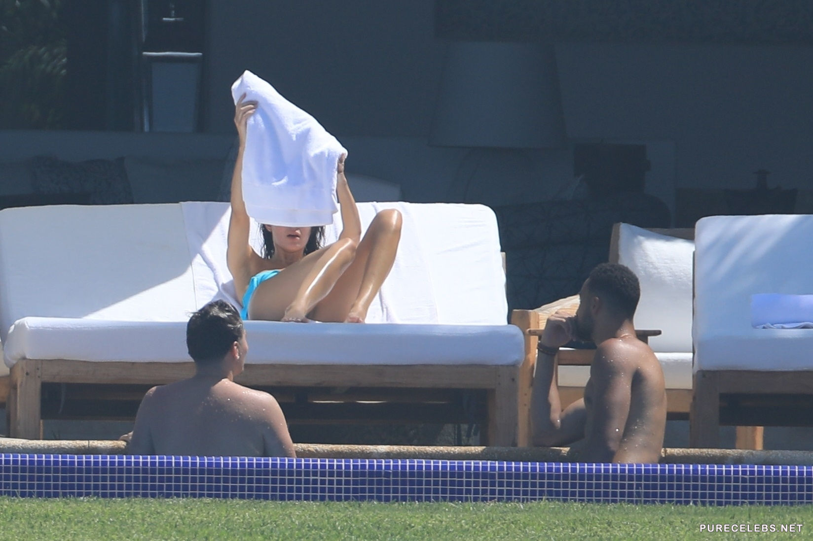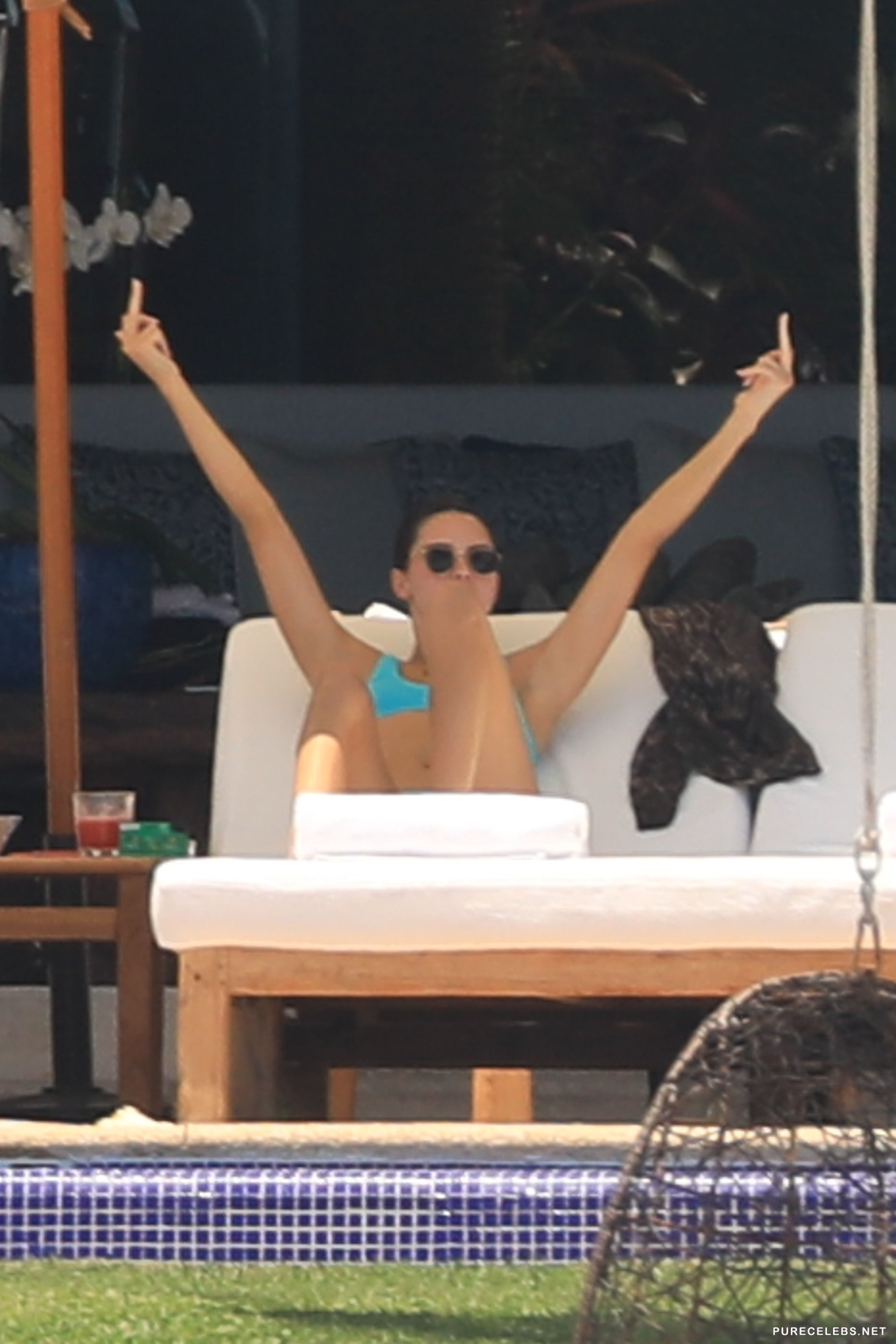 Either Kendal Jenner was shy on that day, or she was told off by hotel staff, but although she decided to put on the tiniest bikini she had, for the sunbathing time, she did not take off the top, but the straps had to be removed. What is this, Kendall? Aren’t you the queen of scandals and the one who is not shy to show tits? Why aren’t you topless?