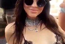 Hot little brunette model and reality TV star Kendall Jenner wants a piece of the action so she followed the lead of her mentor Kim Kardashian. Shown in these photos, this teenage beauty loves appearing in public wearing see through tops that show off her little tits, but isn’t afraid to put on skimpy outfits and lingerie for modeling work either. We can only hope that she loses a sex-tape in the near future.