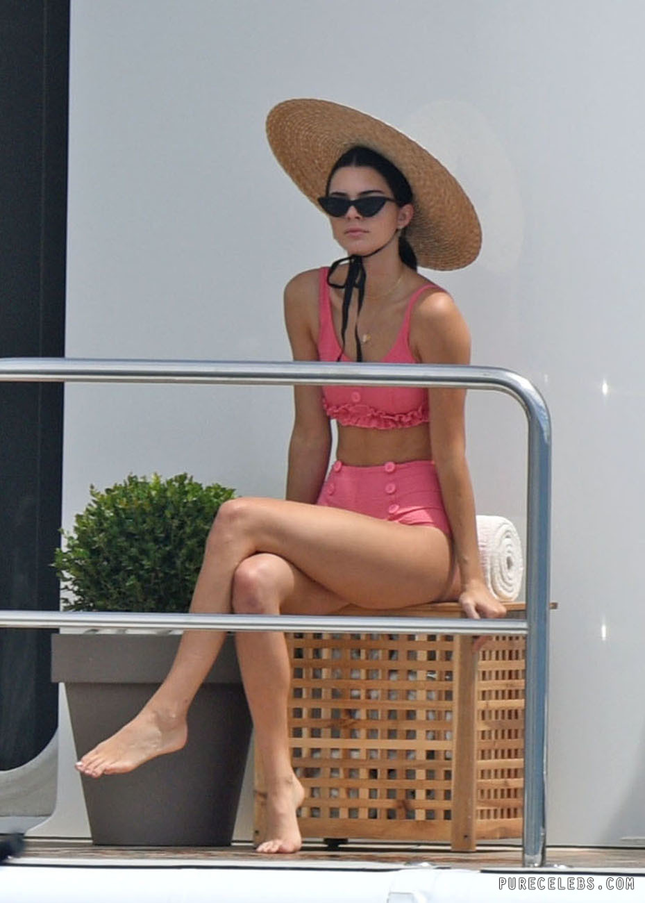 Kendall Jenner is always under the scrutiny of the paparazzi. So they caught this beauty during her vacation on a yacht. Well, maybe this is not a nude picture of Kendall Jenner, but nonetheless very hot! The celebrity looked stunning in her pink bikini. Pink high-rise panties accentuated her beautiful hips. And when the brunette got wet in the shower, one could see her poking nipples through the pink bra.