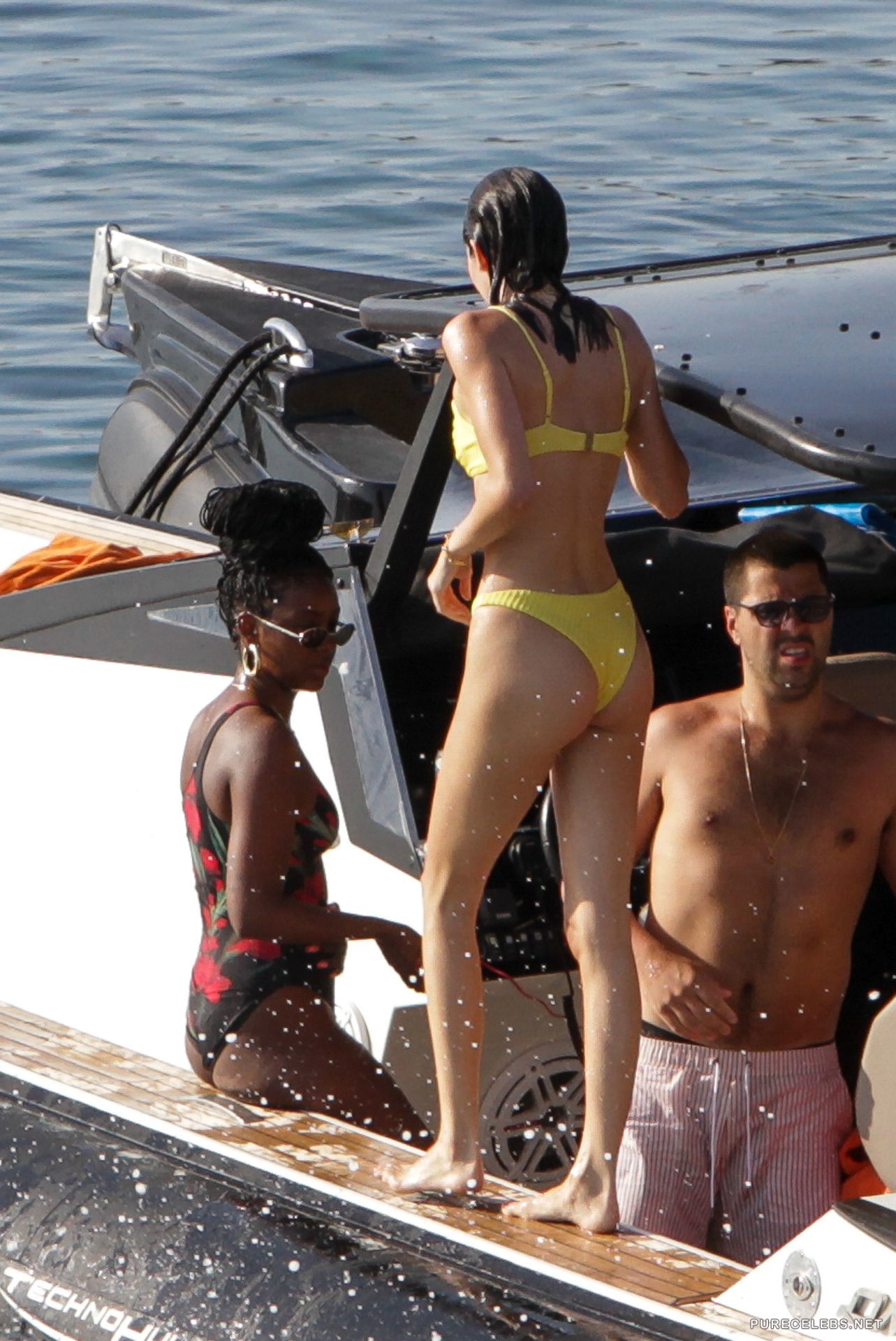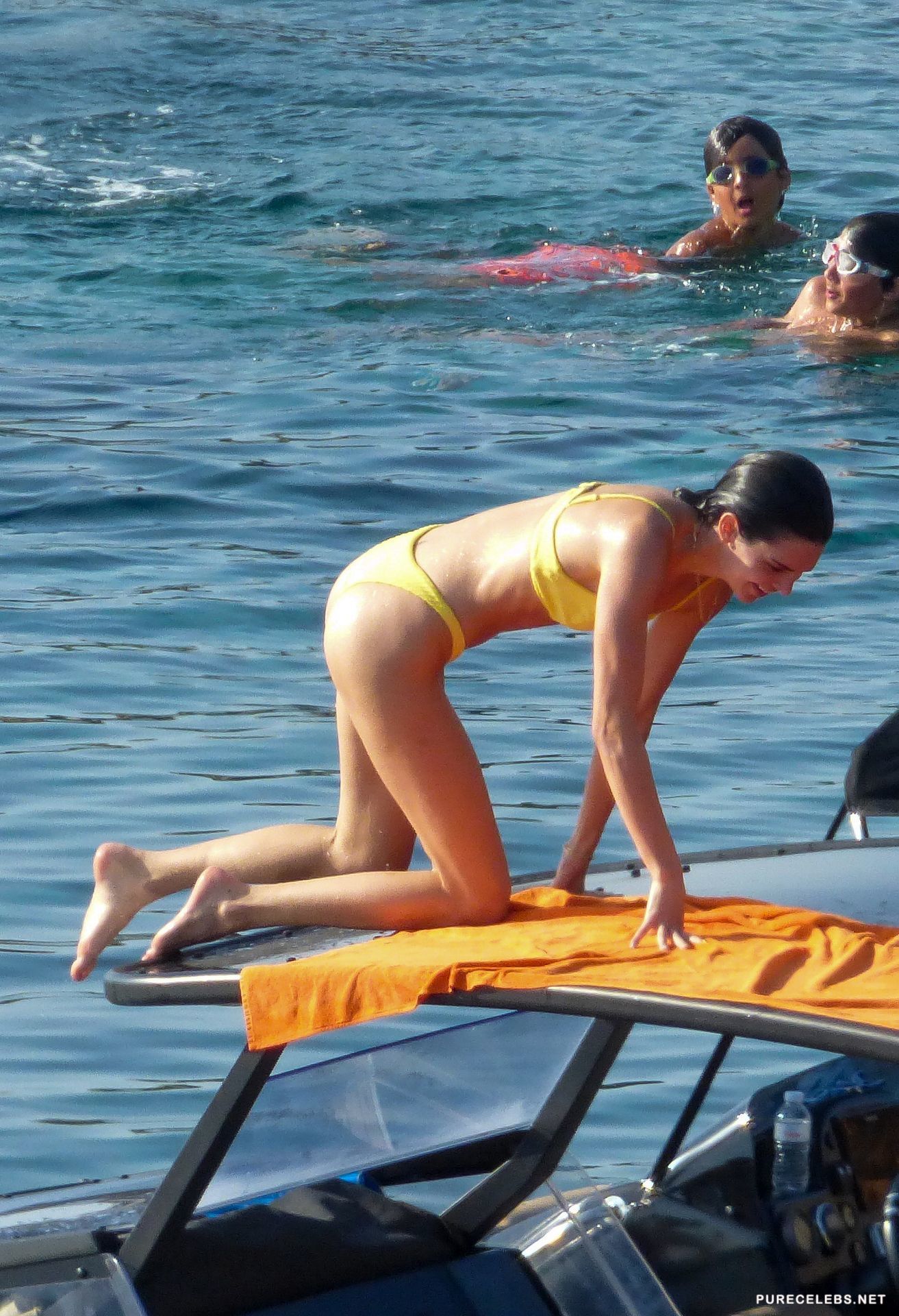 Amazing model Kendall Jenner drives everyone crazy when she takes off her clothes and stays in a small bikini. Recently, this beauty had a great time on the beach, swimming and sunbathing, and all the attention was exactly on her. The girl looked incredibly sexy in a white tight bikini, which emphasized the beauty of her juicy boobs, her delicious buttocks, and also opened her small flat tummy with a narrow waist.