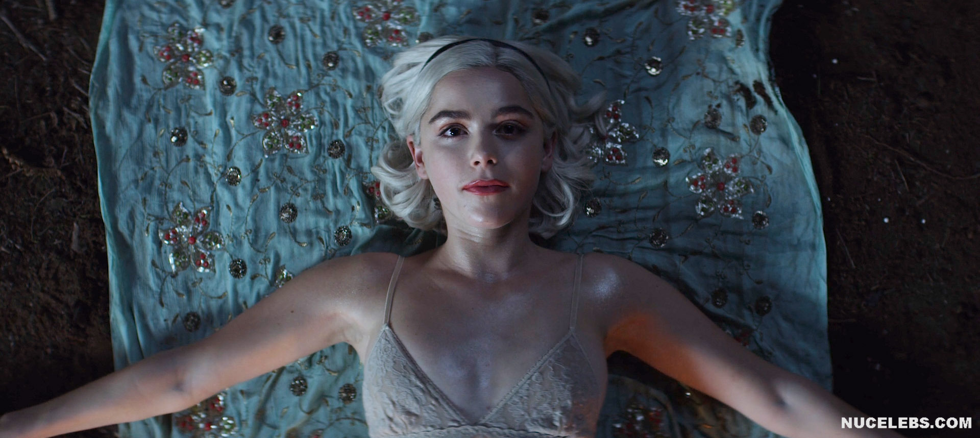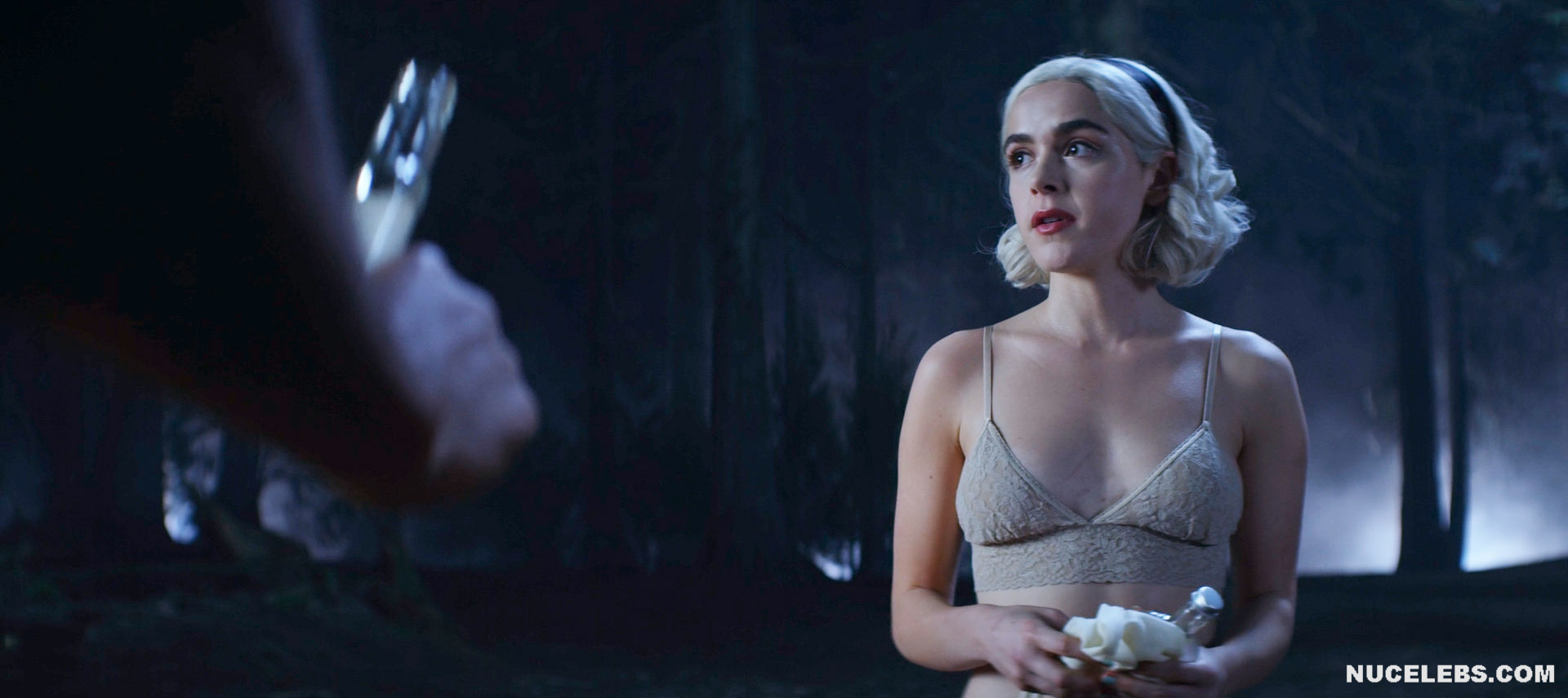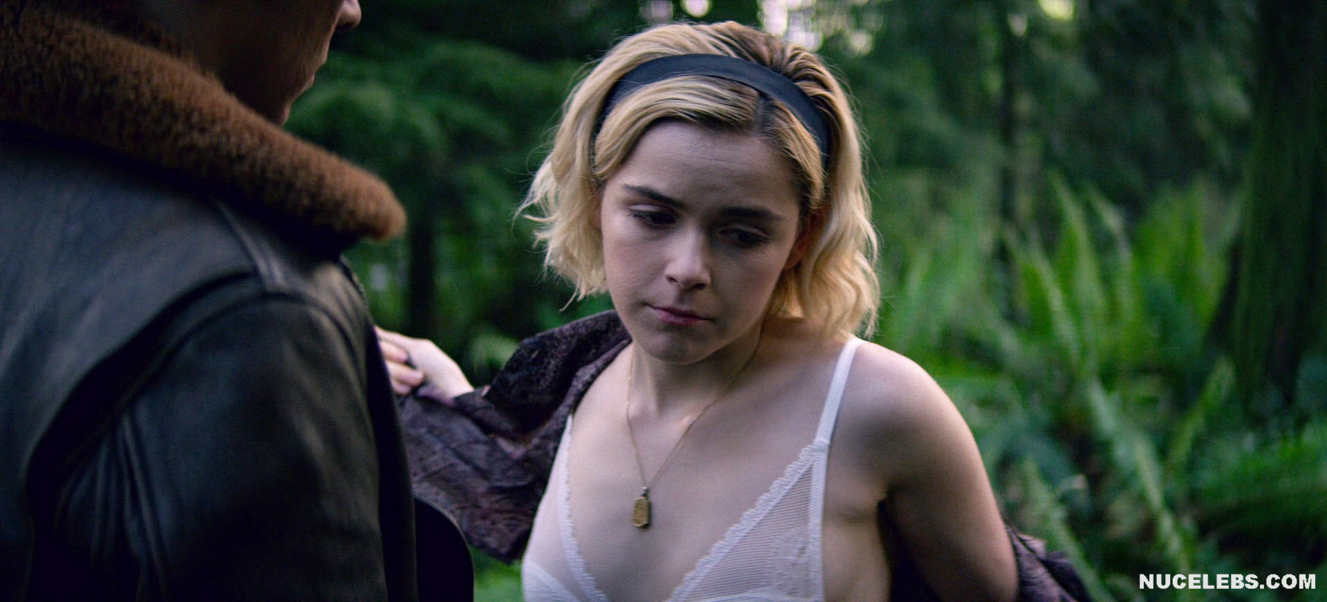 Kiernan Shipka loves to show off her almost nude awesome titties in skimpy outfits. So, this American actress looked amazing in a short black lace dress while sitting on the bed. At the same time, Kiernan Shipka almost jumped out of the low neckline, and her white panties also peeked out from under the dress. Also, this celebrity showed off her boobs with poking nipples in a white lace bra in other pics.