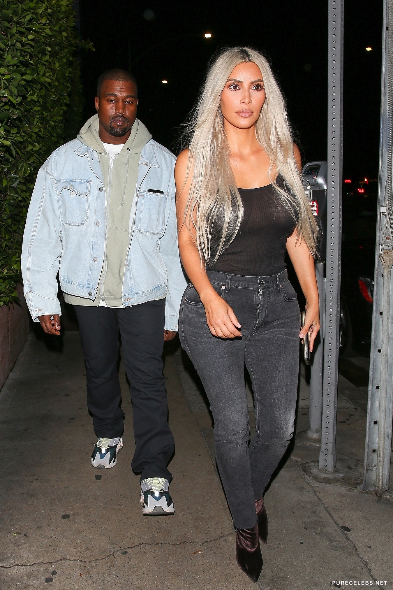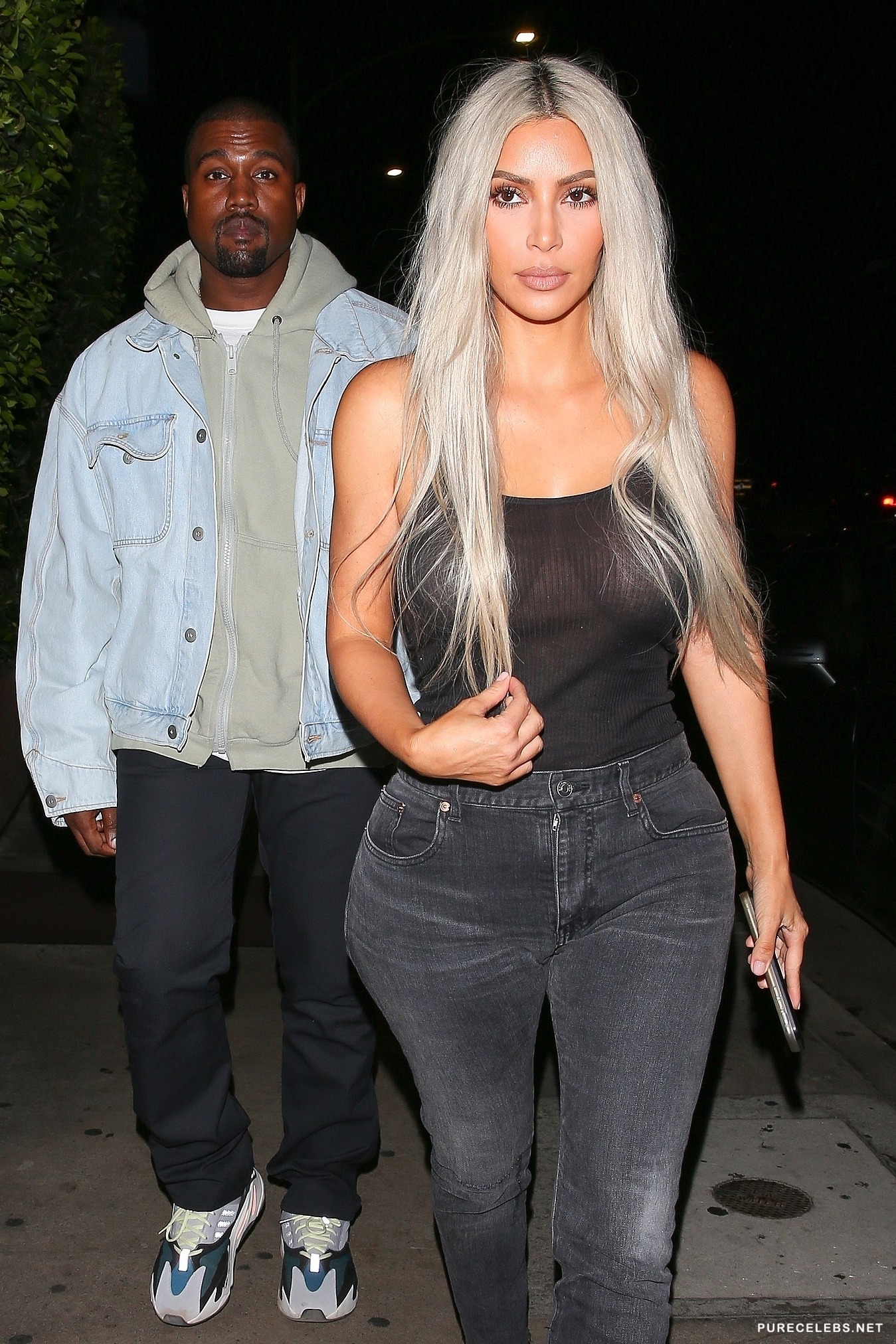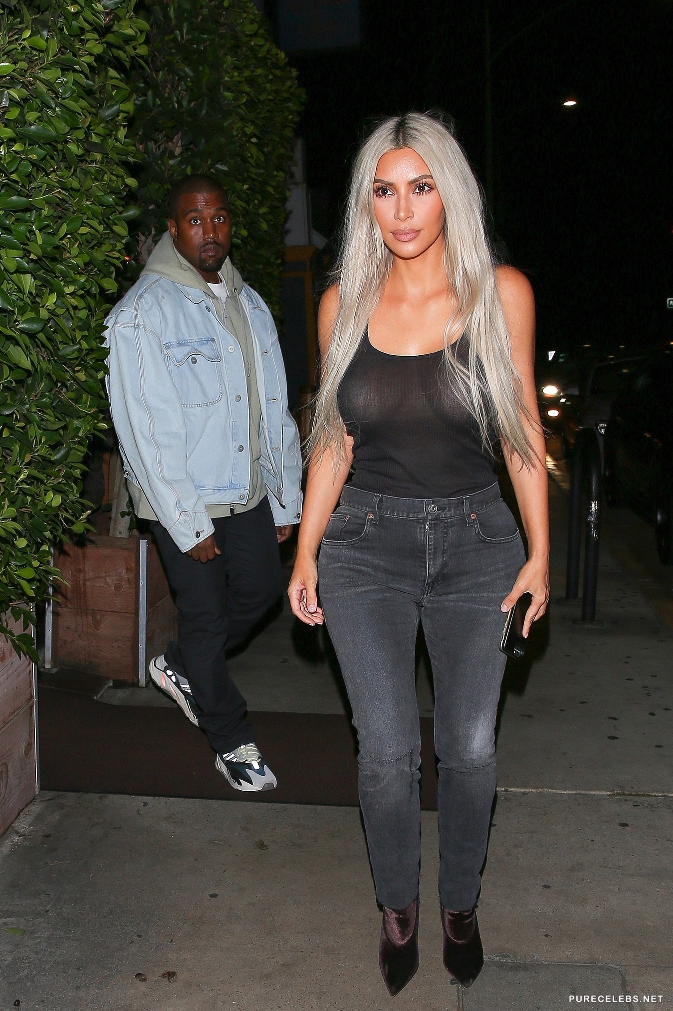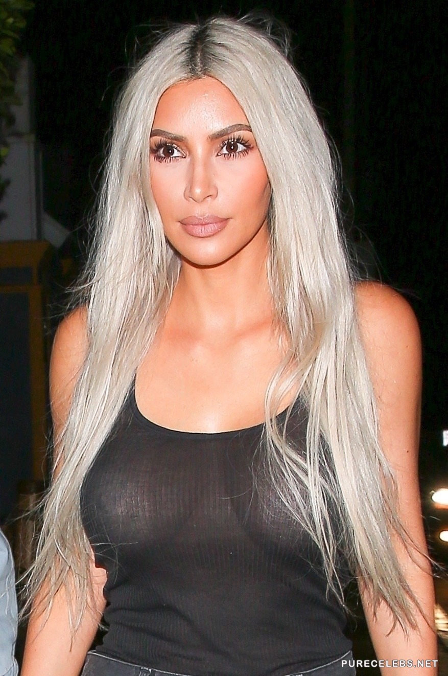 Kim Kardashian is world famous for her reality TV show and leaked sex tape. This time she was photographed by paparazzi while walking with her husband rapper Kanye West. The busty blond opted to free her huge tits and wear only a sheer black tank top. Her large heavenly nipples met with camera flashes to provide viewers with an exciting show of her plump boobs.