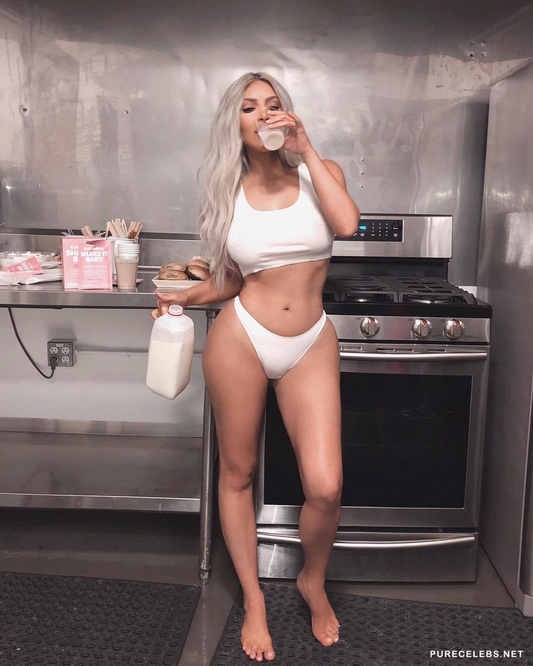 Kim Kardashian is at it again. She is an American reality television personality with tens of millions followers on social media. Here we see why. Half nude in bed, all horny with wet pussy, ready to give it all. She is already groping her own big jugs, as she puts out her ass to take it in real hard just as she like it, and then she is ready to give a good blowjob and tit-job with those huge melons.