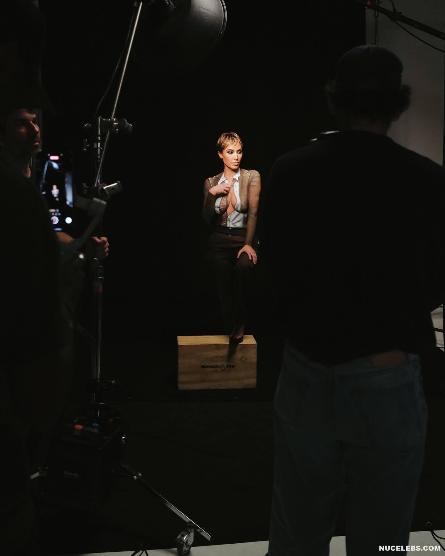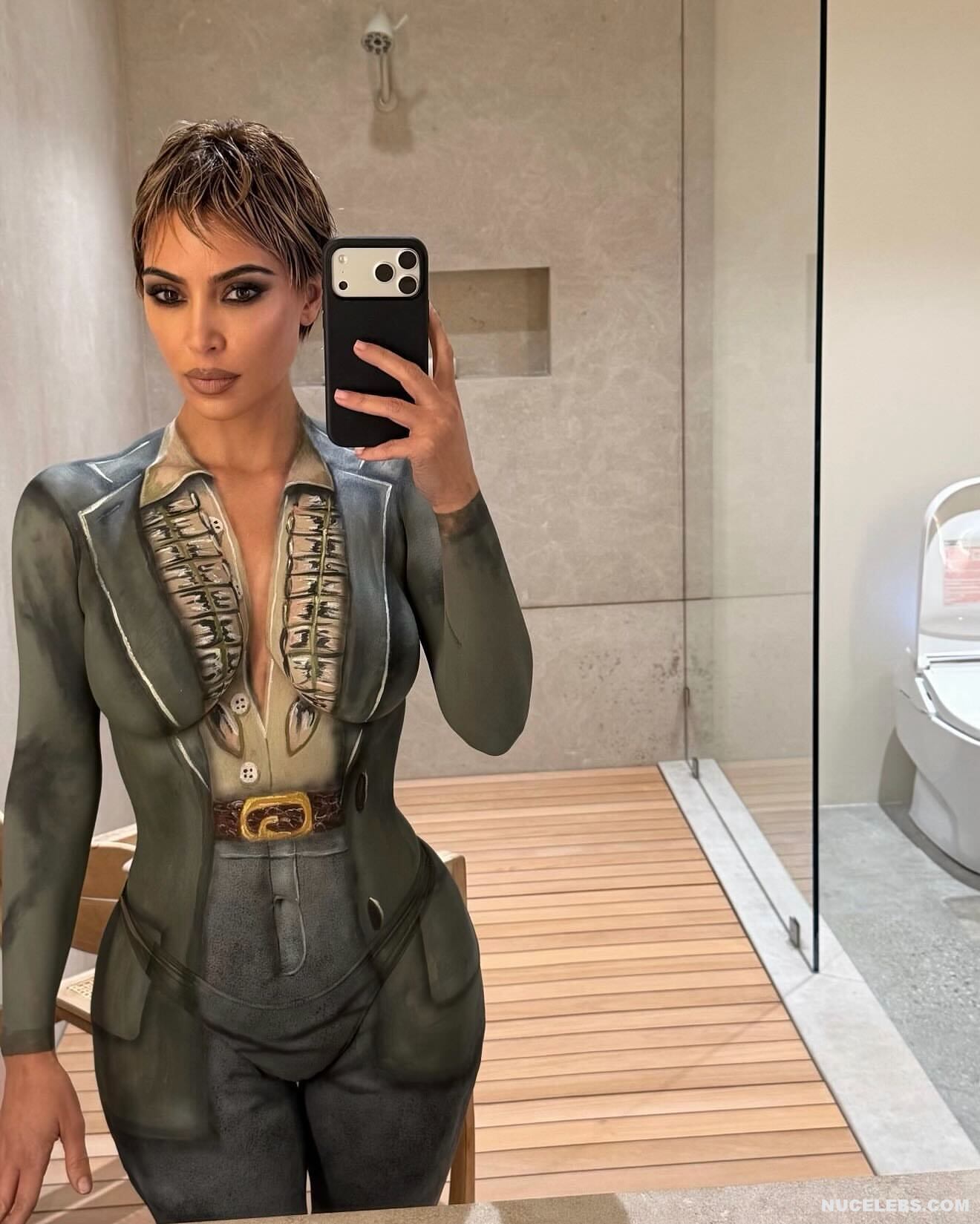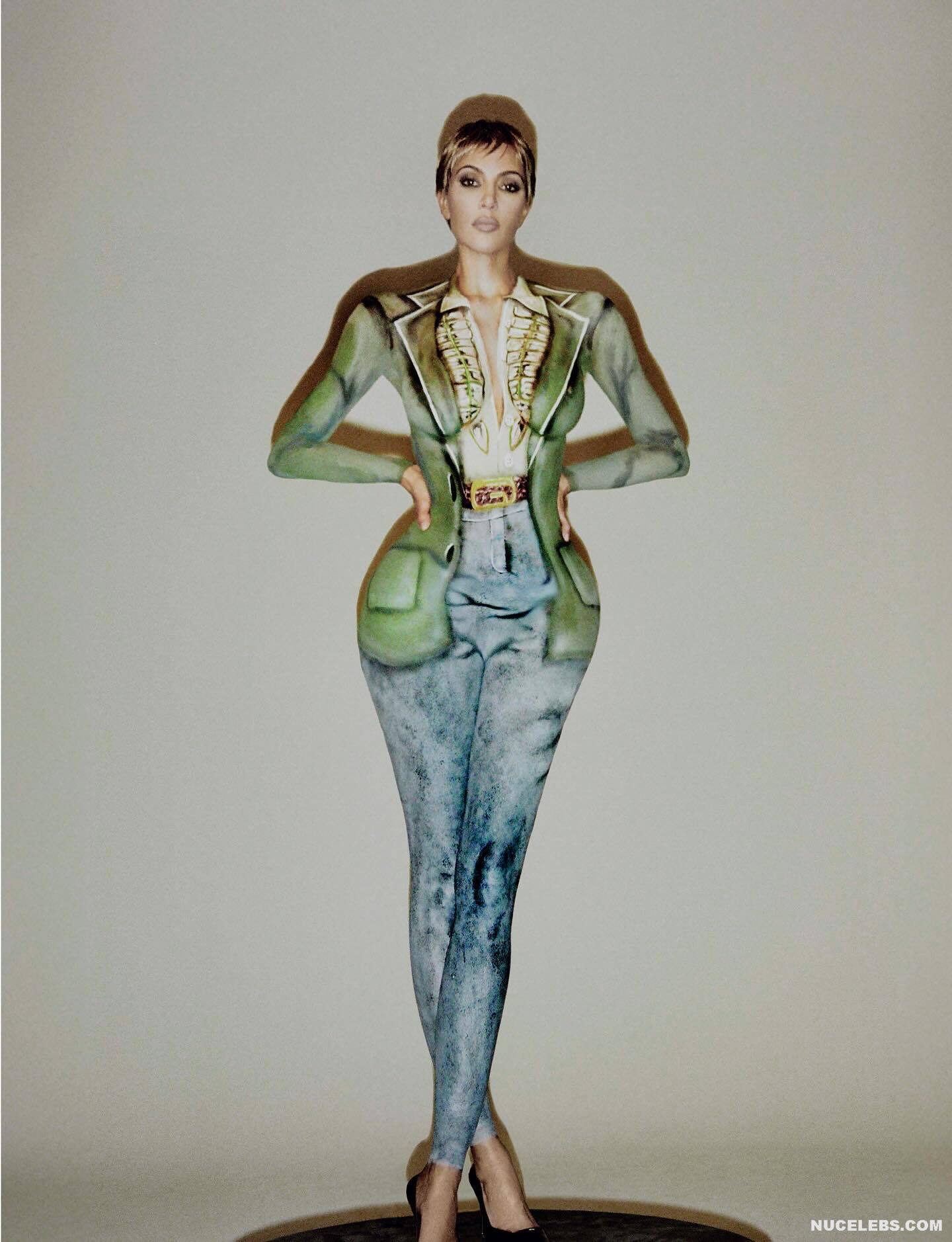 Don’t miss Kim Kardashian naked tits! During the photo shoot, Kim decided not to wear the top part of her outfit and just do her makeup. As you can see, it was obvious that something was missing. We can enjoy not only Kim Kardashian boobs, but also her erect nipples, which gave away her idea with the makeup.
