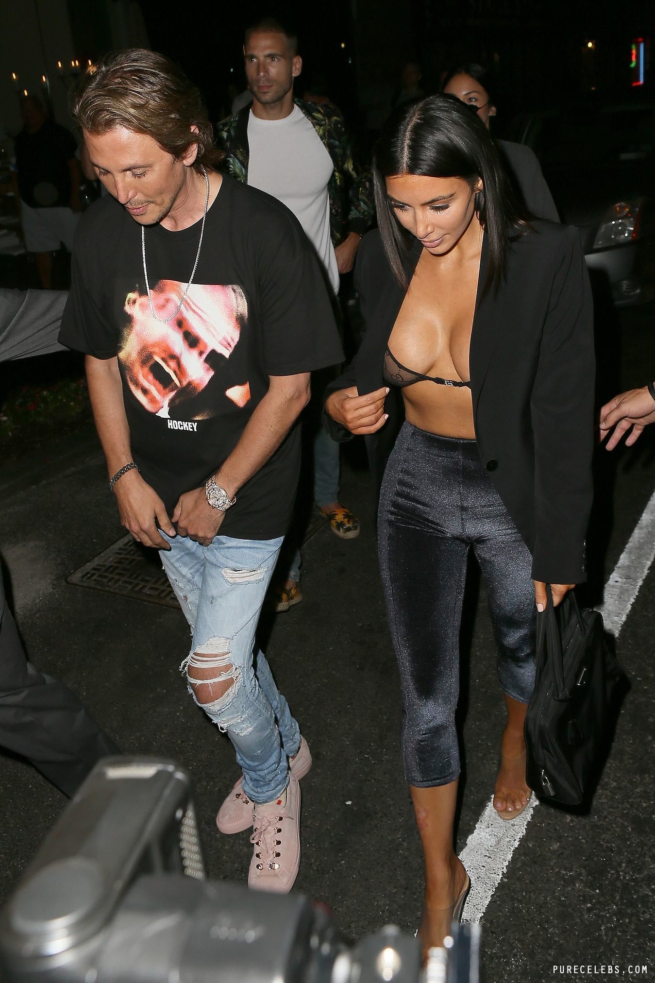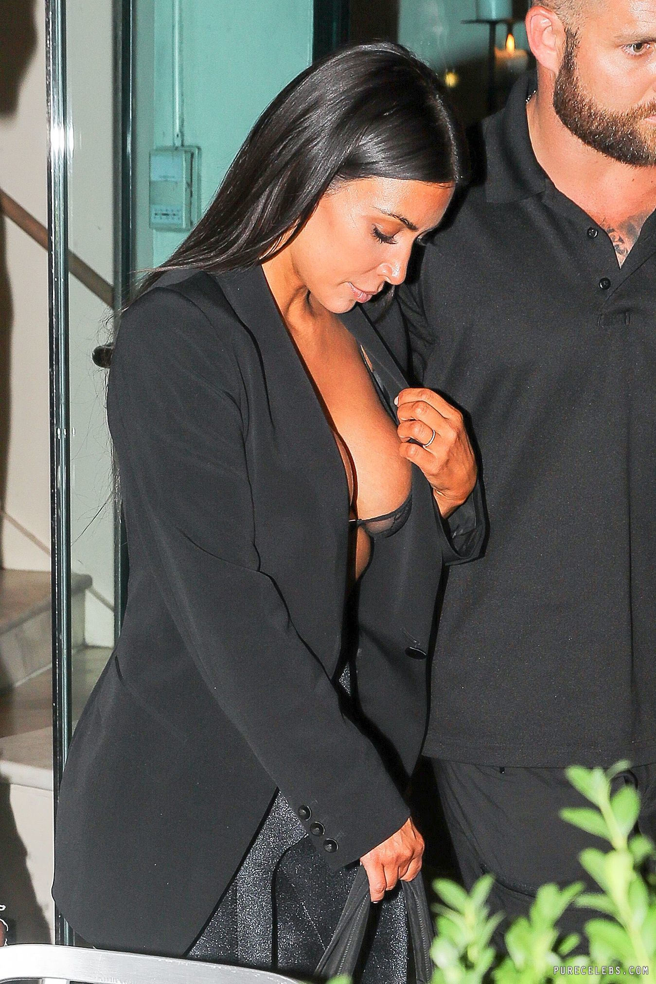 American TV star Kim Kardashian once again helped paparazzi take her very sexy non nude pictures. The celebrity appeared at one of the events in an unbuttoned black jacket, under which a transparent bra was dressed. Wow, Kim Kardashian’s juicy titties looked so hot and seductive, and it seemed like they were completely nude.