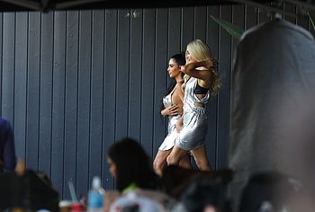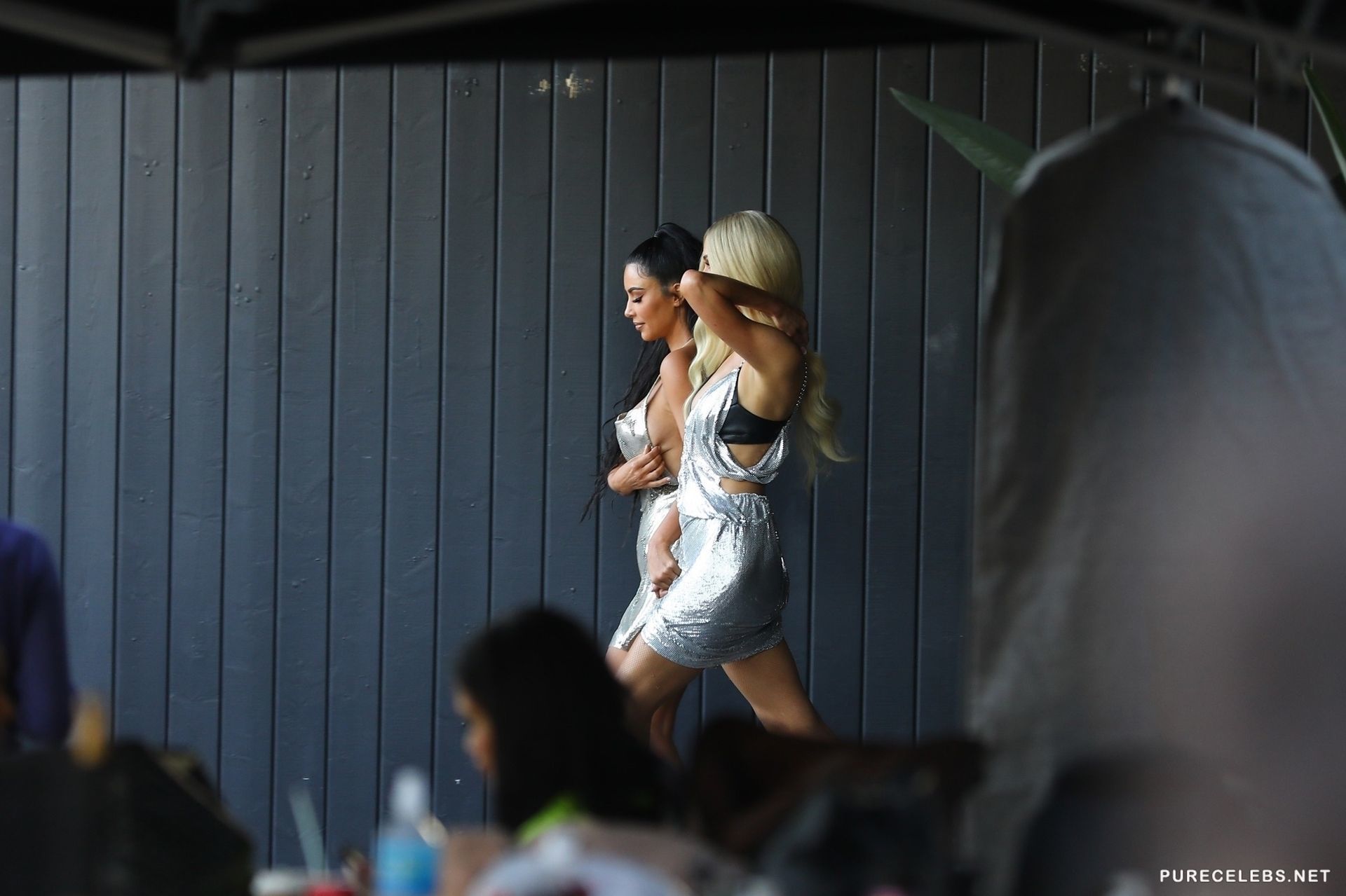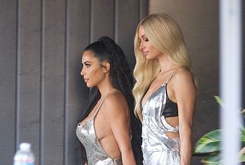 Famous socialites Kim Kardashian and Paris Hilton were caught by the paparazzi when they arrived at event in very extravagant outfits. The beauties were dressed in unusual silver dresses which perfectly demonstrated their wonderful figures. Hilton’s tits looked just stunning as well as gorgeous ass of Kim, it is therefore not surprising that all camera lenses were aimed at them.