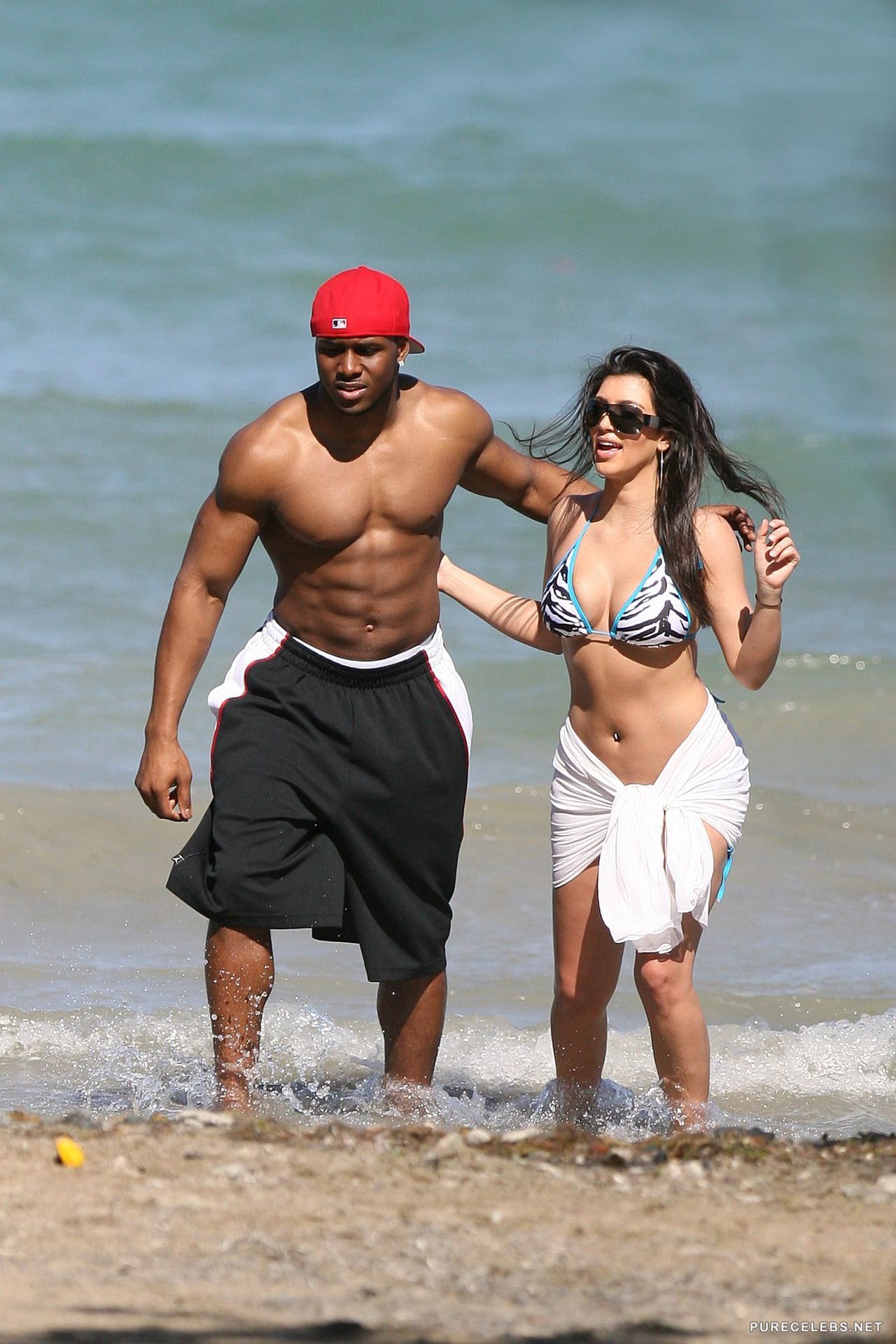 Well known brunette, Kim Kardashian revealed her curves in an animal printed bikini with blue stripes, while having a day on the beach, enjoying with friends and obviously being very happy. This big ass honey likes to parade her ample assets and lets be honest, people like it, no one can easily look away as she walks by and paparazzi go crazy with taking photos, when they spot her around.