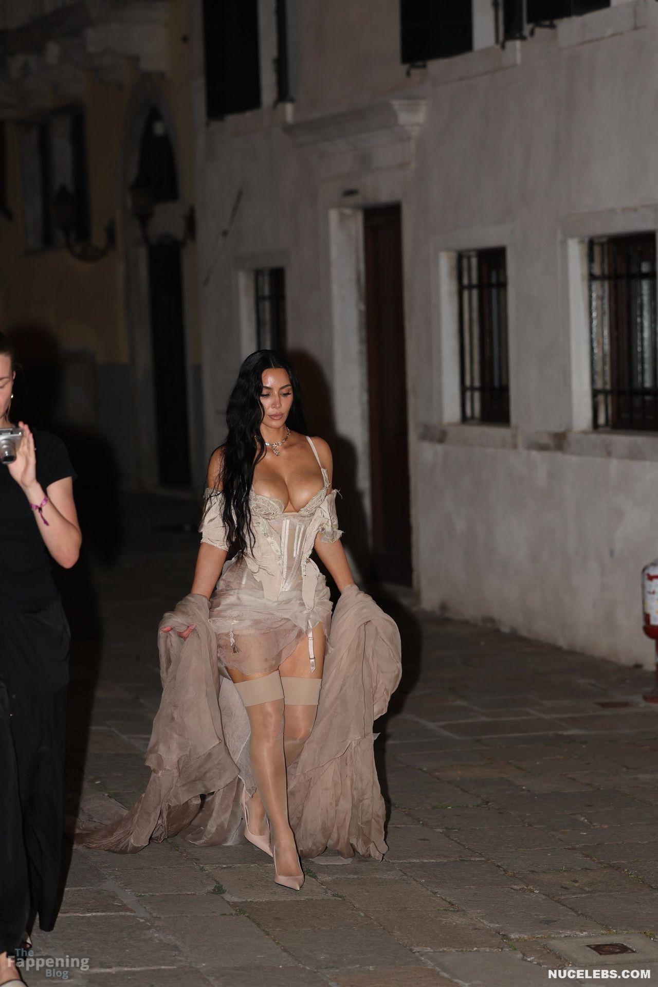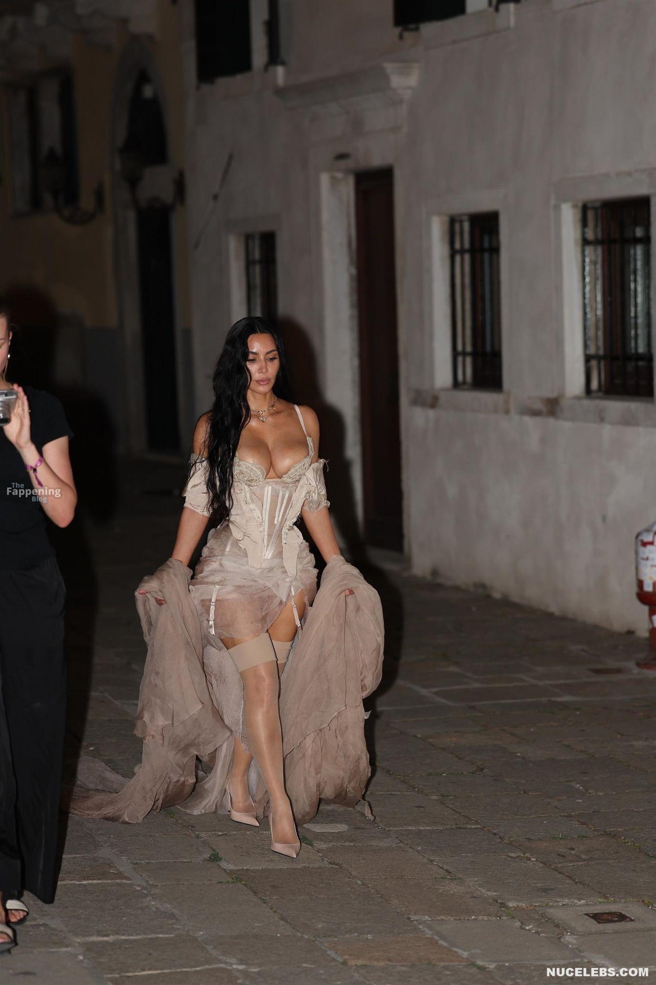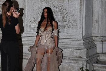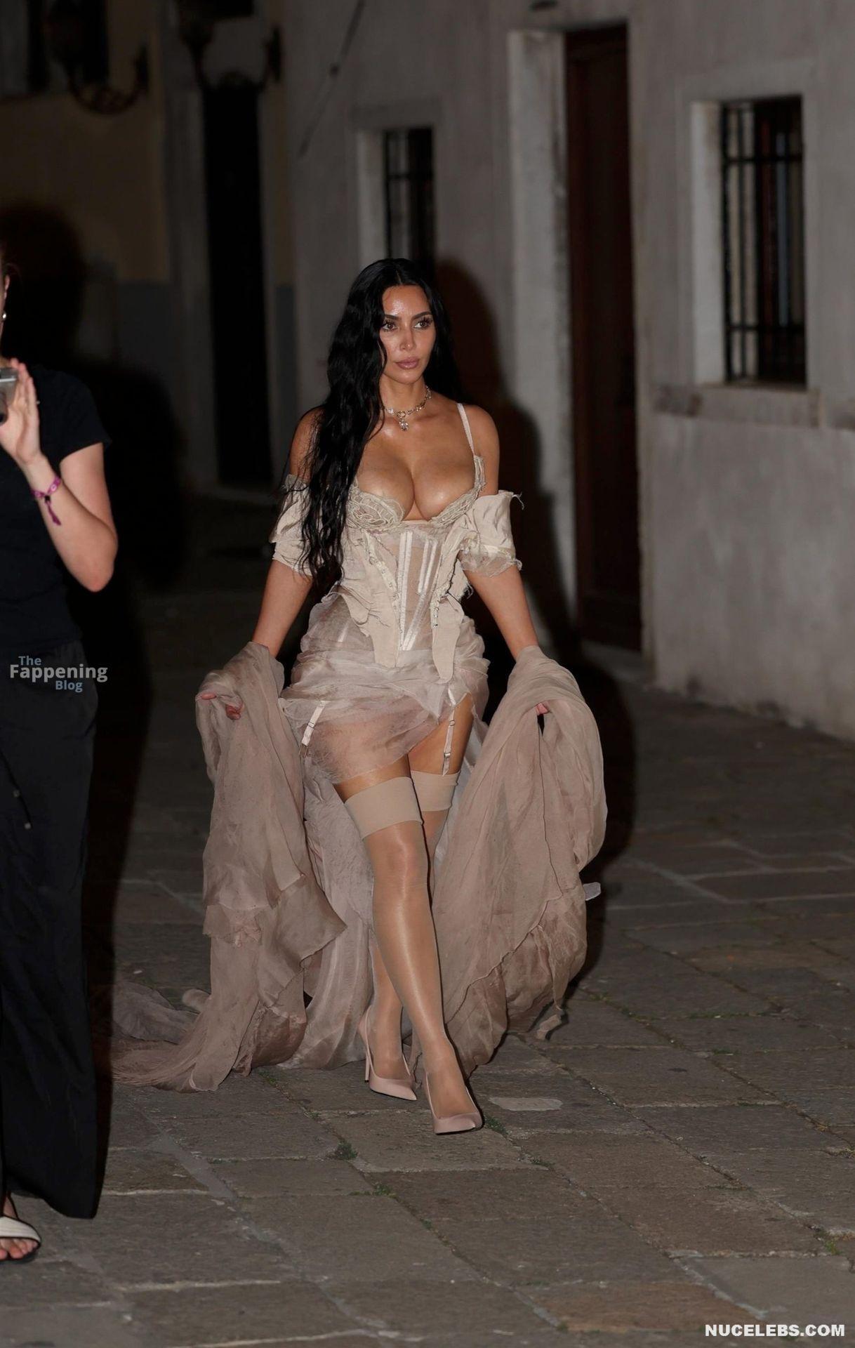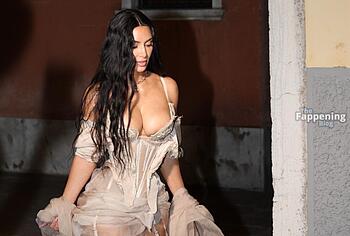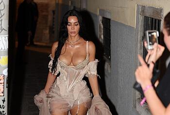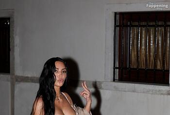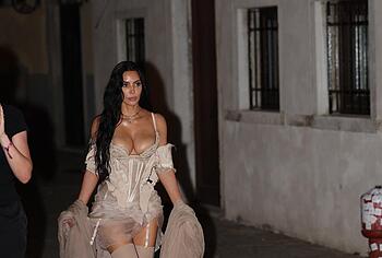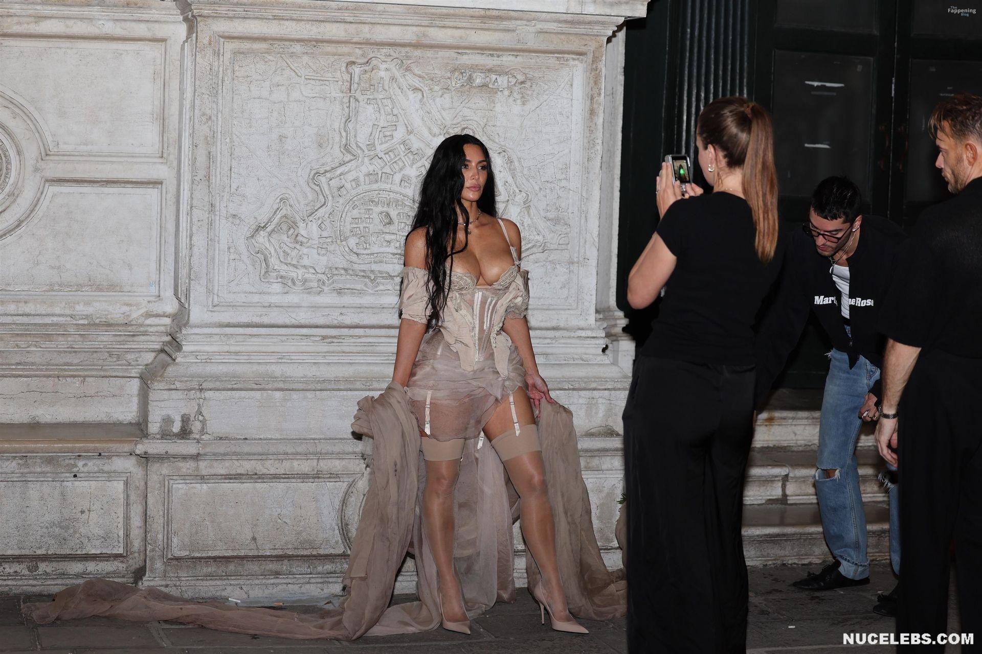 Kim Kardashian loves to be the center of attention and her outfits certainly attract all eyes! This TV star loves to spoil us by appearing in tiny bikinis. However, her recent photo shoot in a see through outfit turned out to be absolutely stunning! So, she posed in a gray transparent dress and stockings. But the neckline of the dress was incredibly deep! So much so that Kim Kardashian nude boobs were almost completely on display! It would have taken just one awkward movement and this celebrity nude tits would have jumped out!