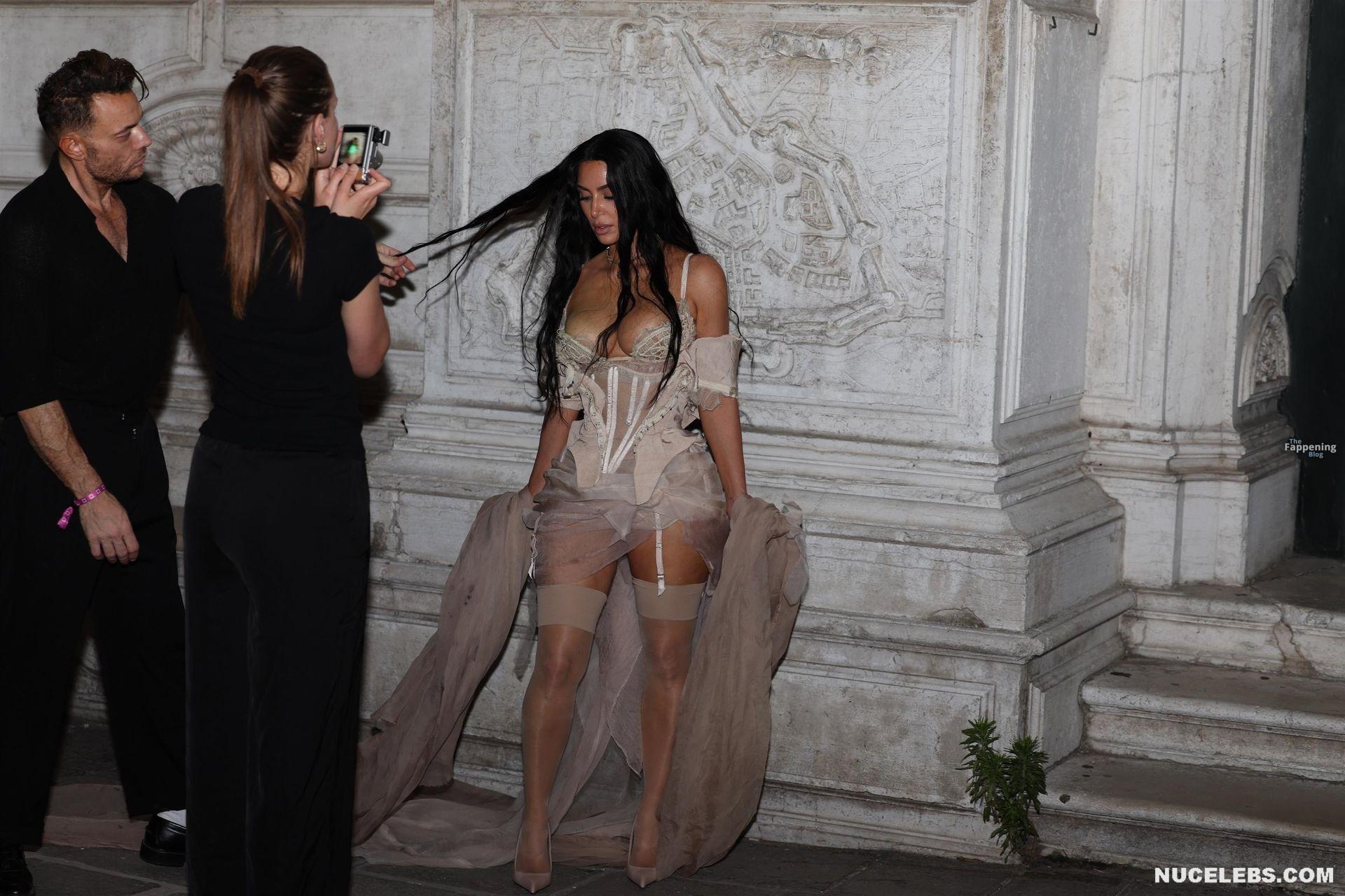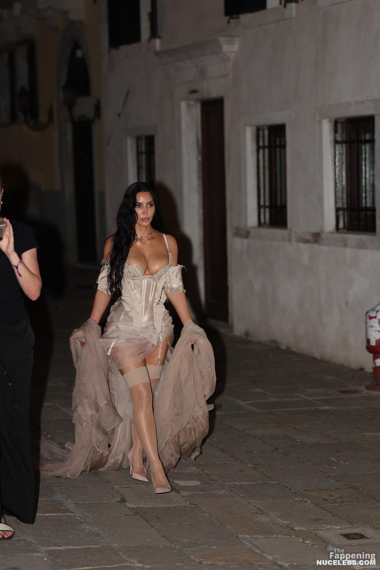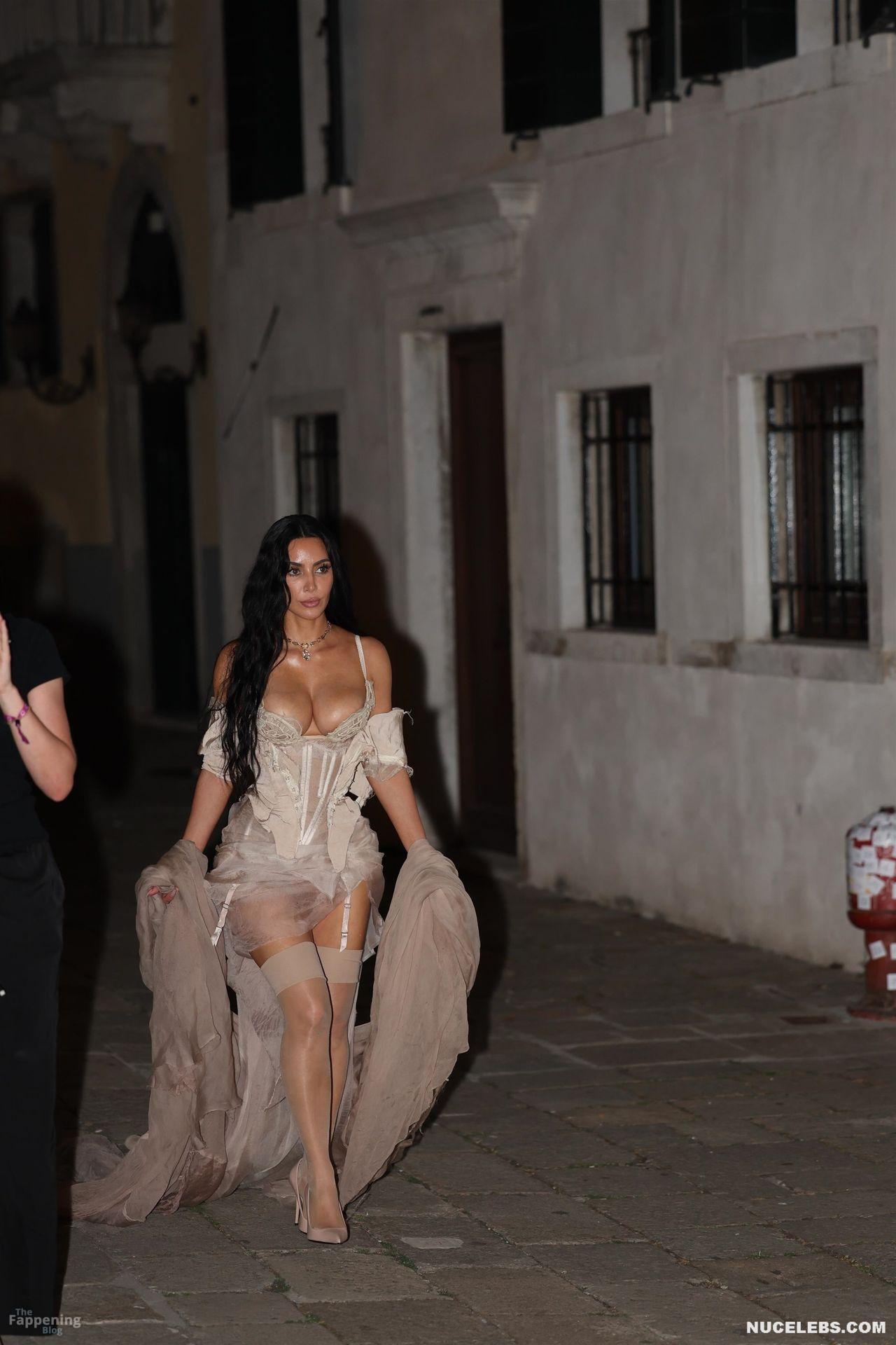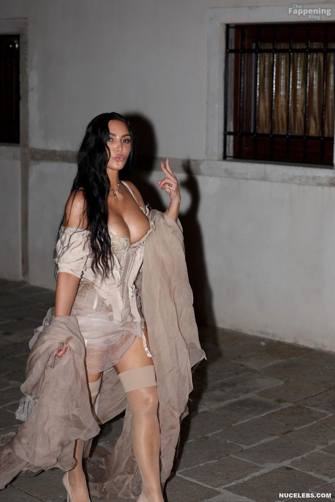 Kim Kardashian loves to be the center of attention and her outfits certainly attract all eyes! This TV star loves to spoil us by appearing in tiny bikinis. However, her recent photo shoot in a see through outfit turned out to be absolutely stunning! So, she posed in a gray transparent dress and stockings. But the neckline of the dress was incredibly deep! So much so that Kim Kardashian nude boobs were almost completely on display! It would have taken just one awkward movement and this celebrity nude tits would have jumped out!